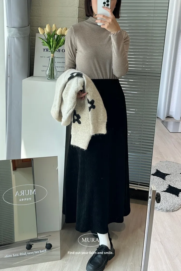 溫柔天花板 提花絨A字散裙 3colors