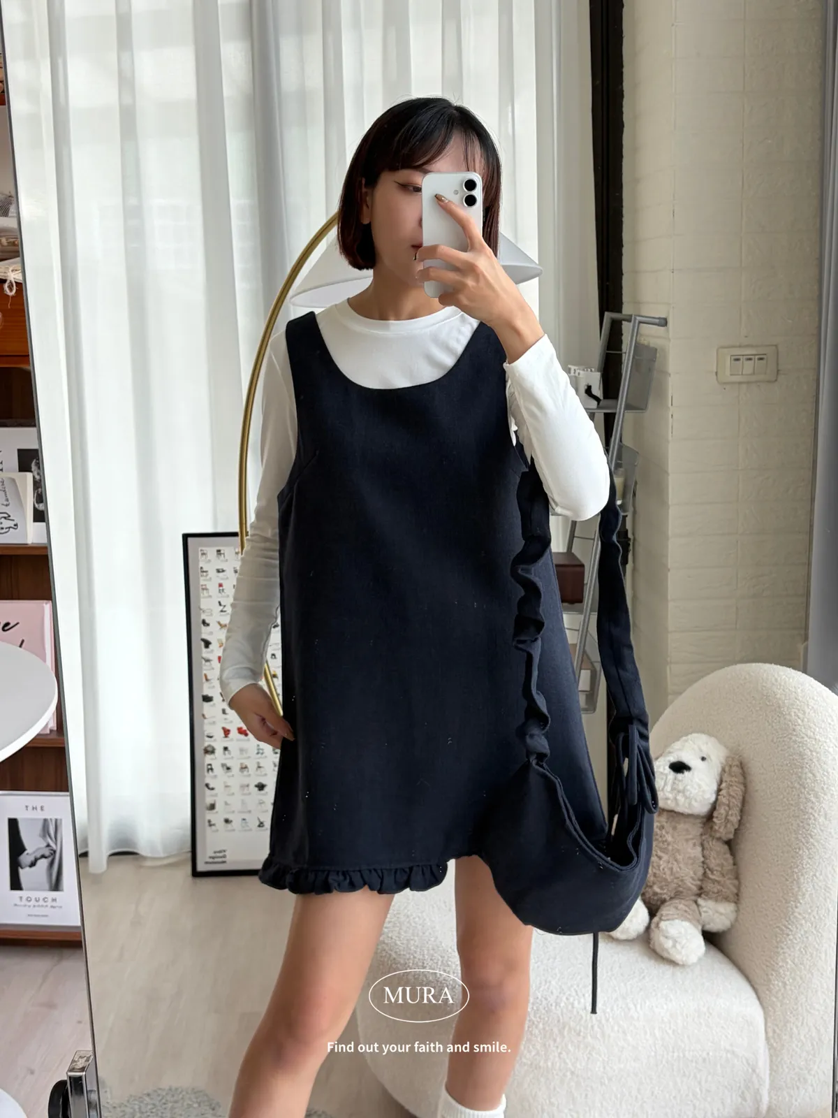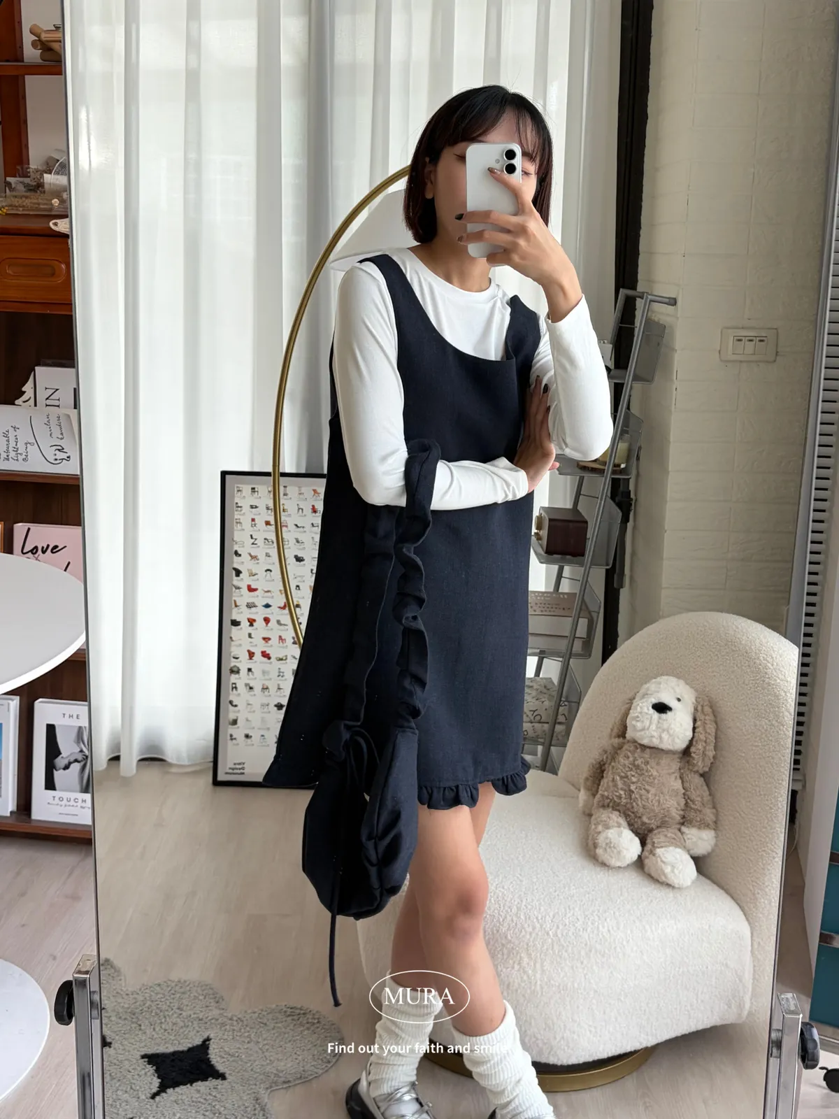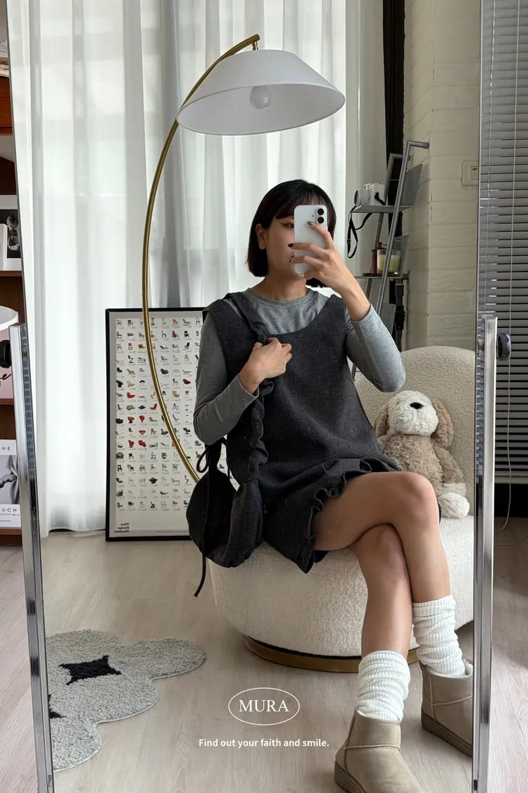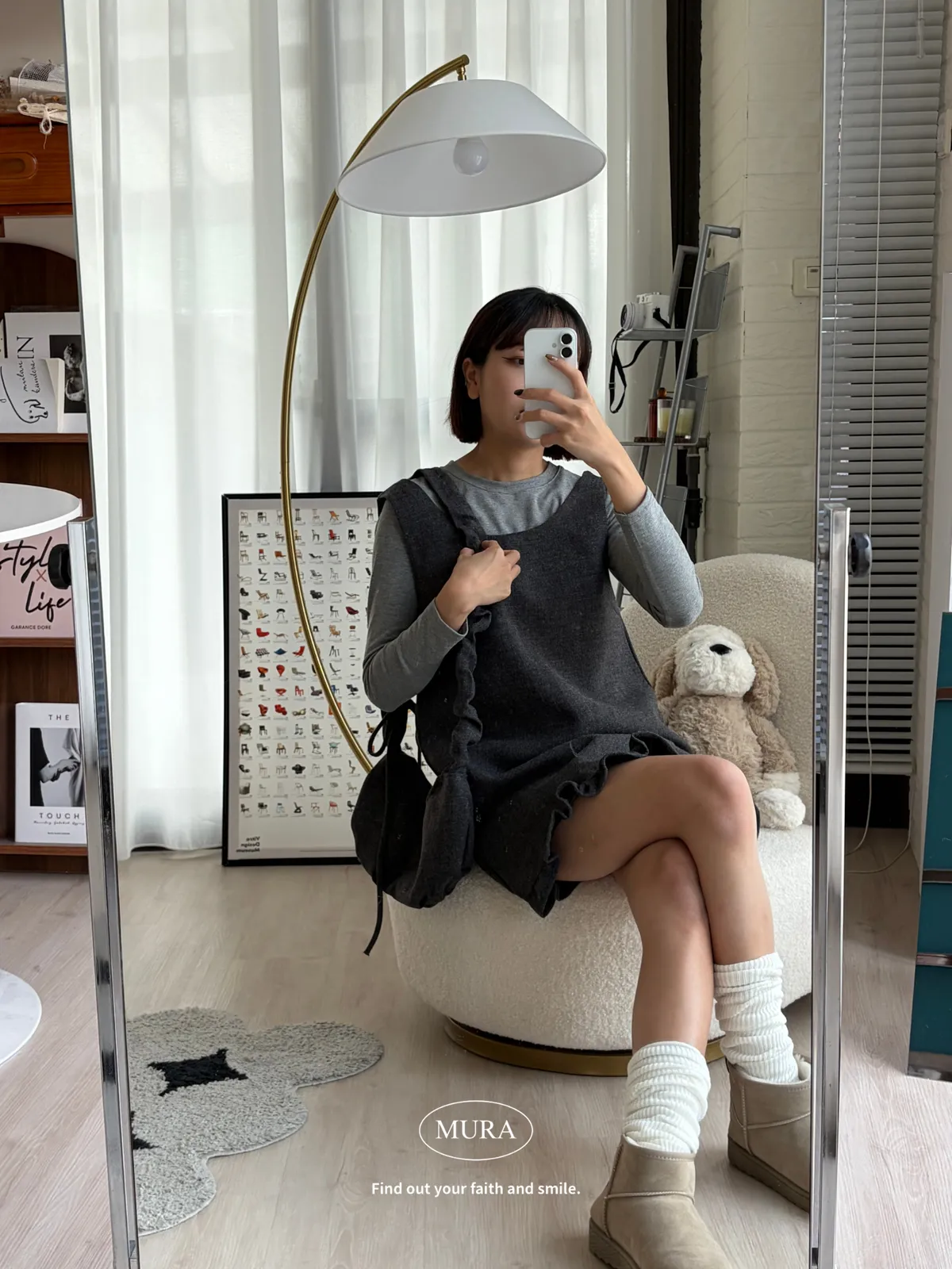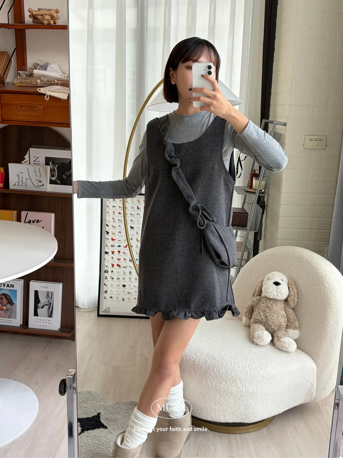 冬日俏皮 誰穿誰可愛短洋set 2colors (上衣+背心洋+包包3件組)