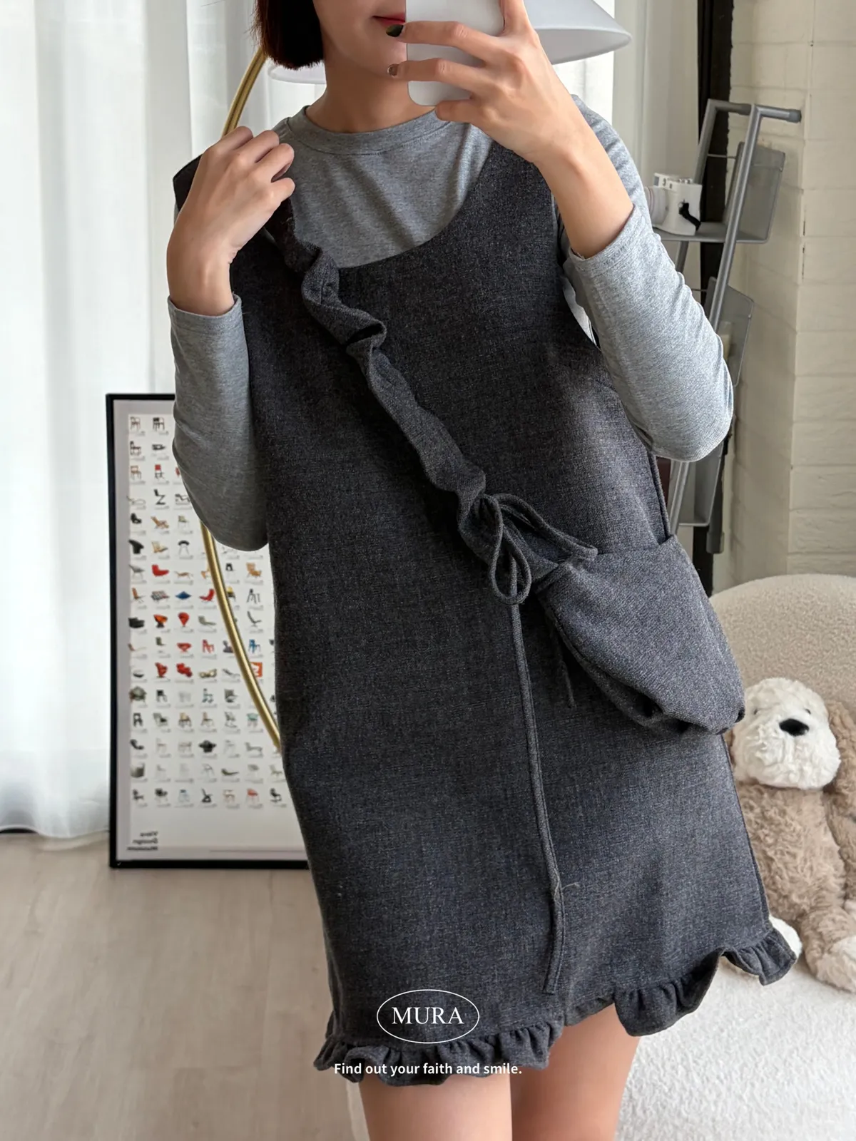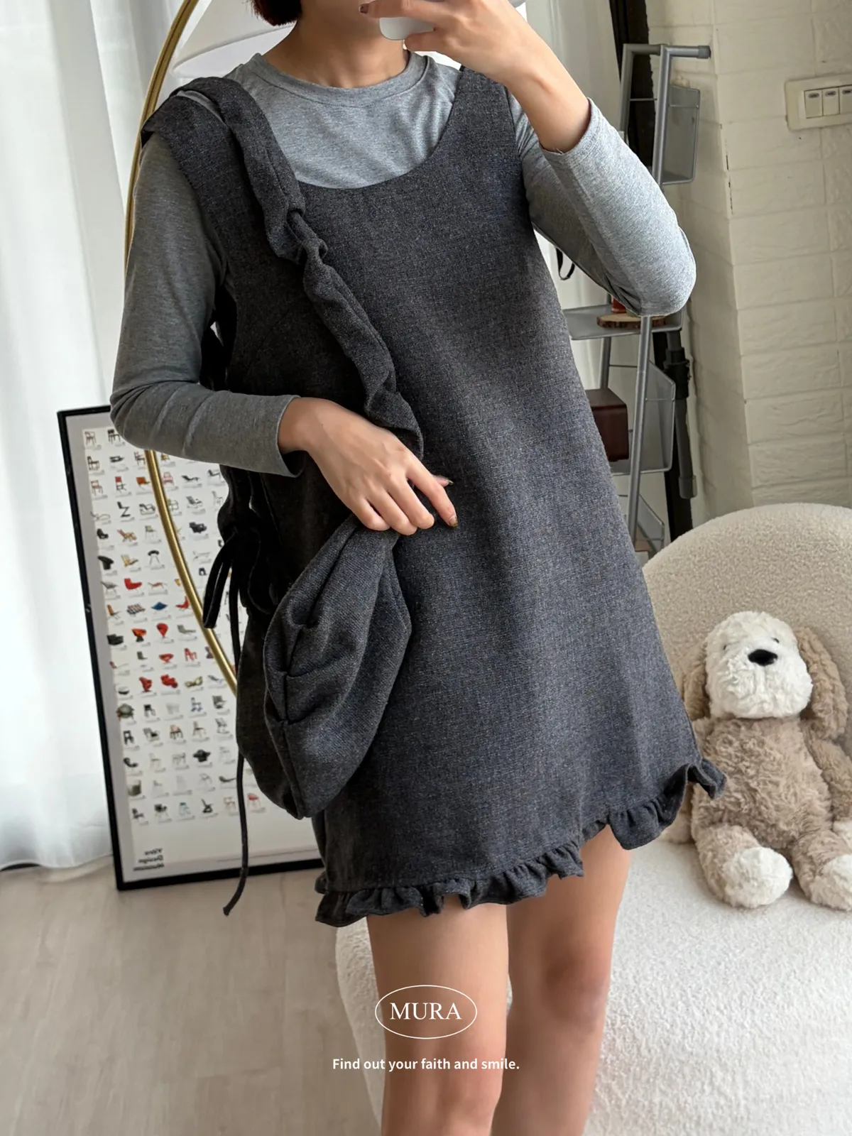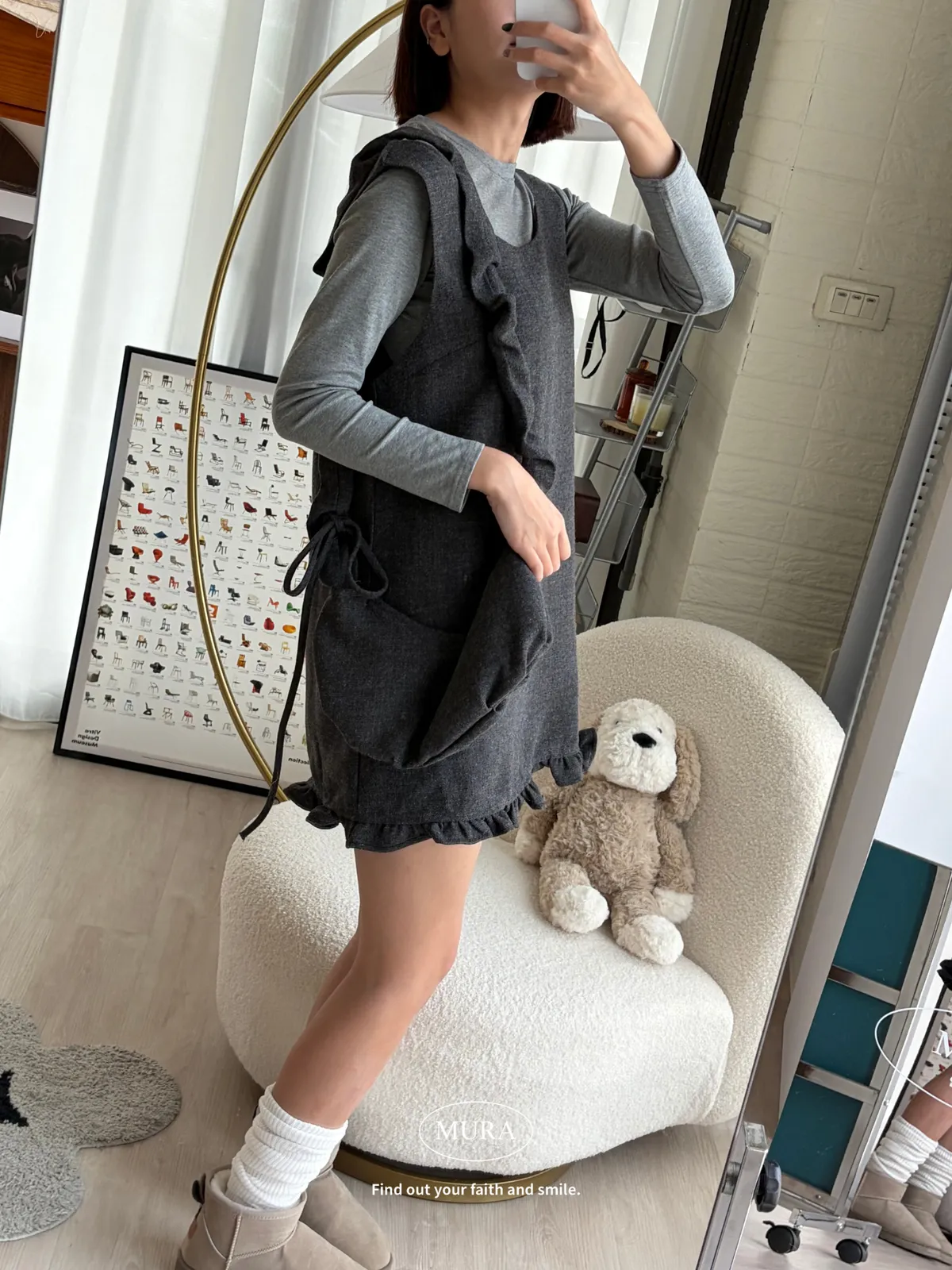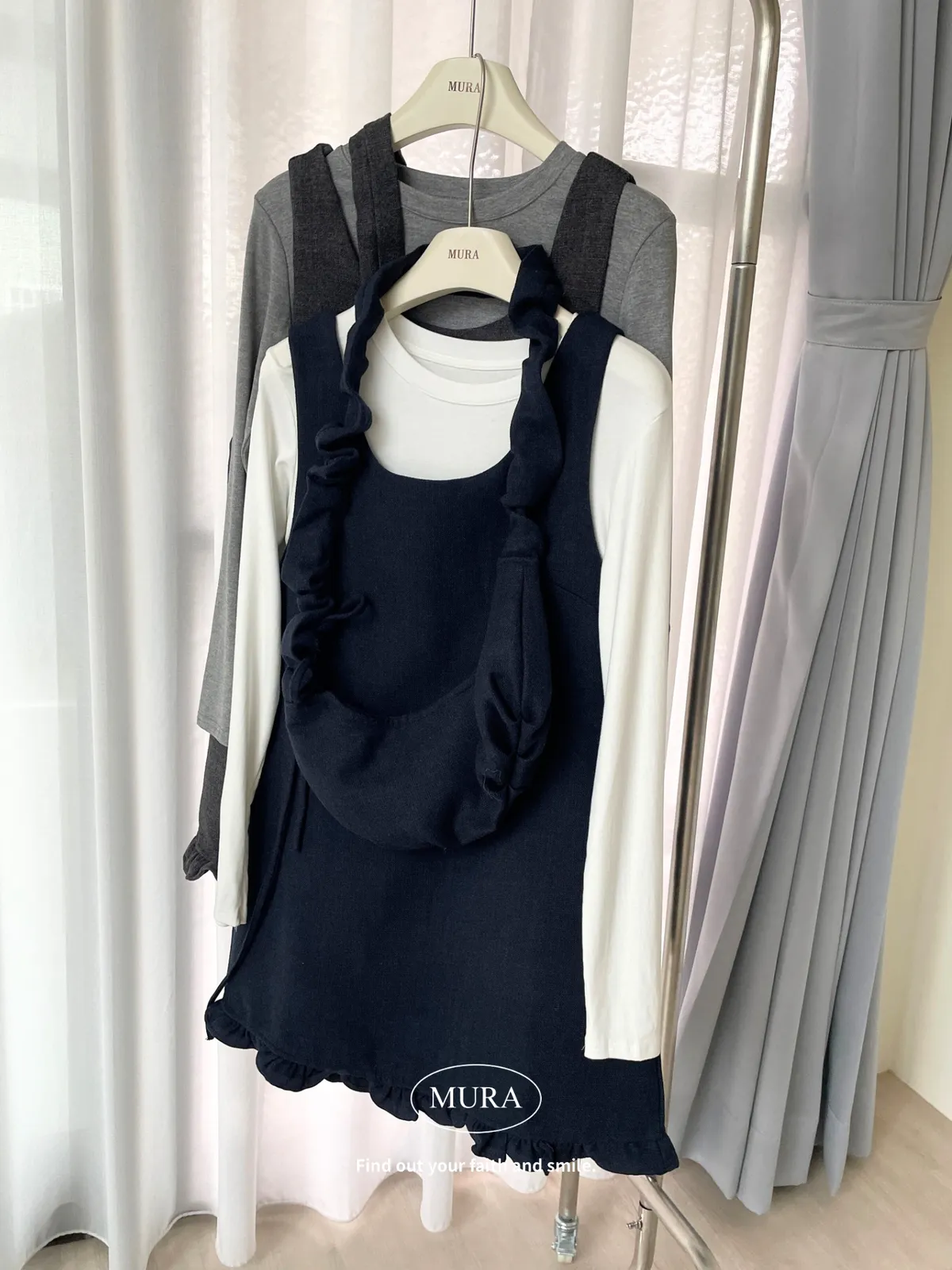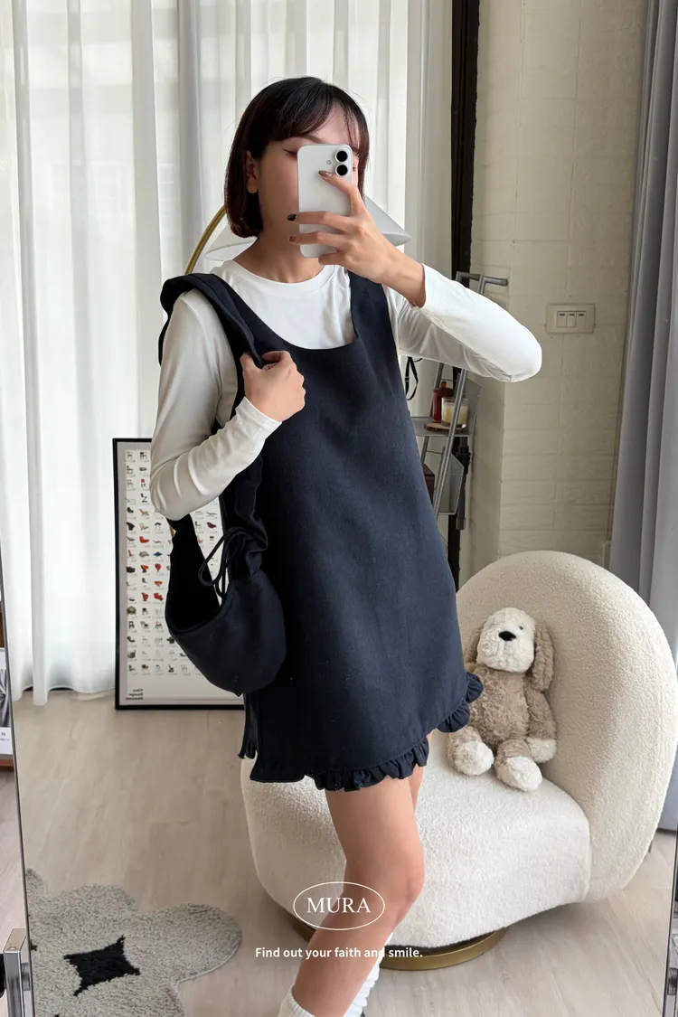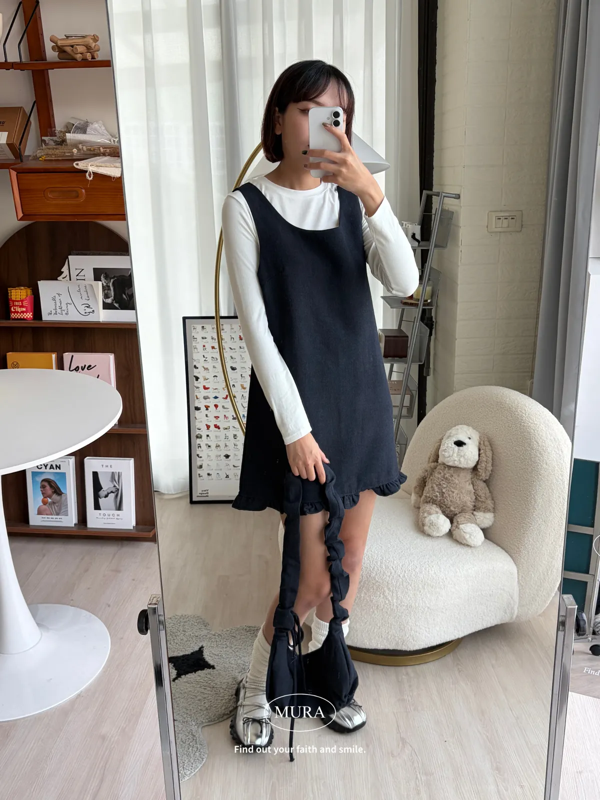 冬日俏皮 誰穿誰可愛短洋set 2colors (上衣+背心洋+包包3件組)