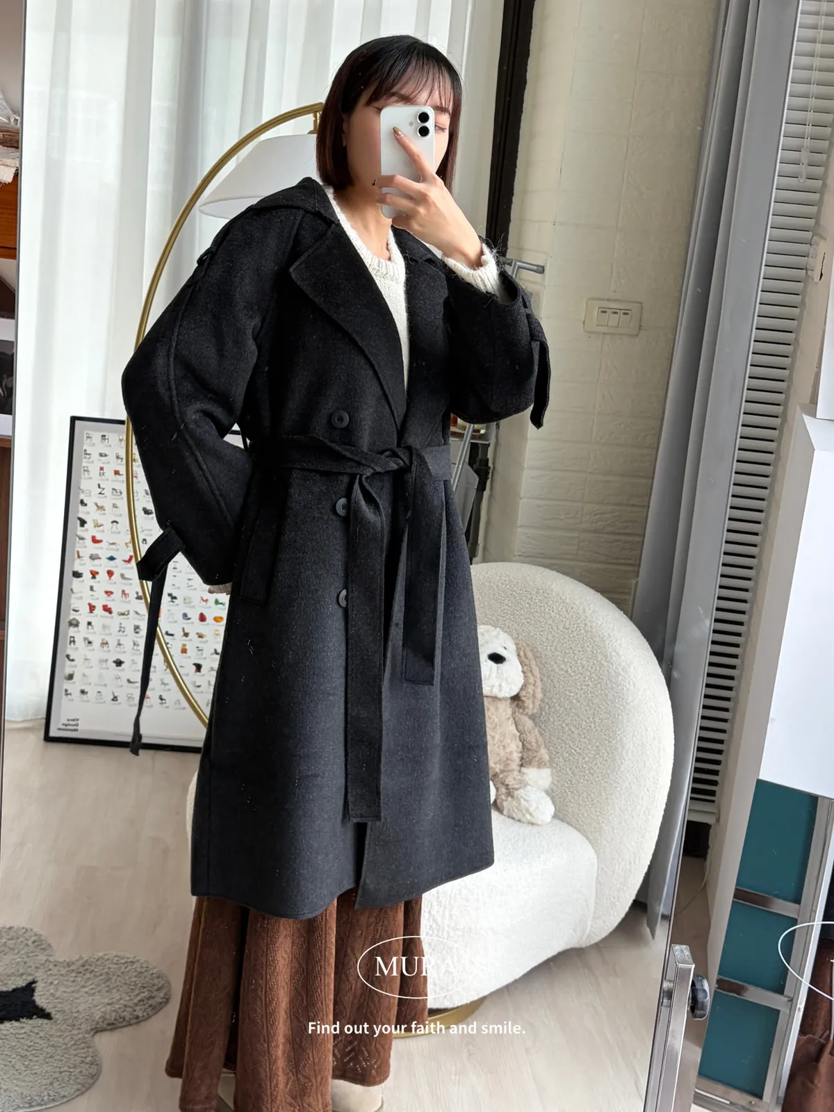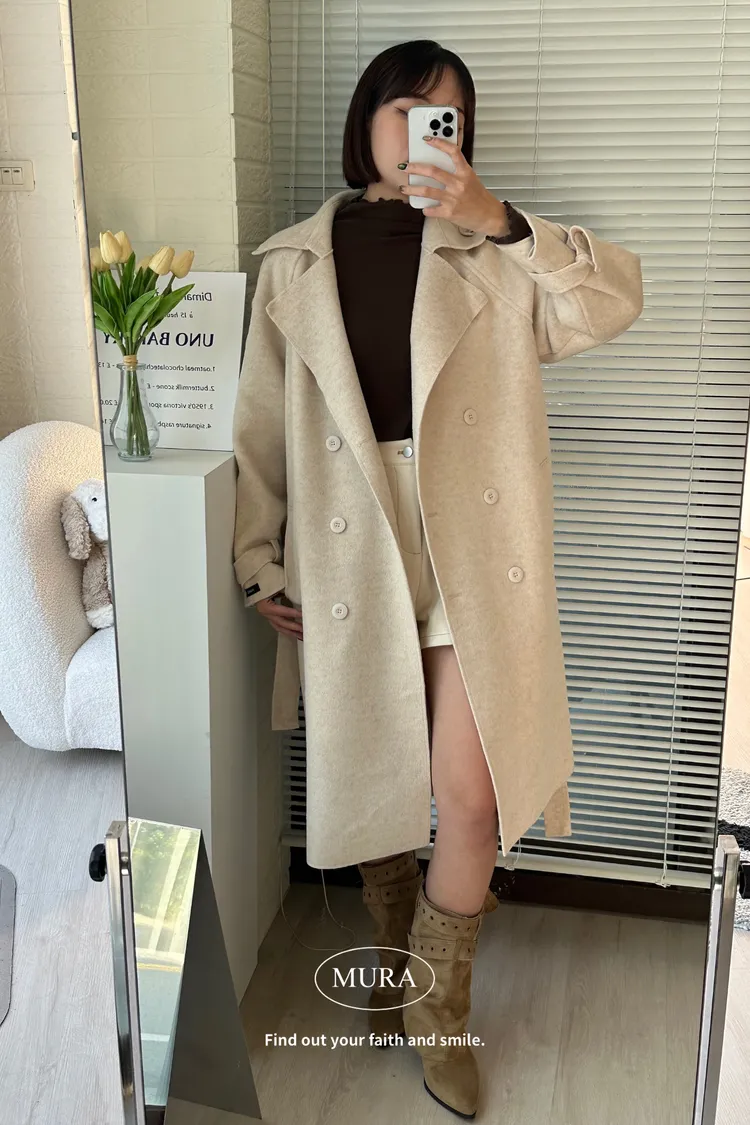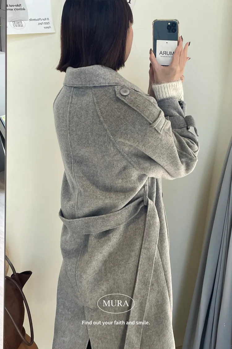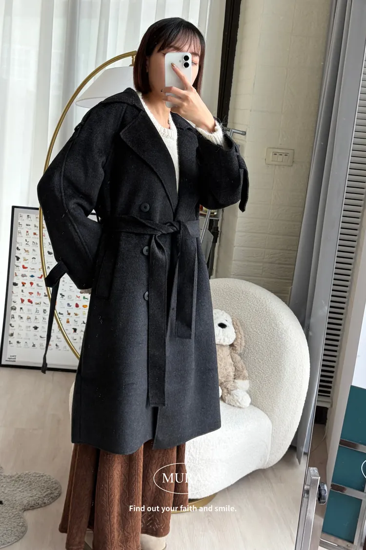 女主風範 含35%羊毛手工長版大衣(附綁帶)3colors
