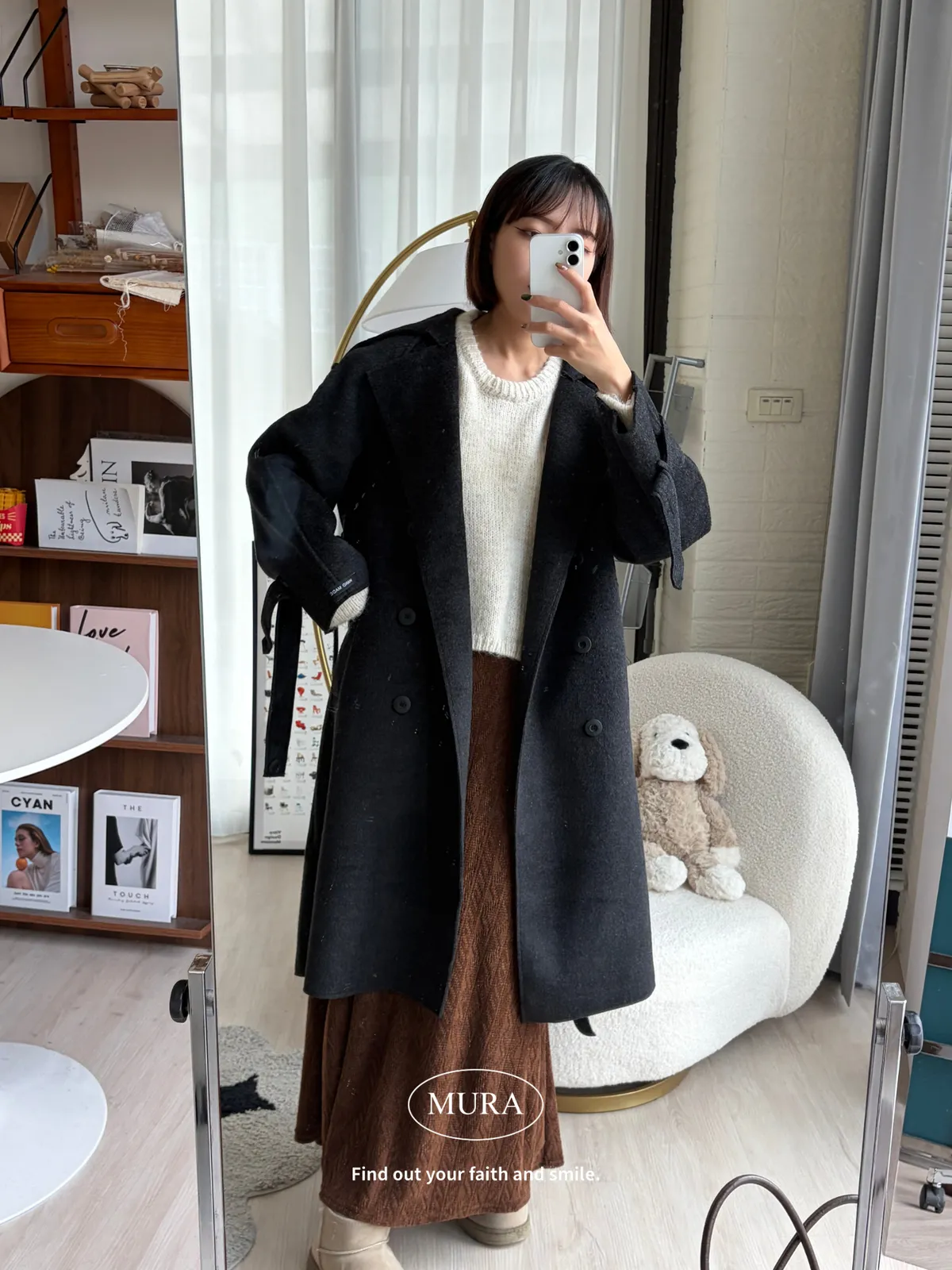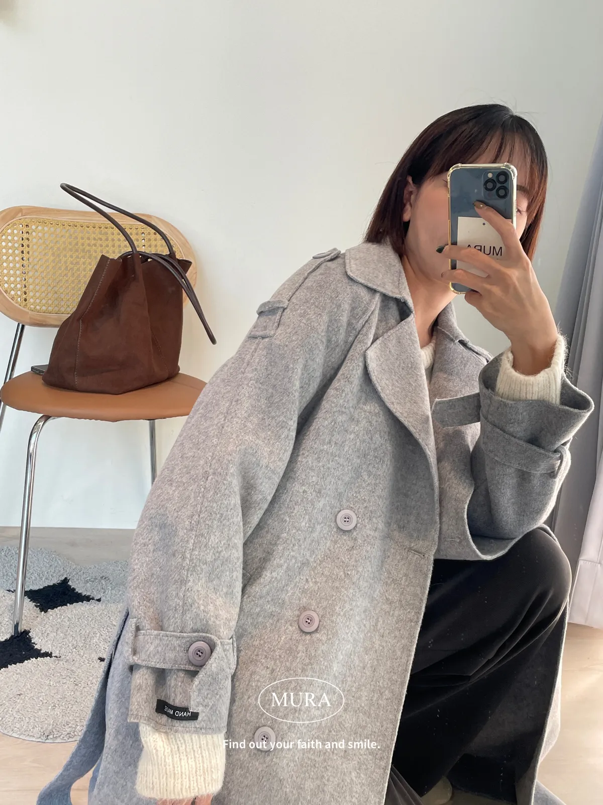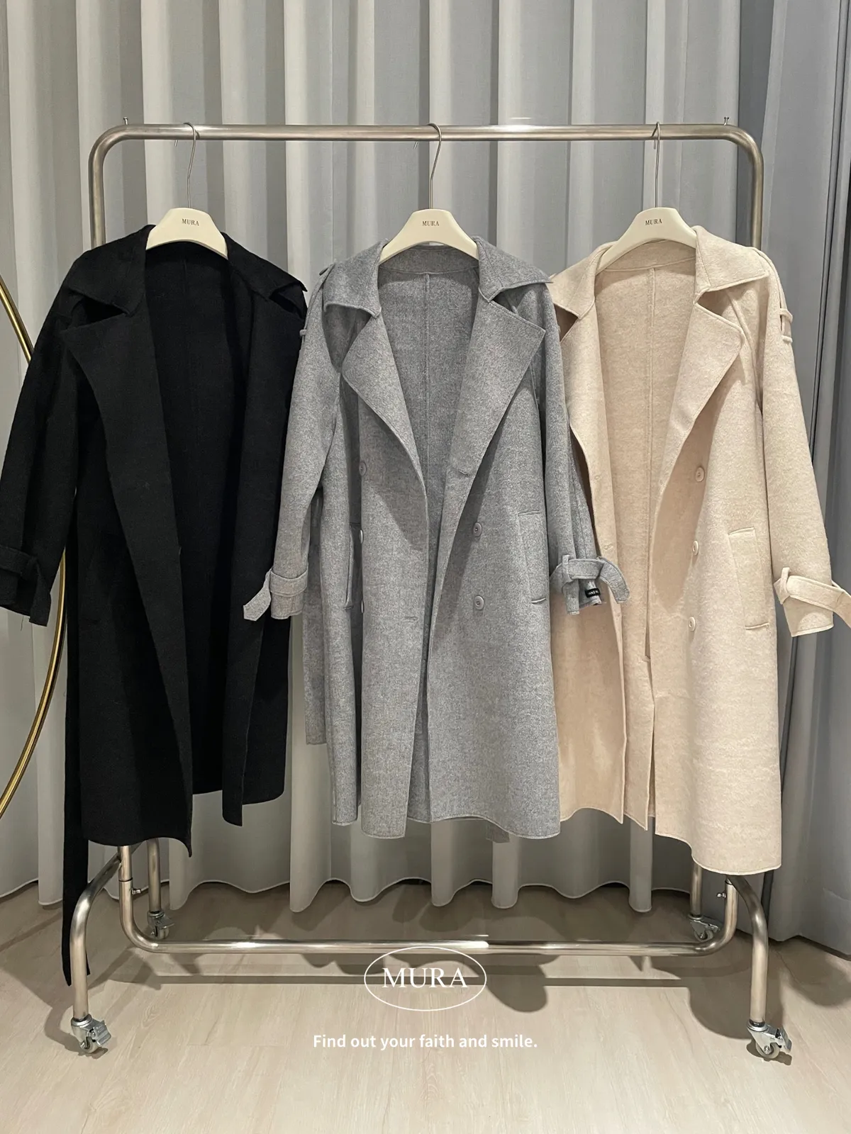 女主風範 含35%羊毛手工長版大衣(附綁帶)3colors
