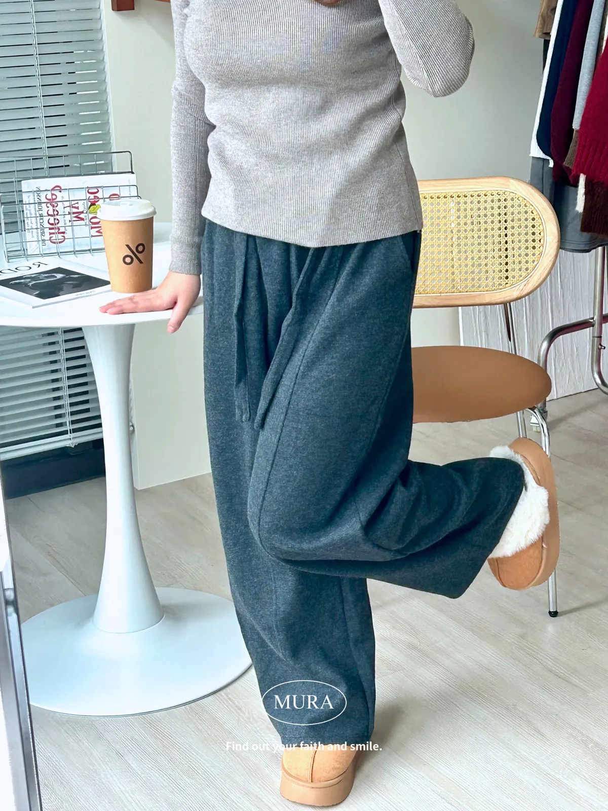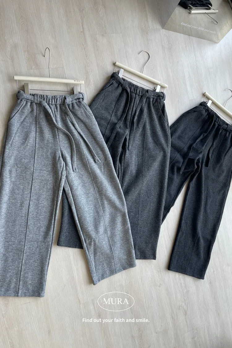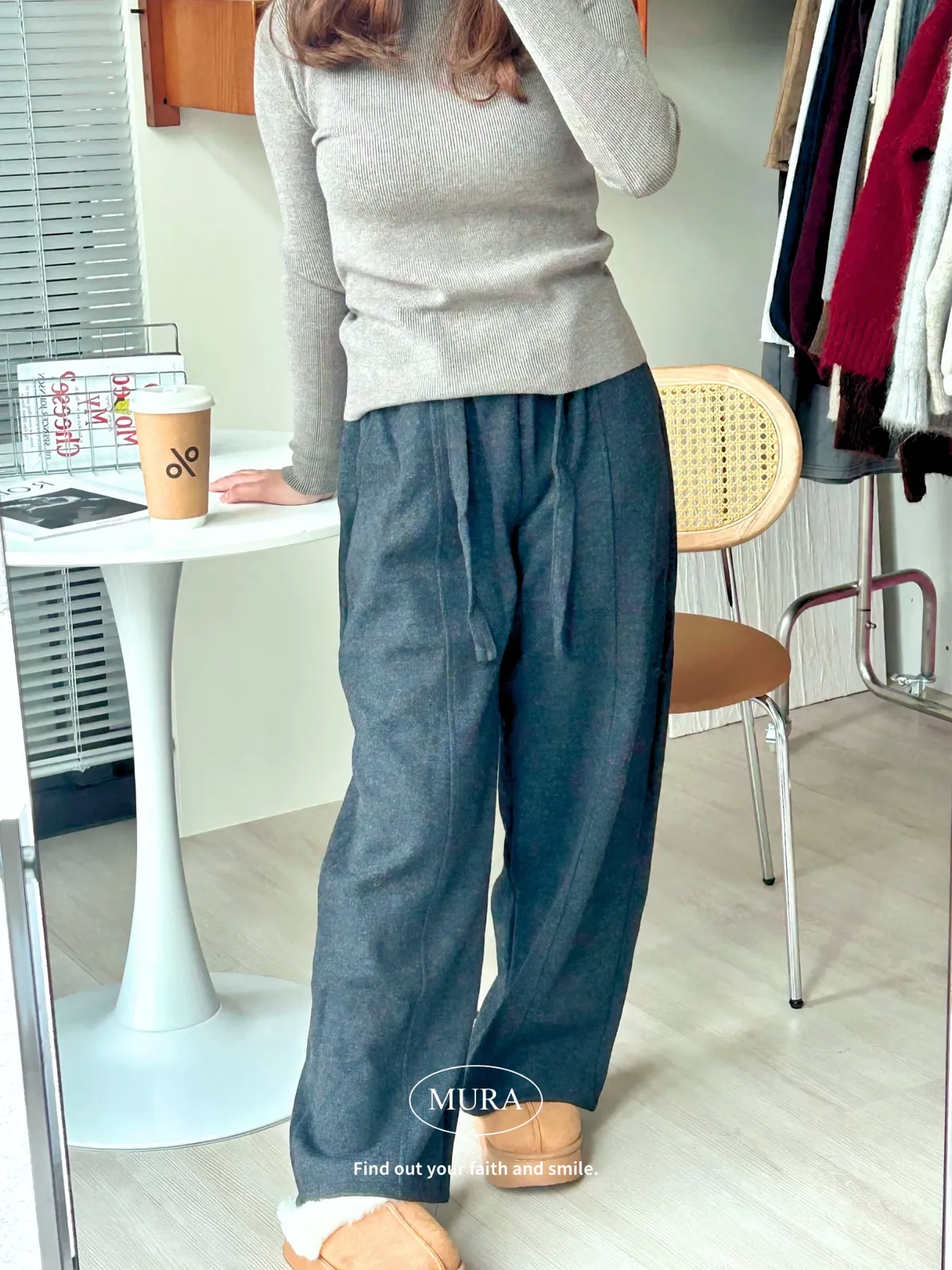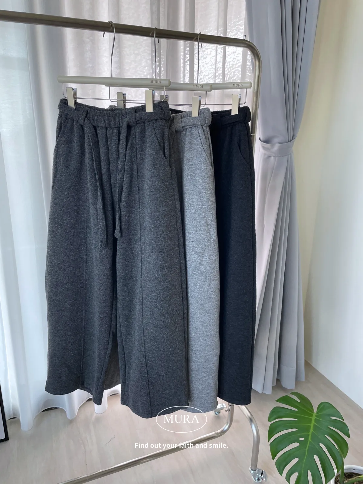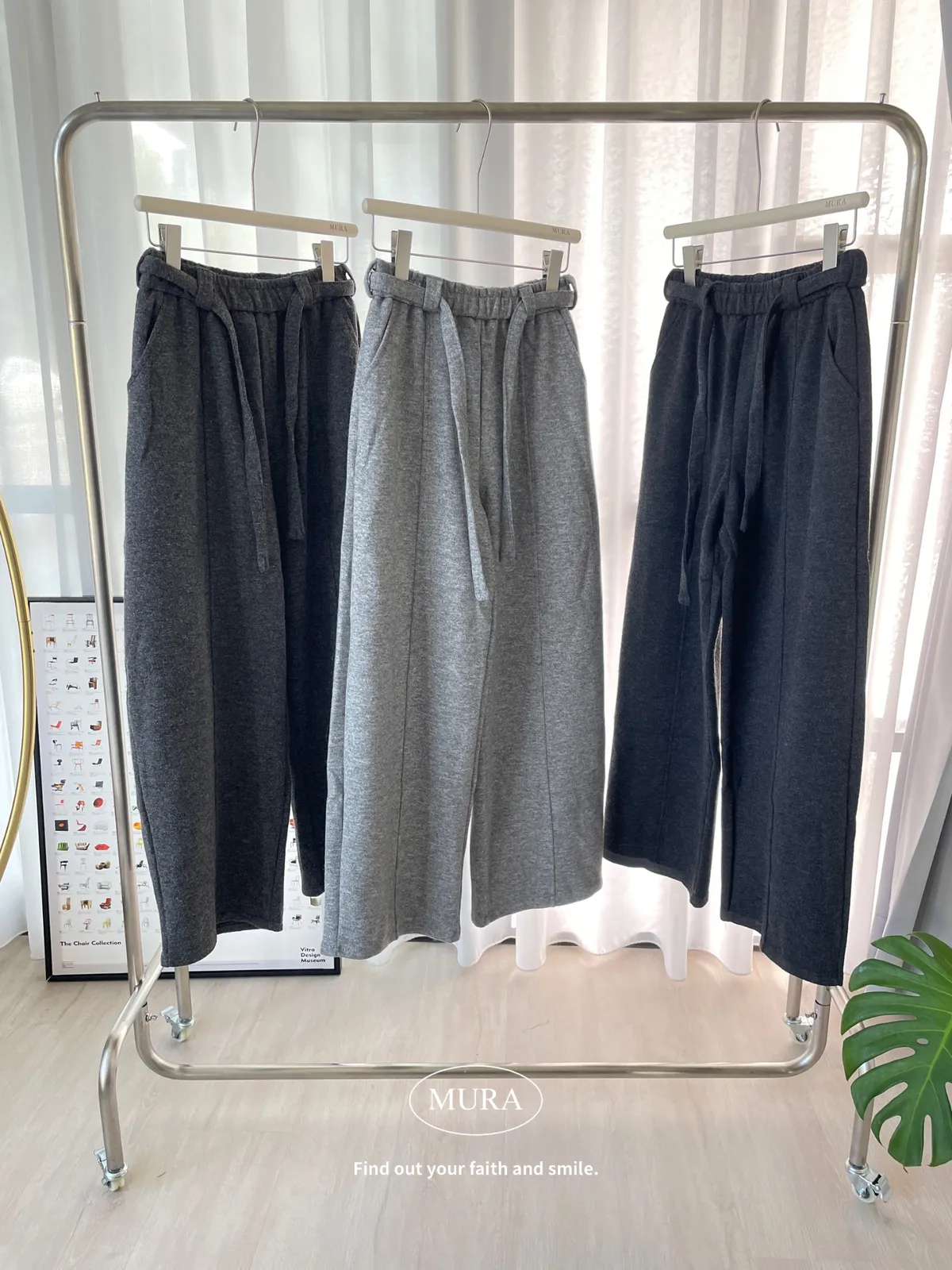 不經意慵懶 混織車線彎刀褲(附綁帶) 3colors