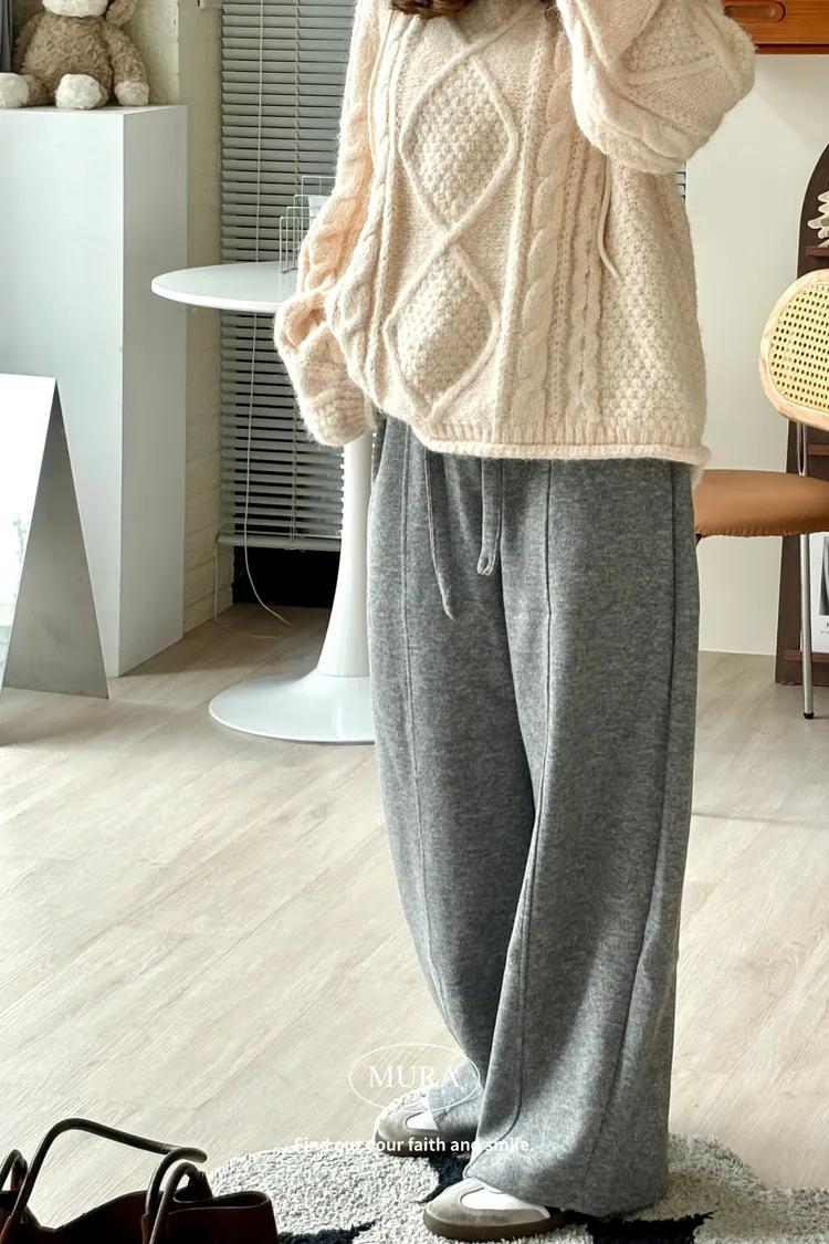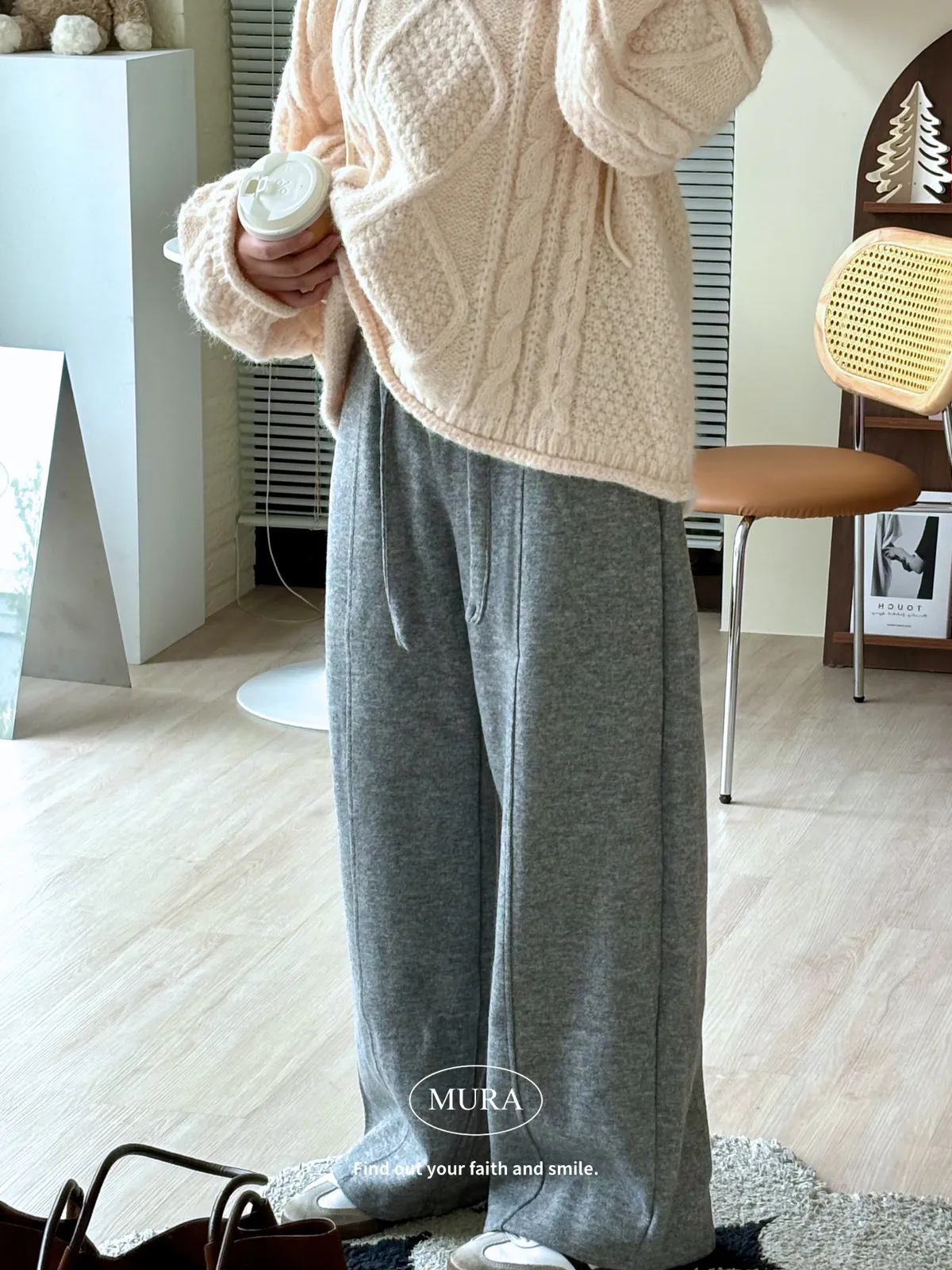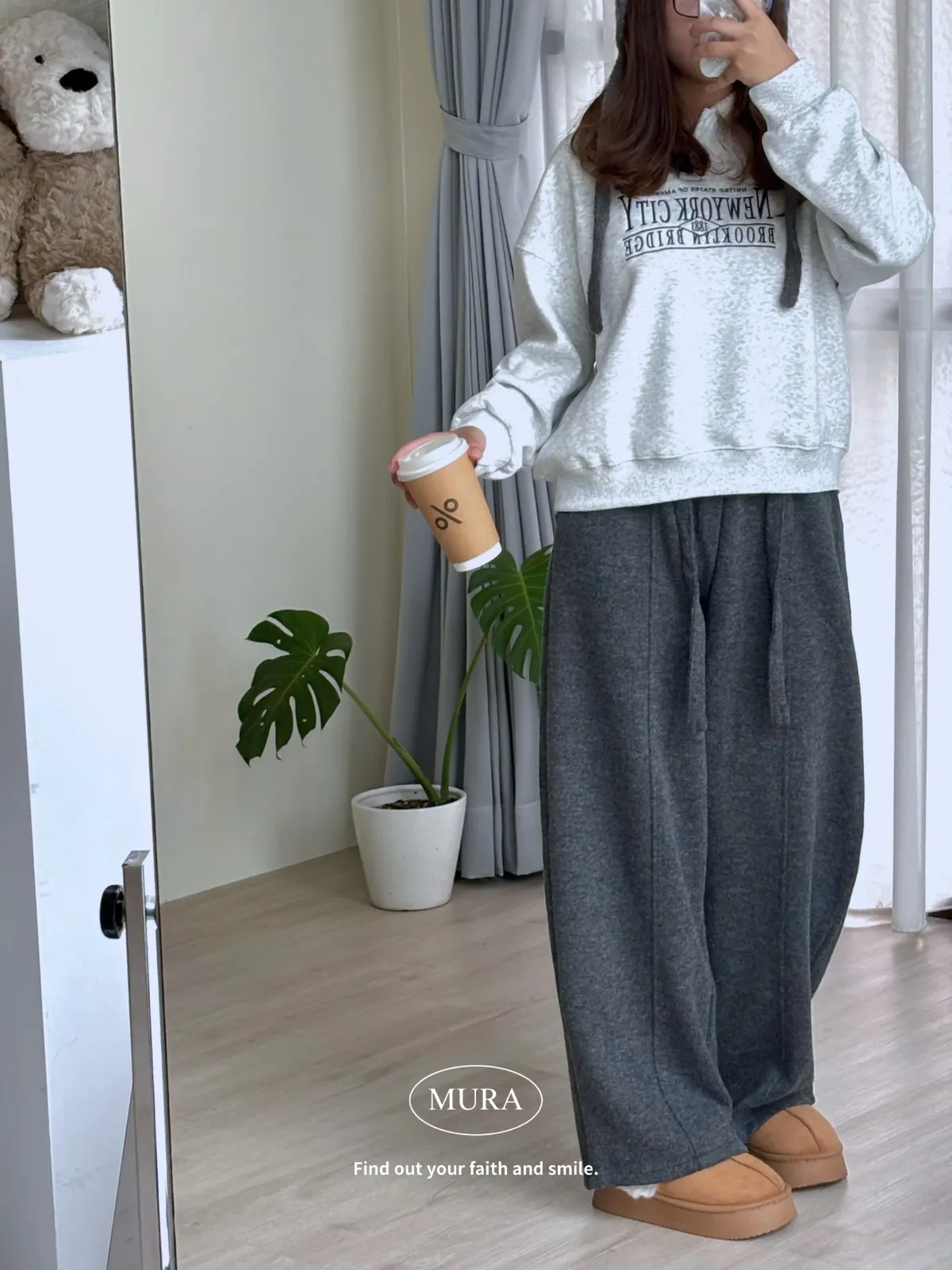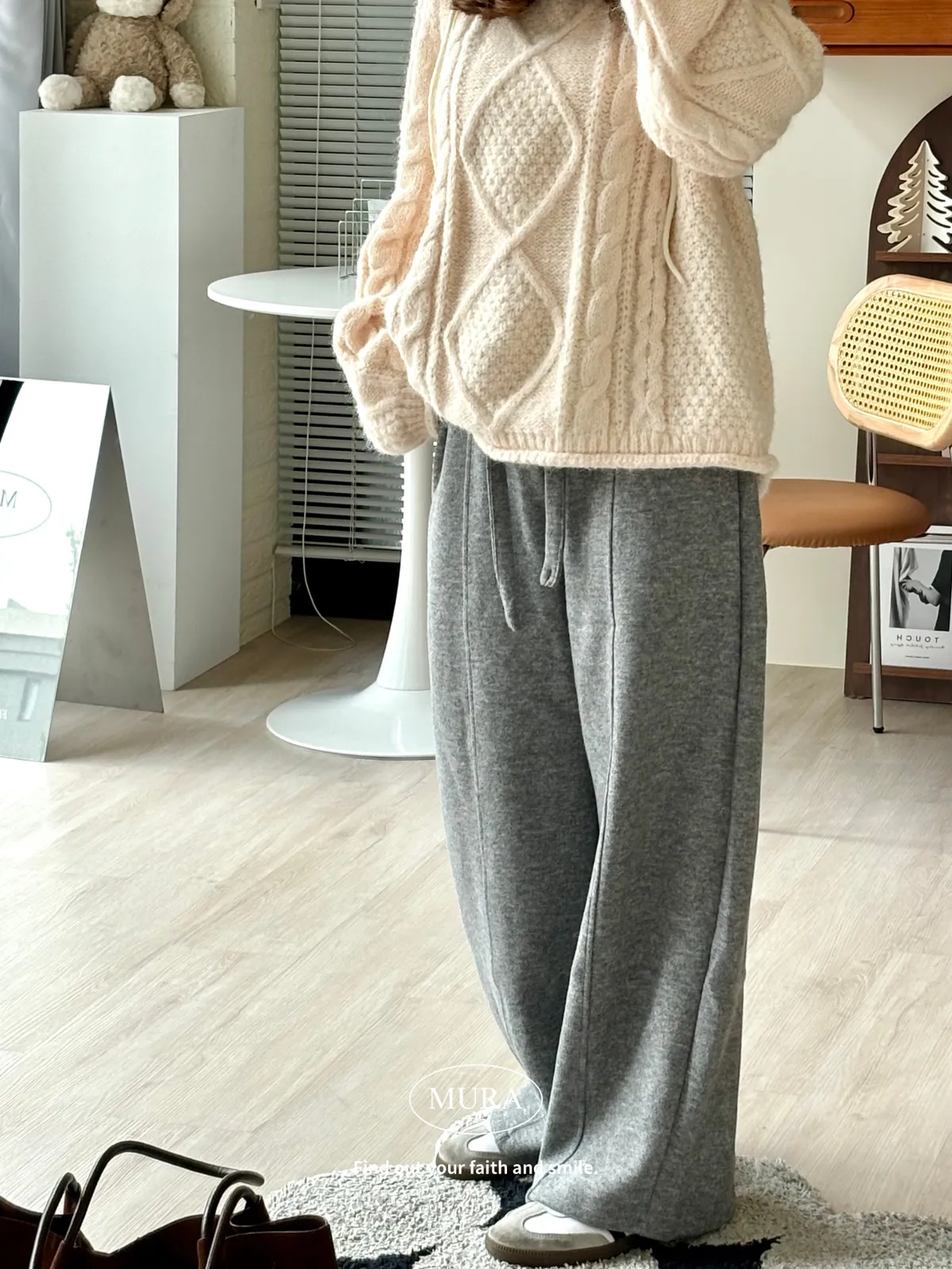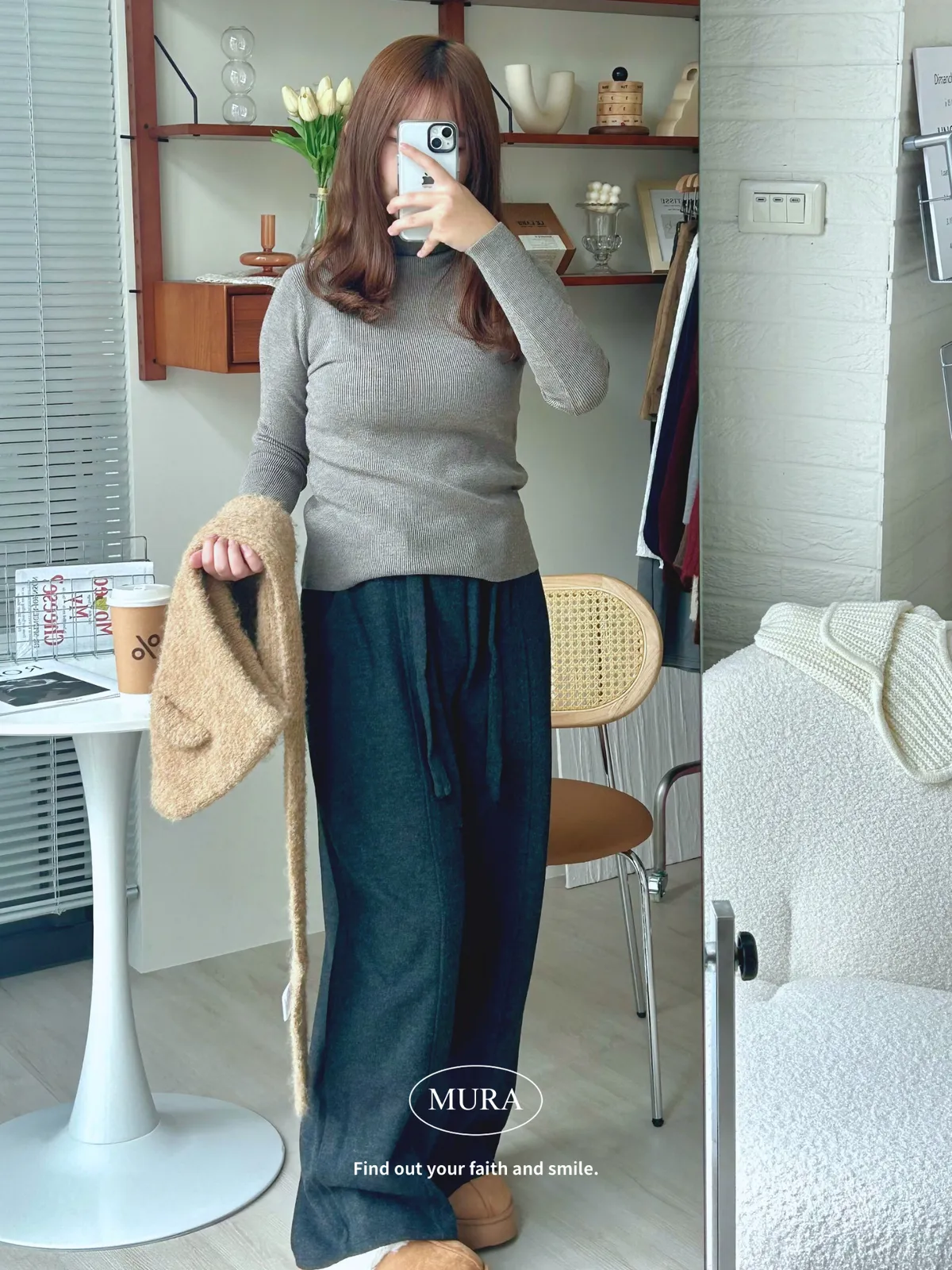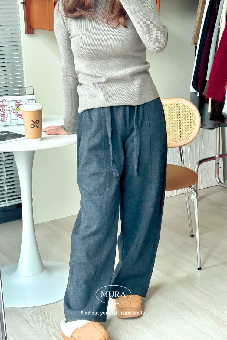 不經意慵懶 混織車線彎刀褲(附綁帶) 3colors