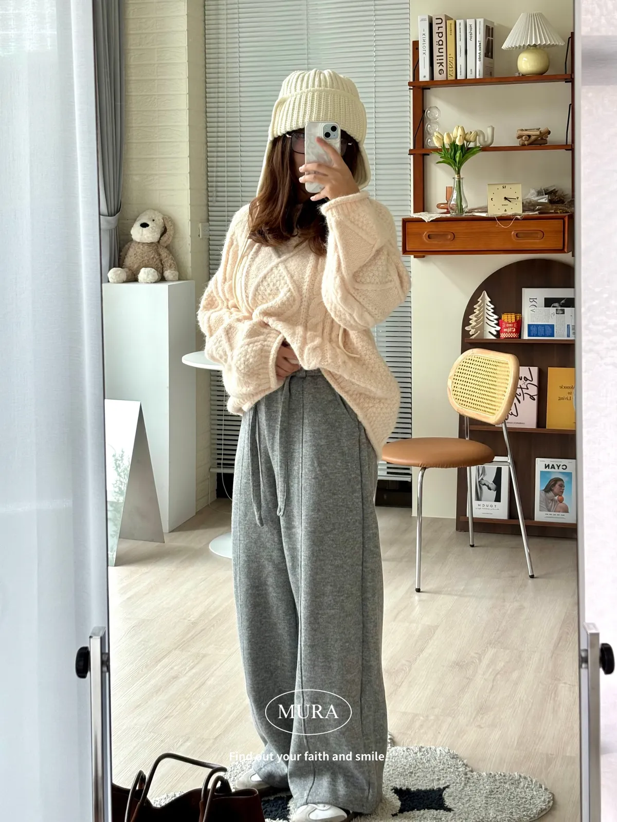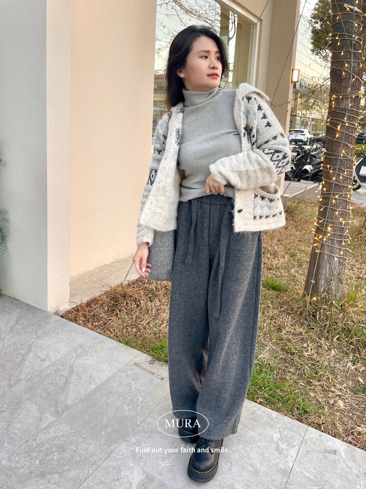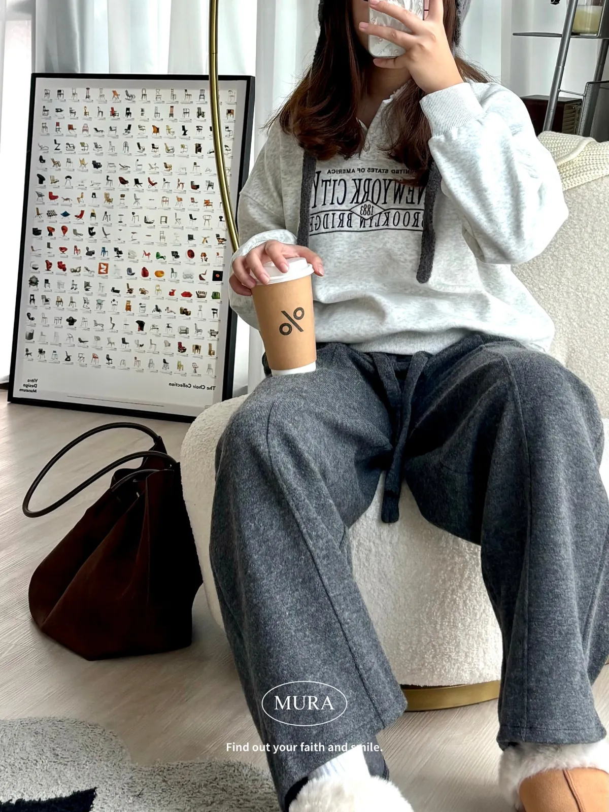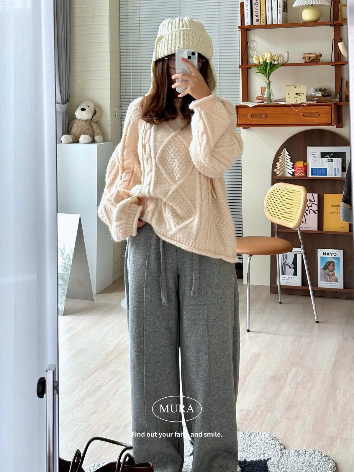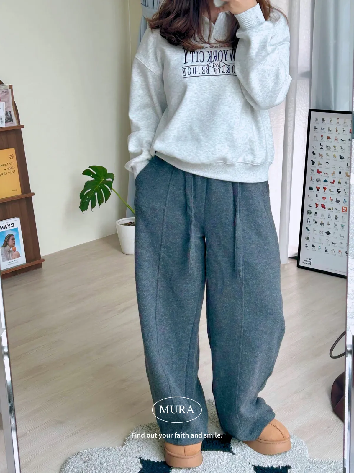 不經意慵懶 混織車線彎刀褲(附綁帶) 3colors