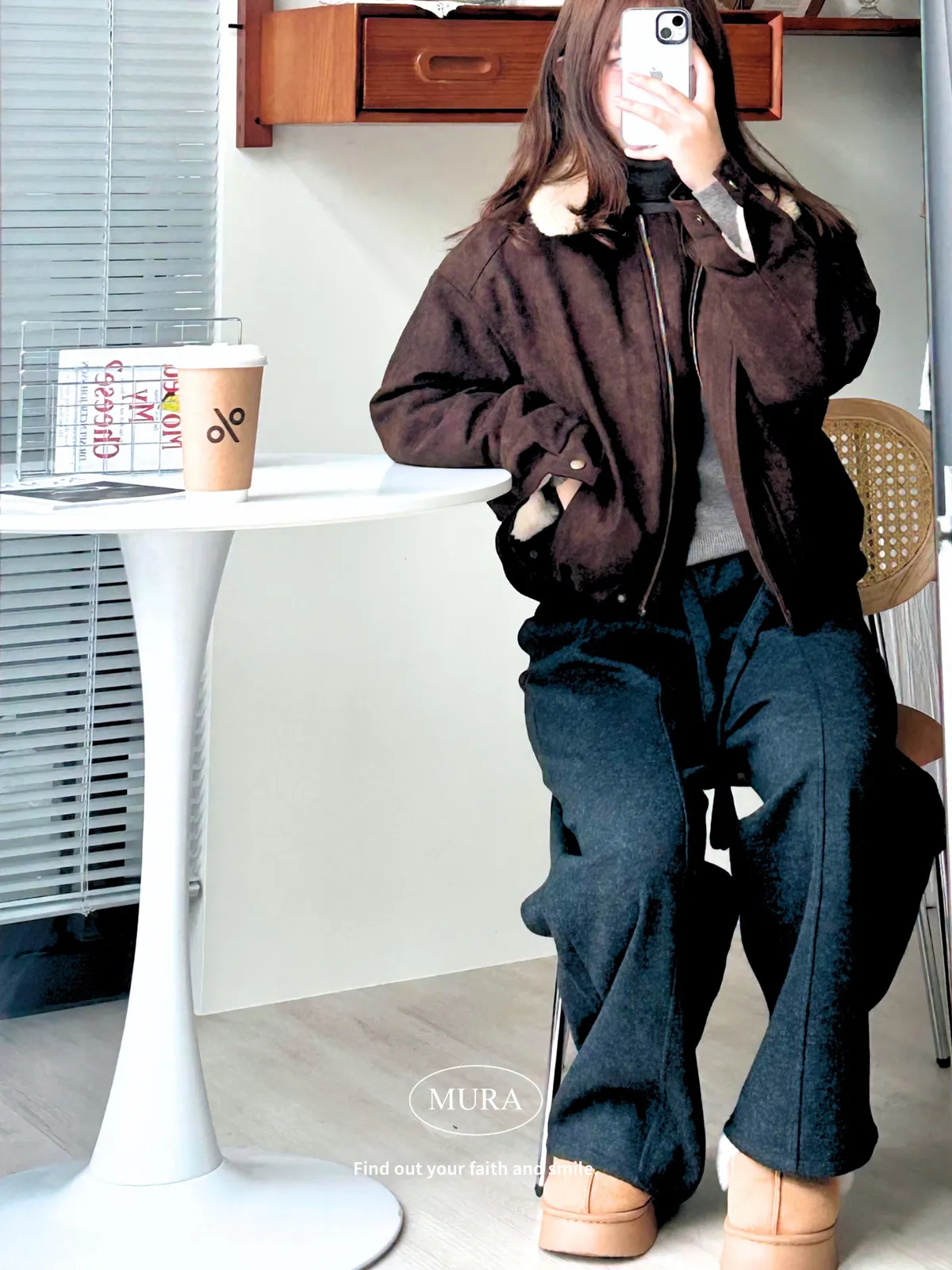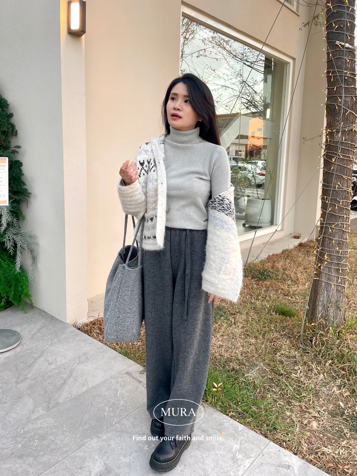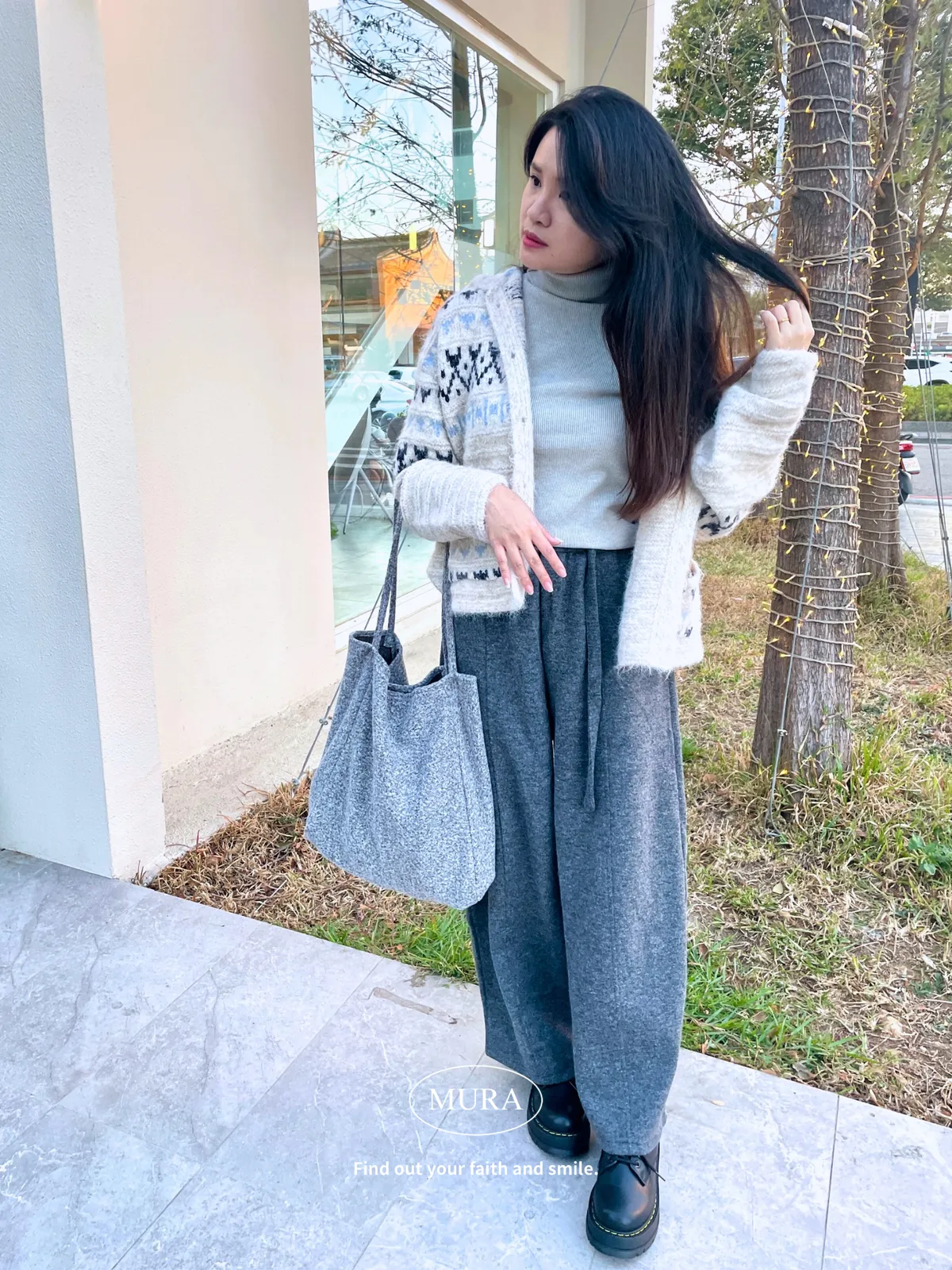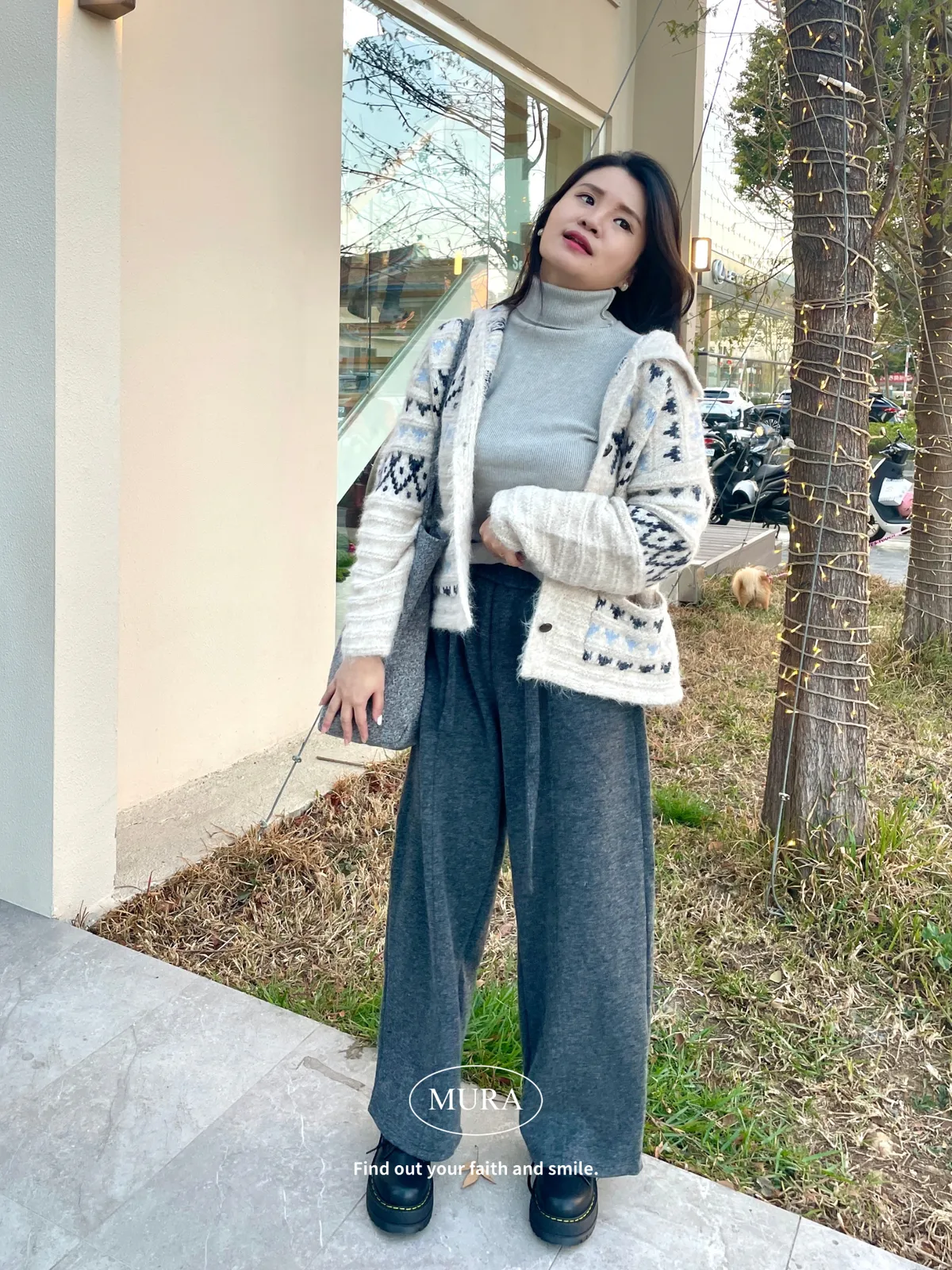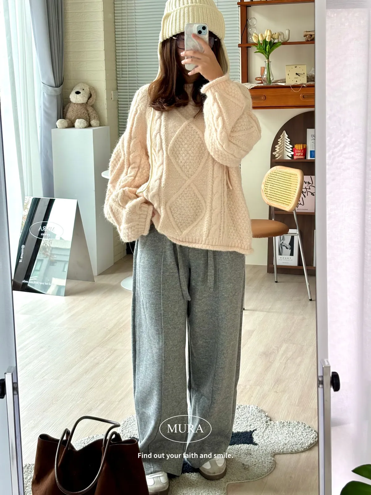 不經意慵懶 混織車線彎刀褲(附綁帶) 3colors