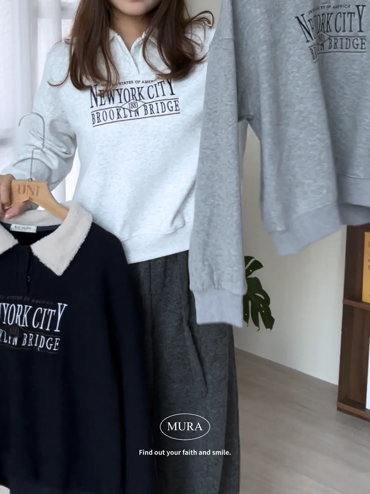 日常不單調 New York毛毛領羊絨tee(內刷絨)3colors