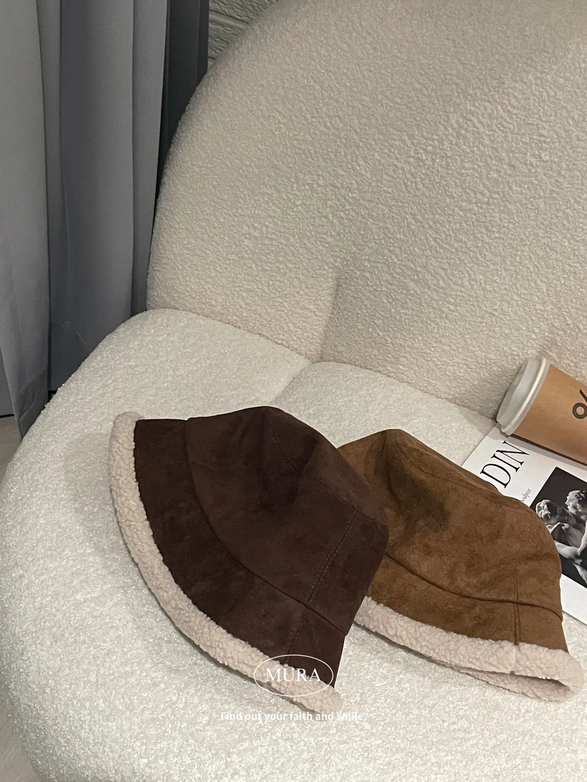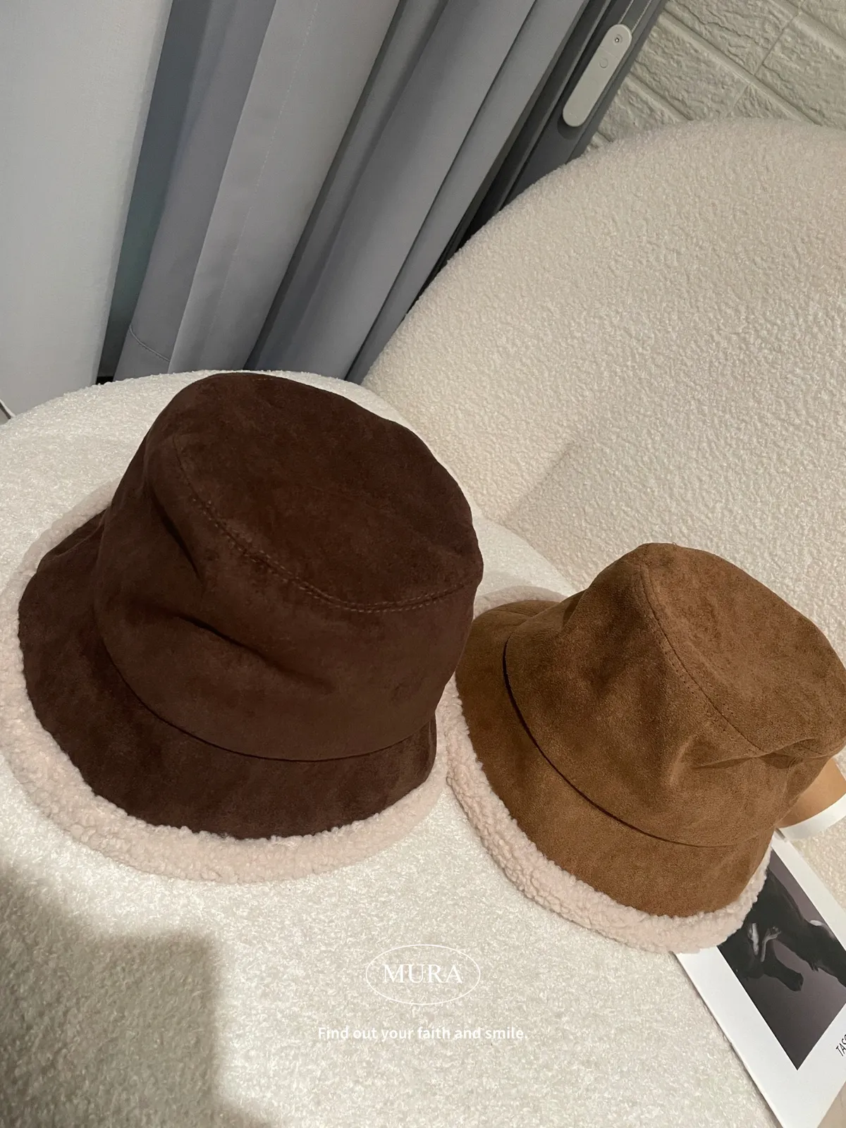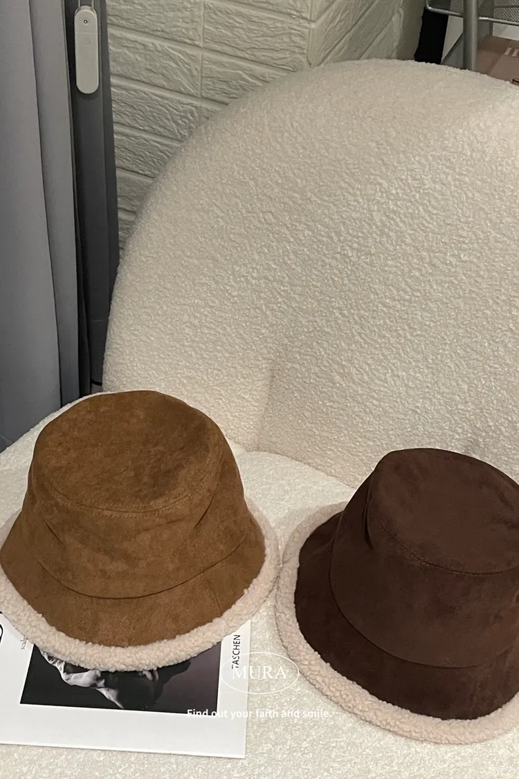 可可愛愛過冬天 羊羔毛麂皮漁夫帽2colors