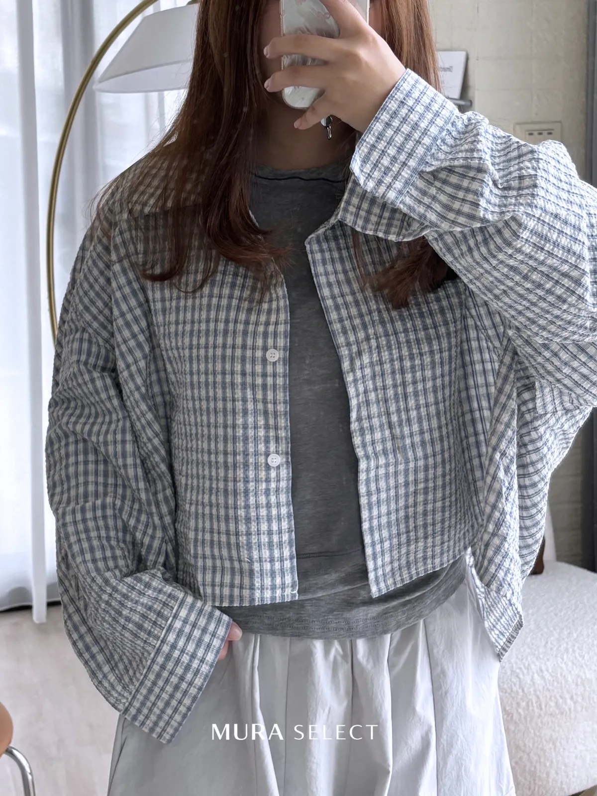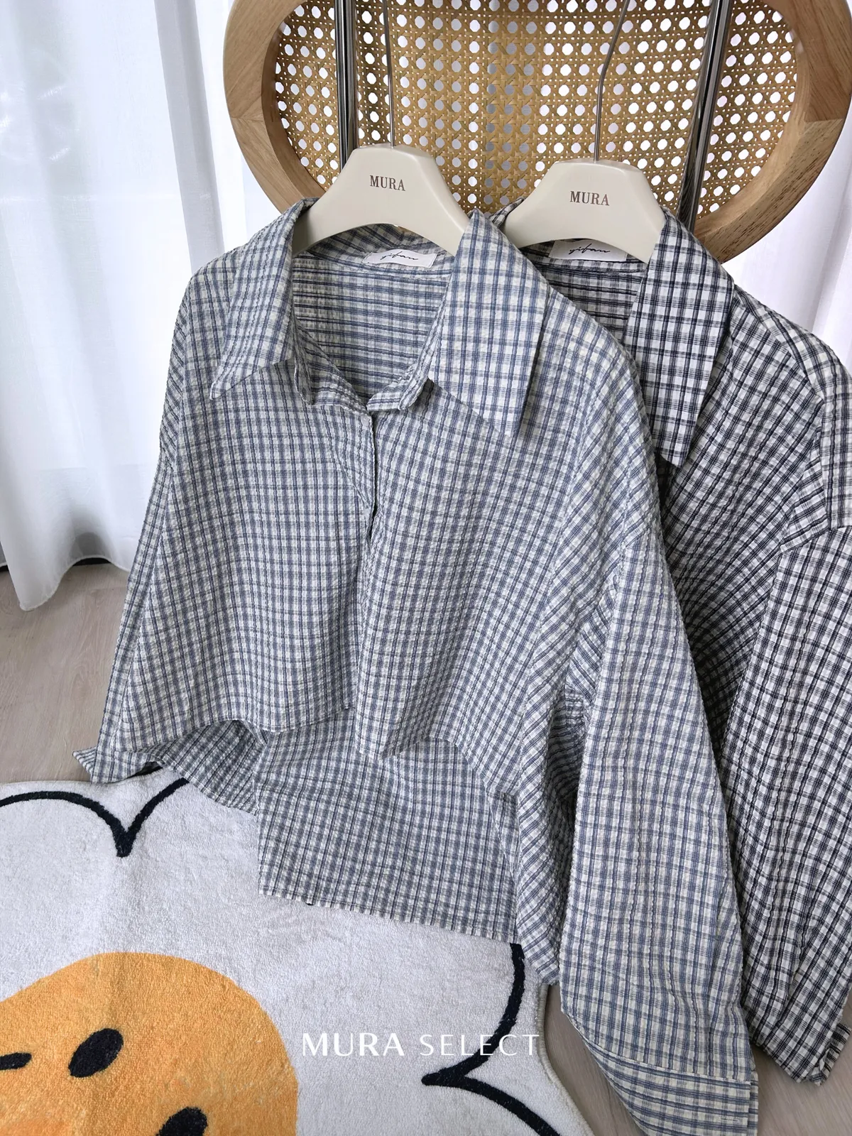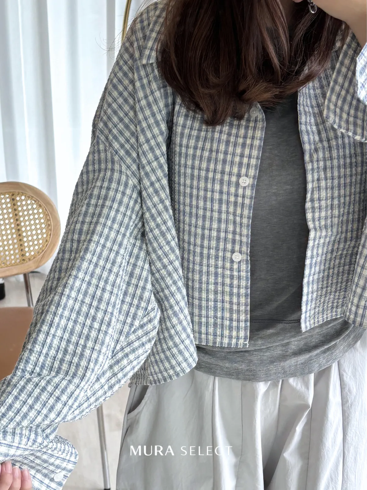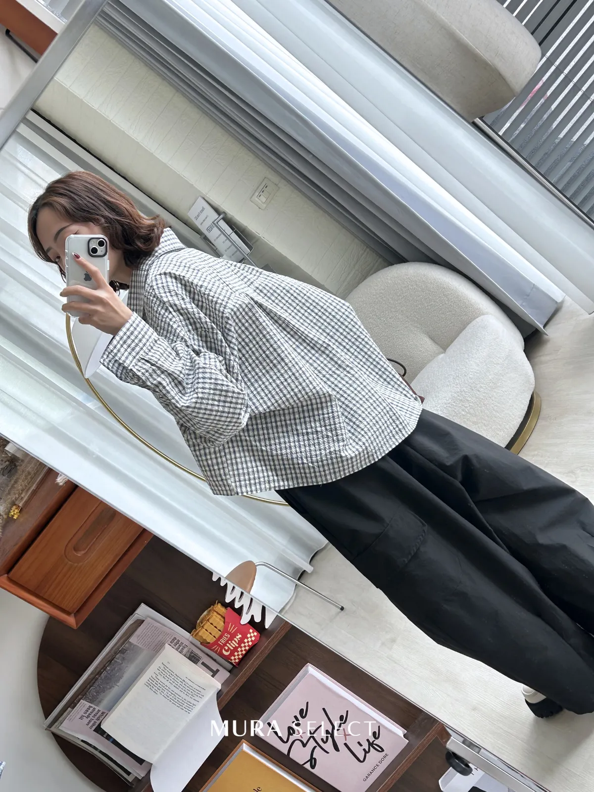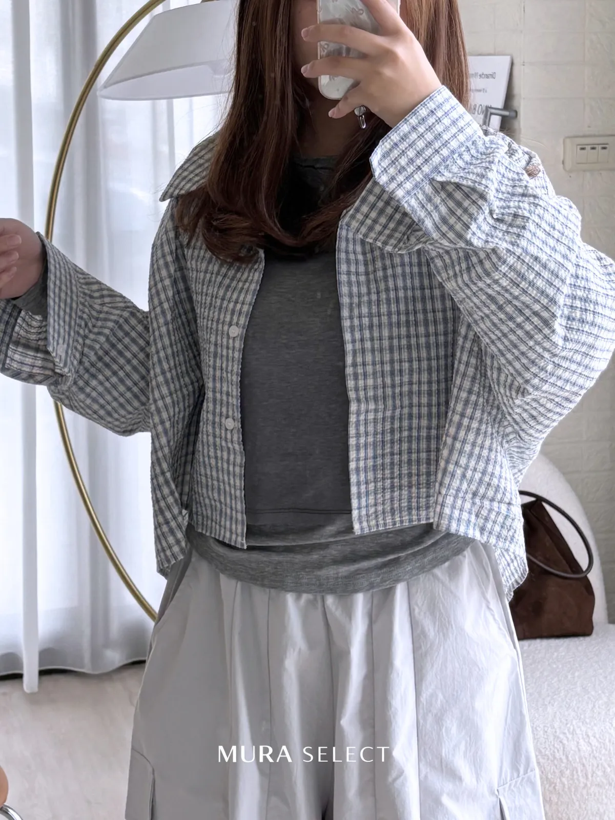 好好看 寬鬆弧型泡泡格紋襯衫2colors