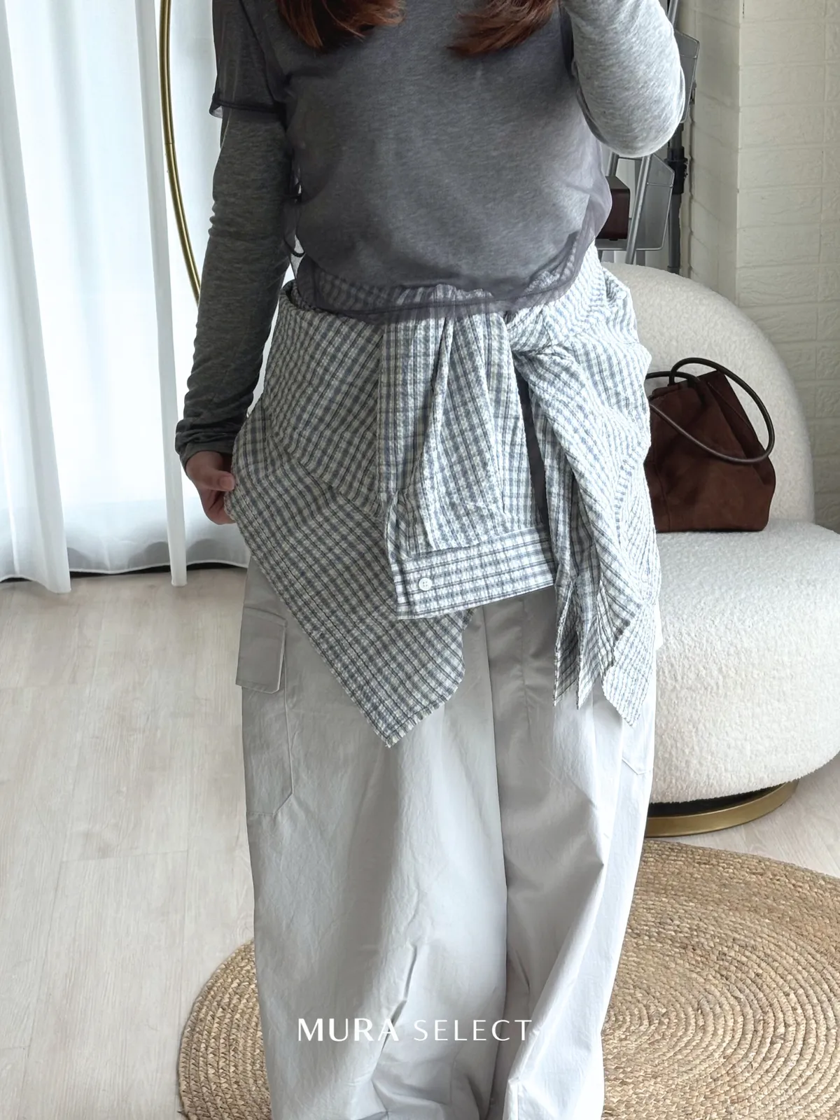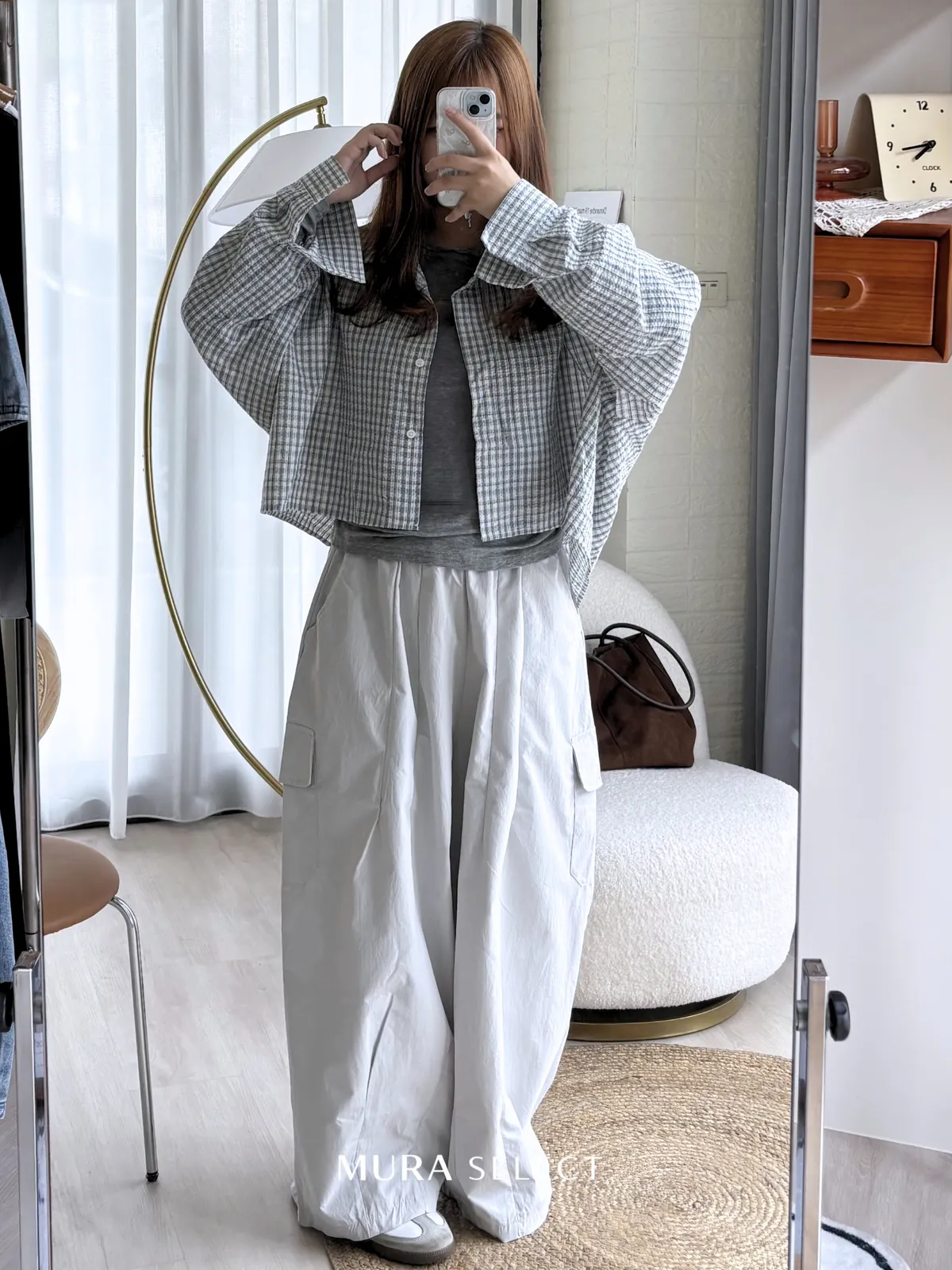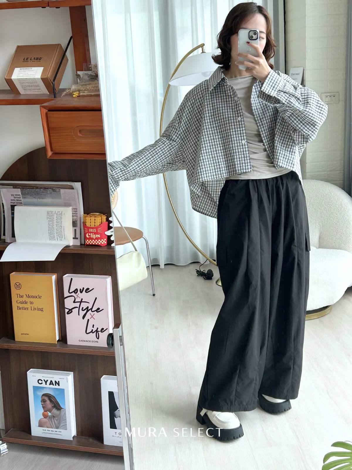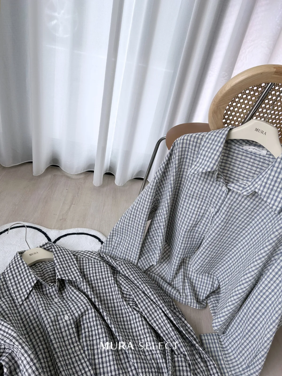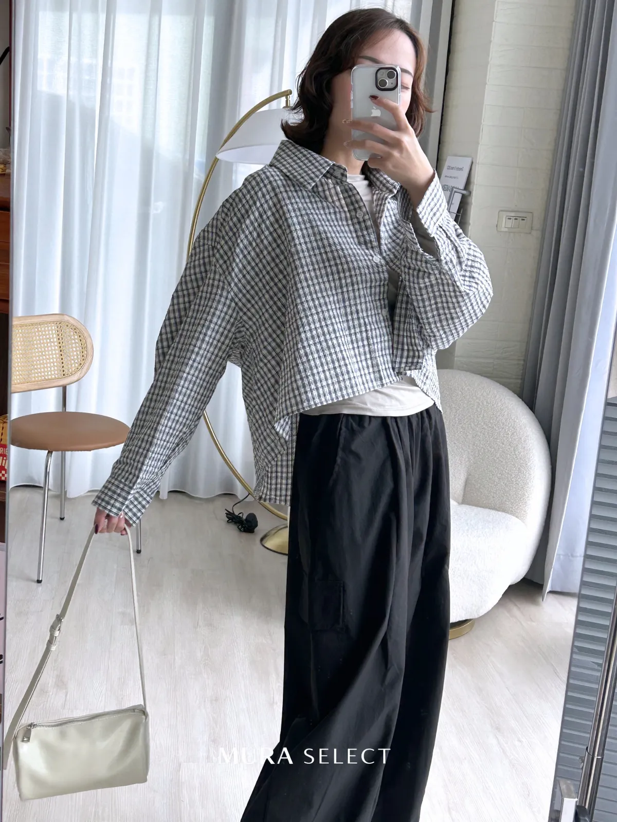 好好看 寬鬆弧型泡泡格紋襯衫2colors