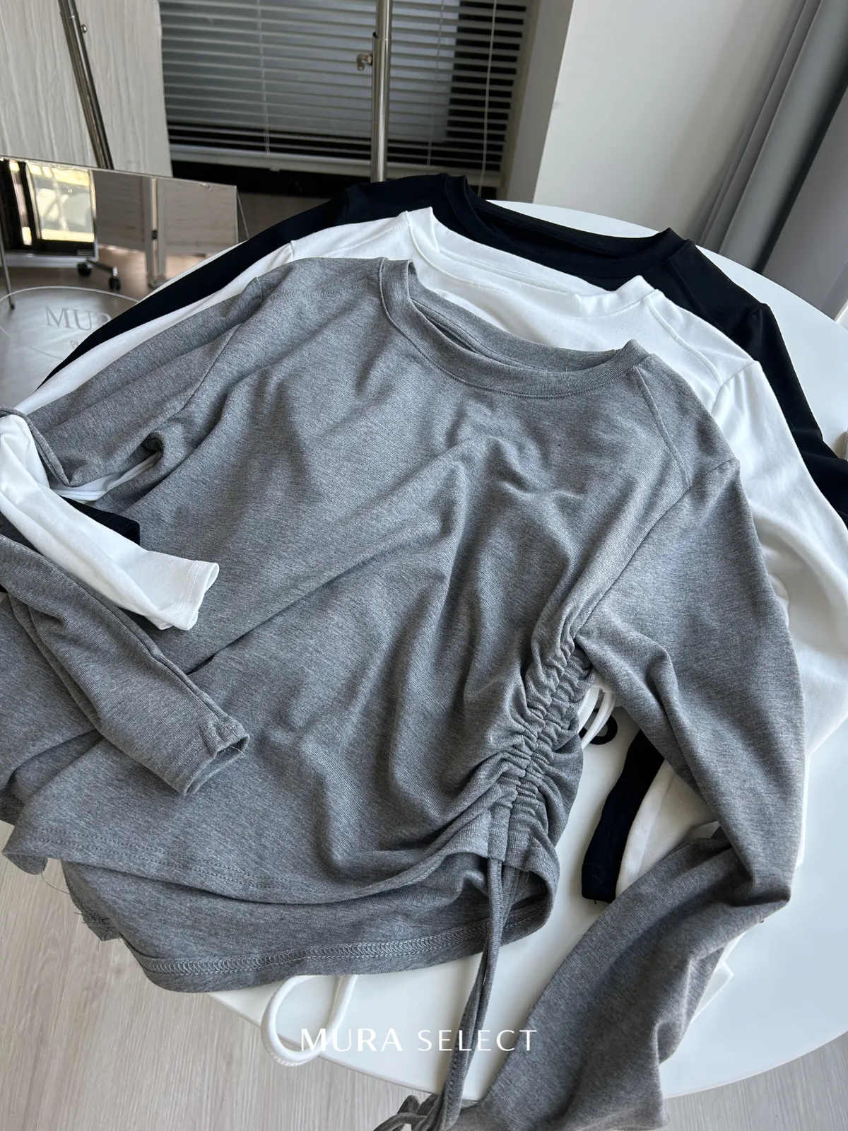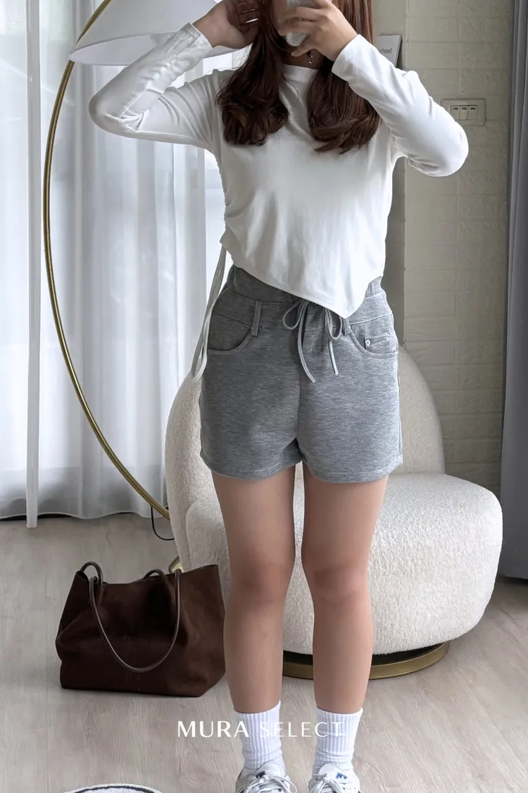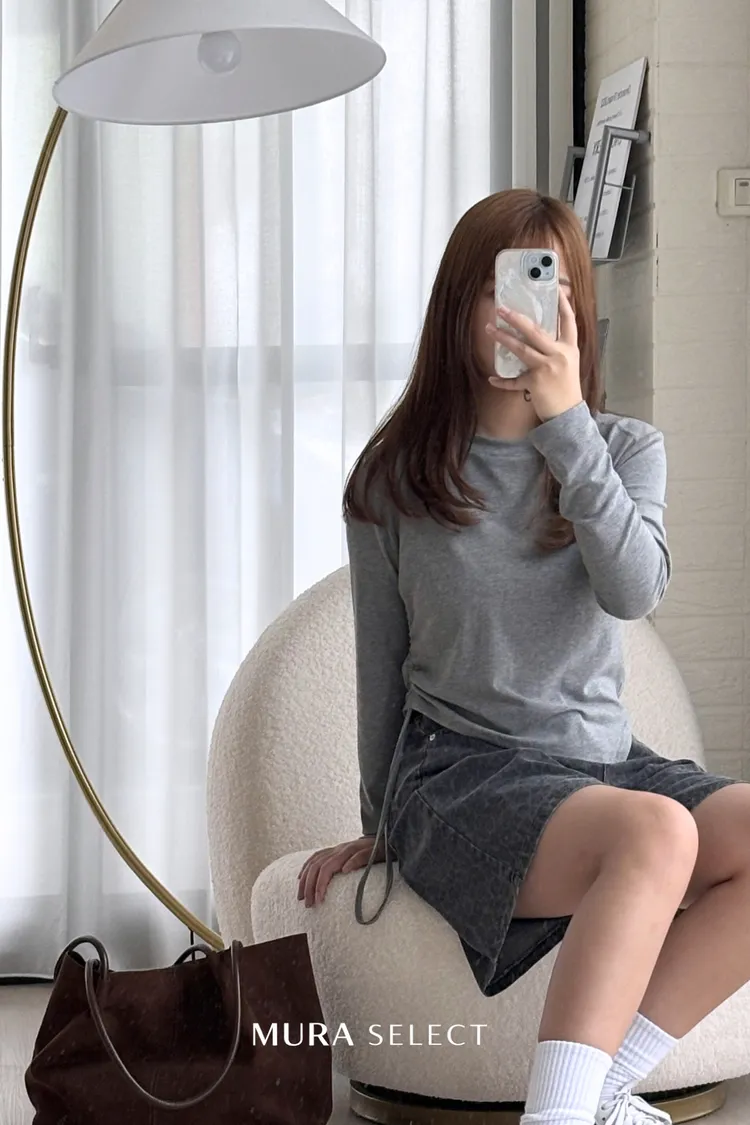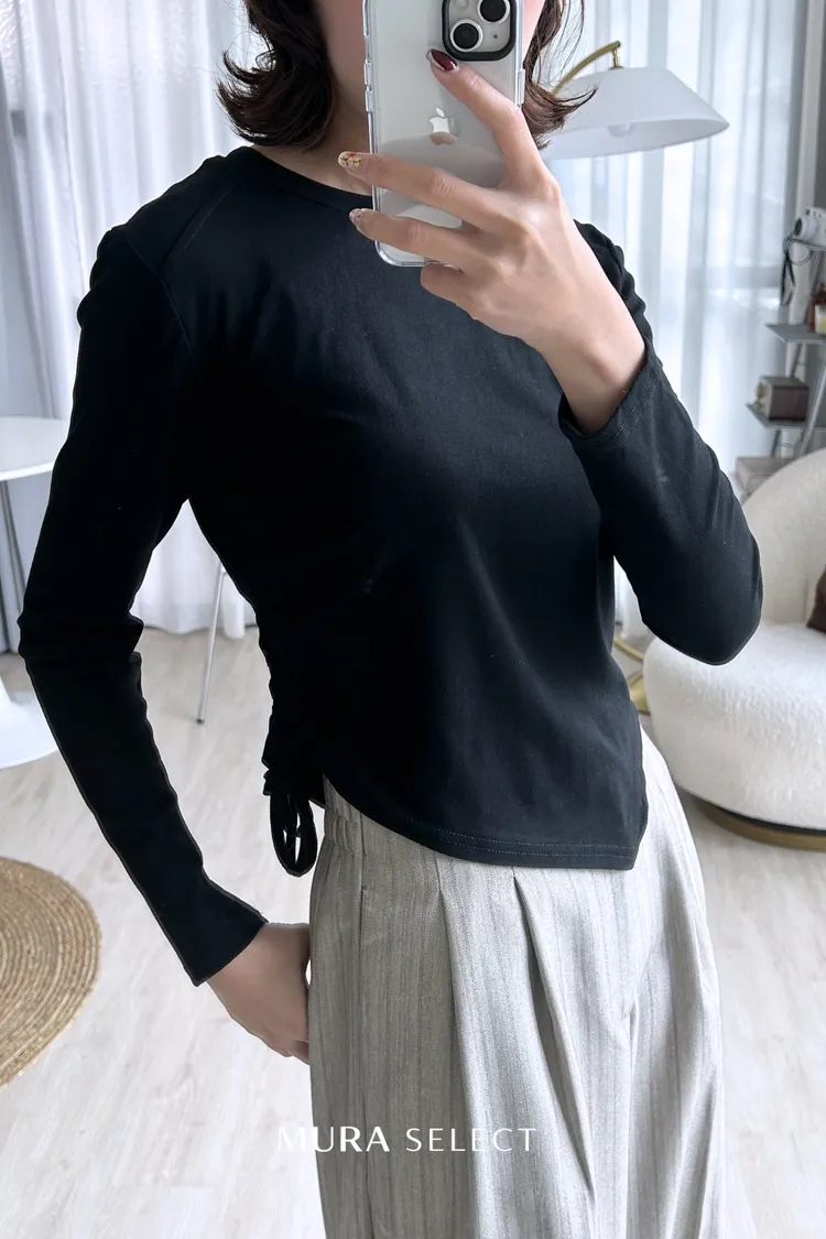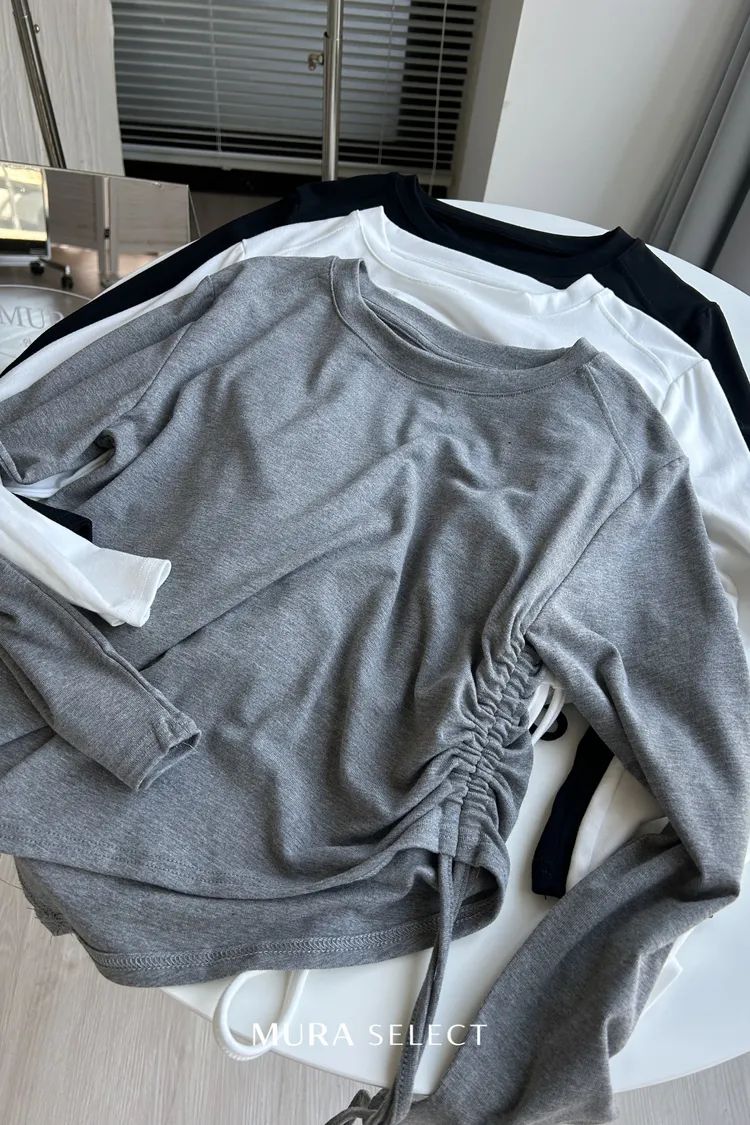 不無聊的日常 側抽繩斜擺棉tee 3colors