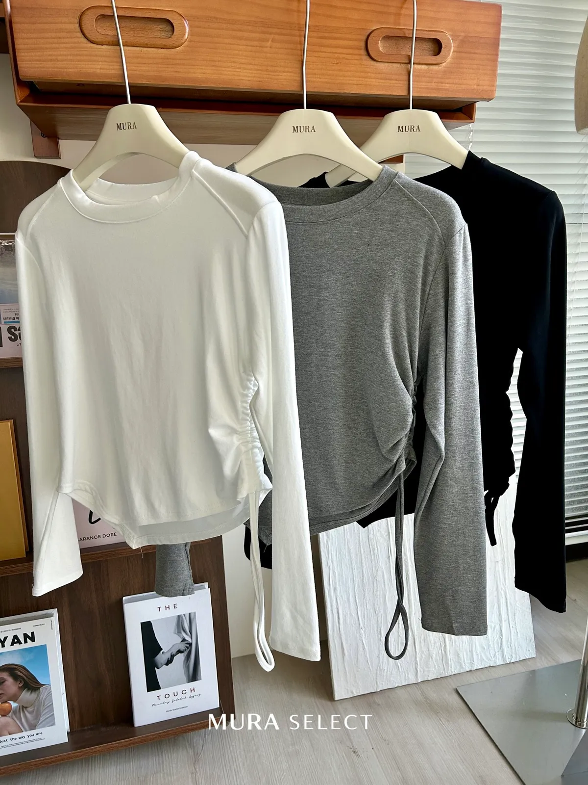 • 不規則下擺/側抽繩