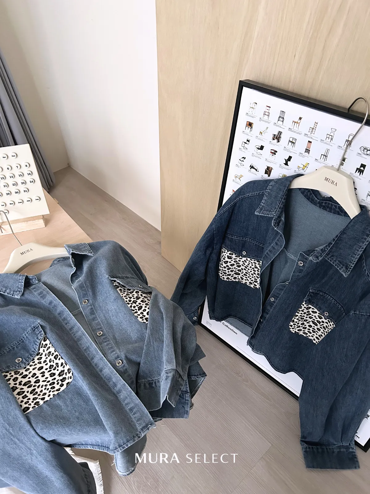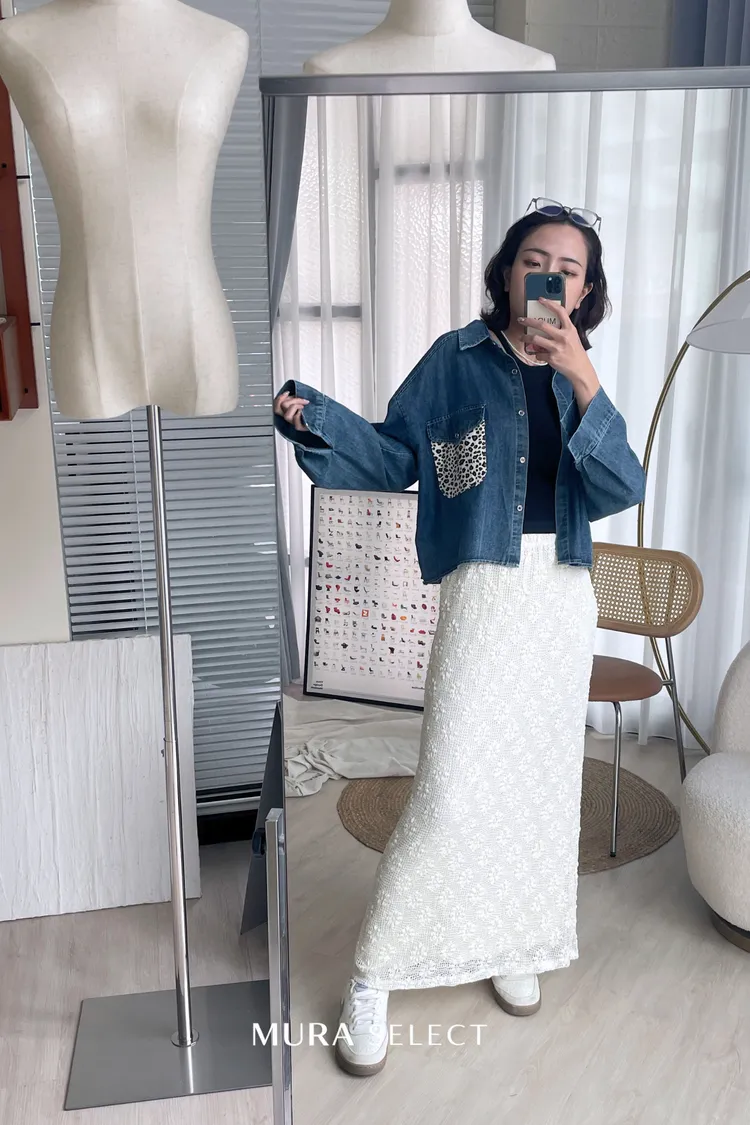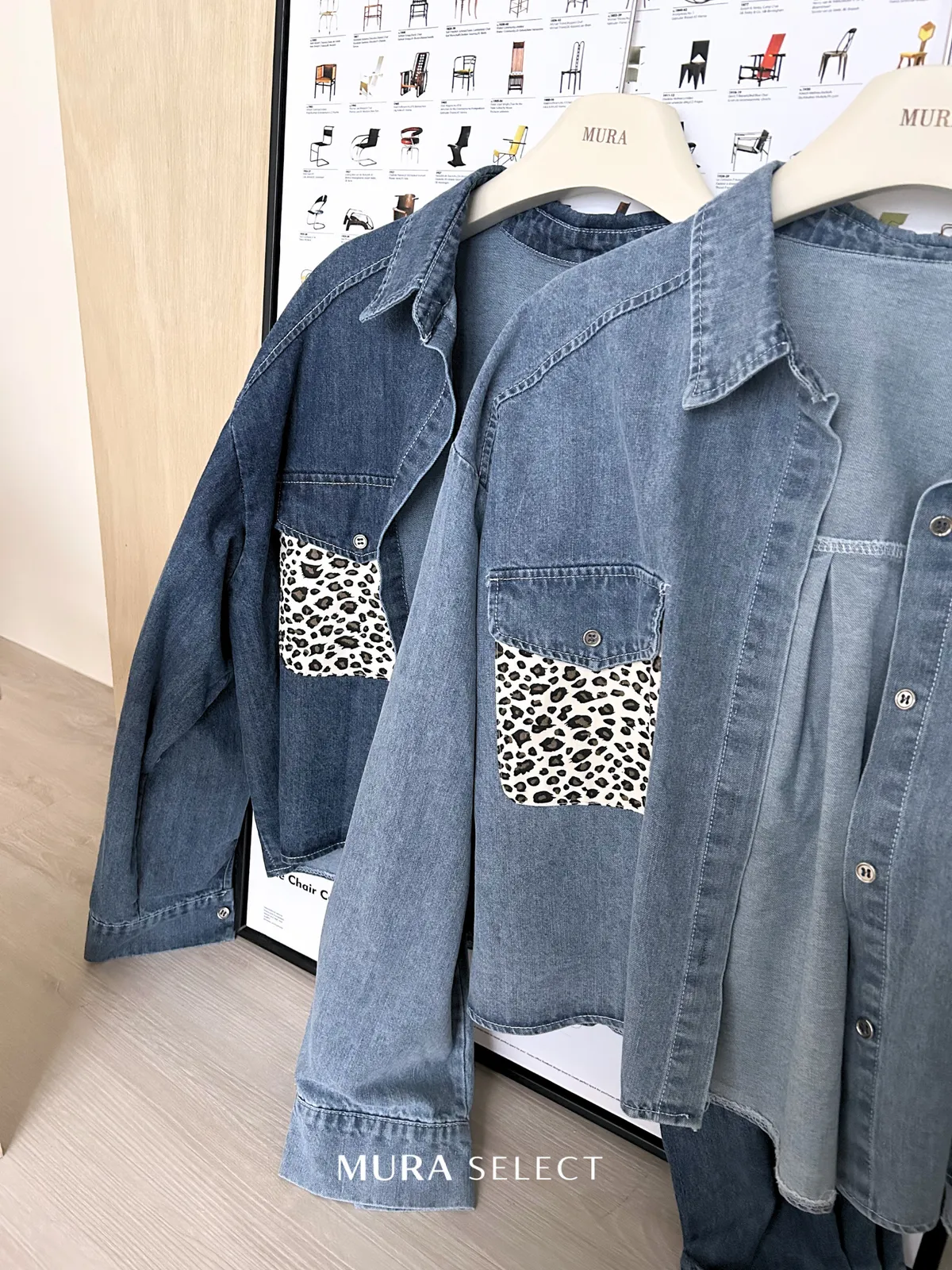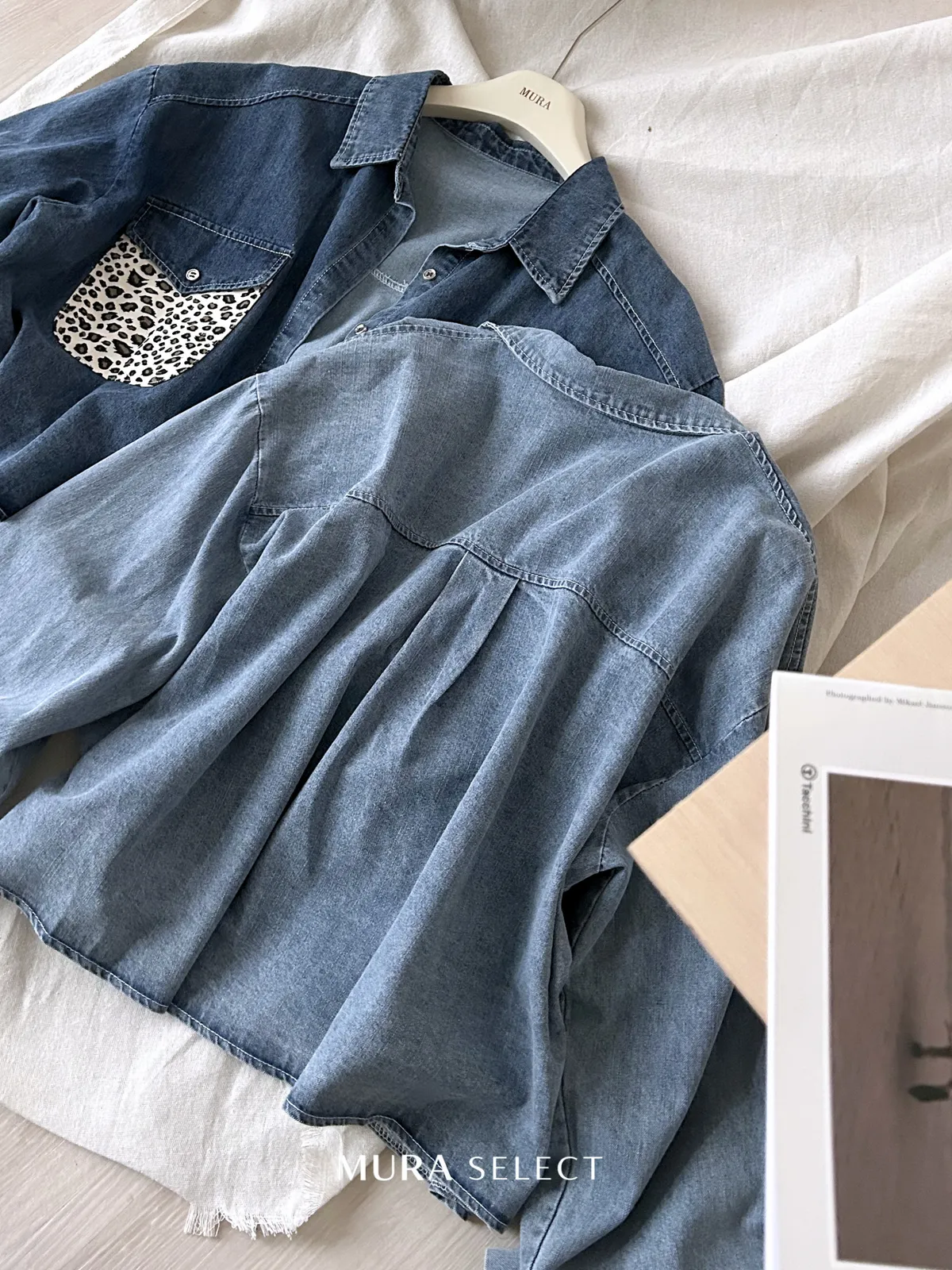 酷甜可愛 乳牛豹紋口袋牛仔襯衫2colors