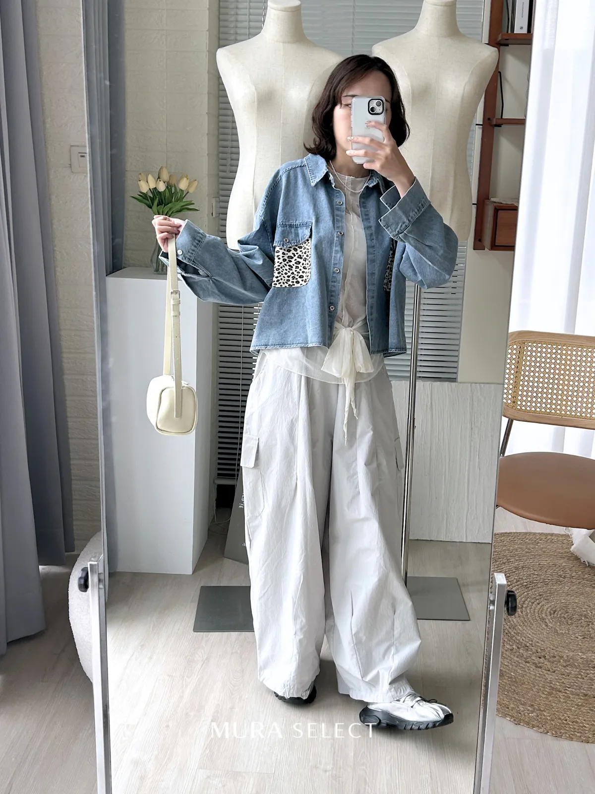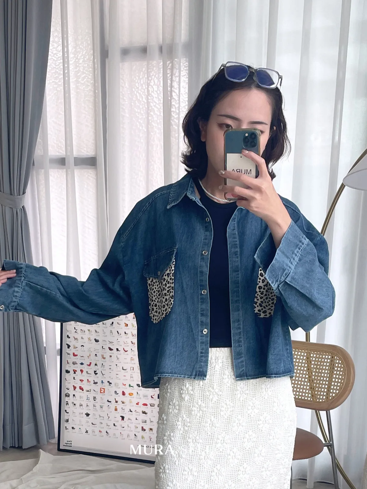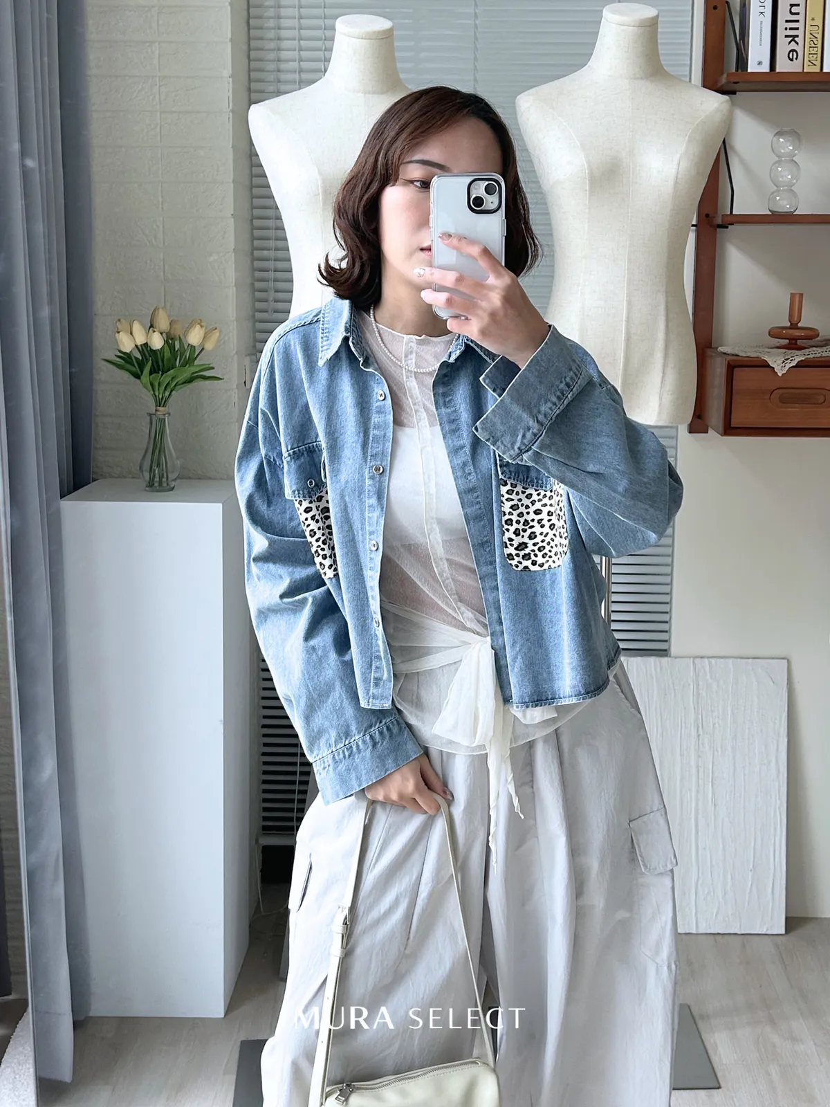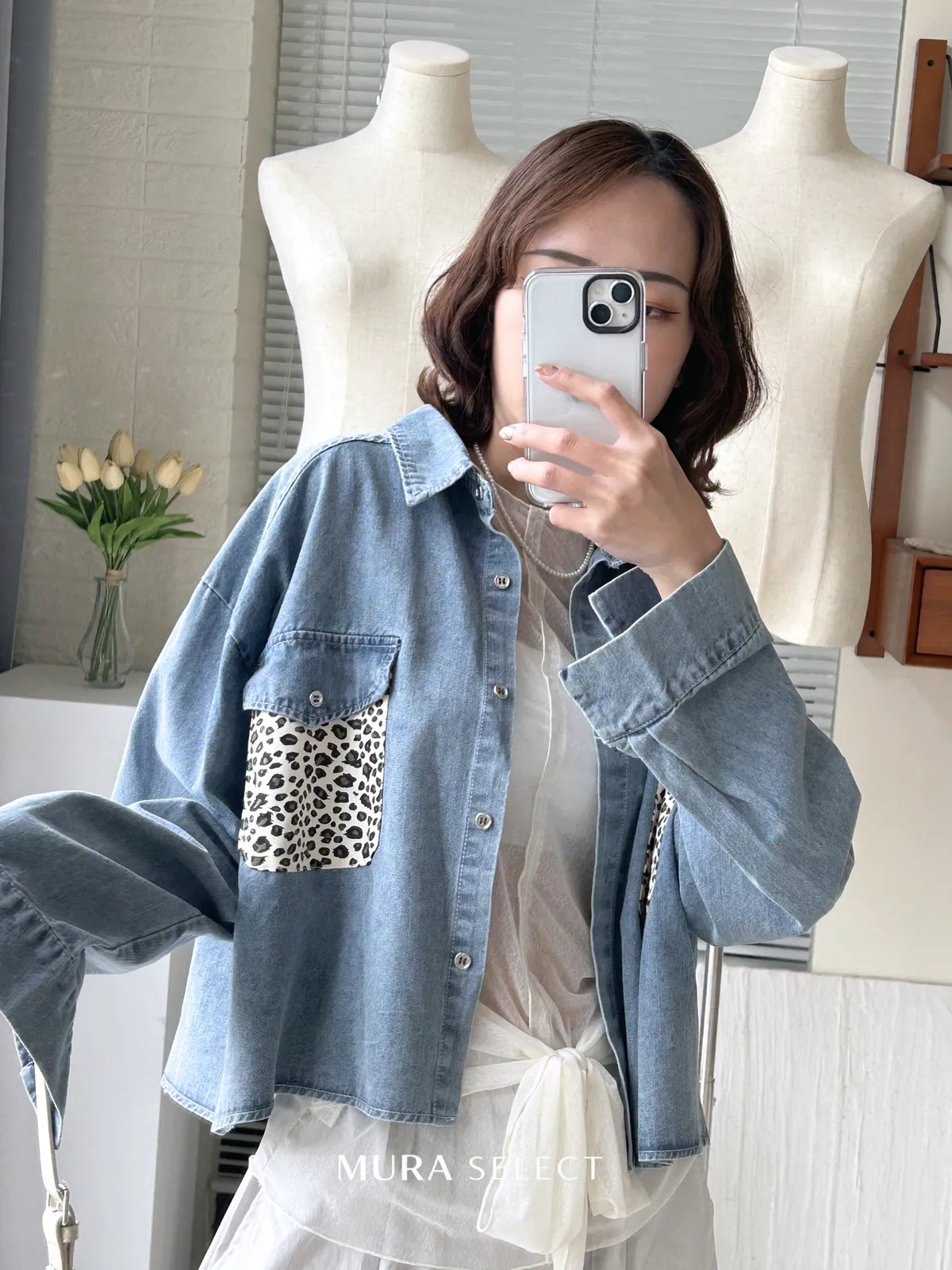 酷甜可愛 乳牛豹紋口袋牛仔襯衫2colors