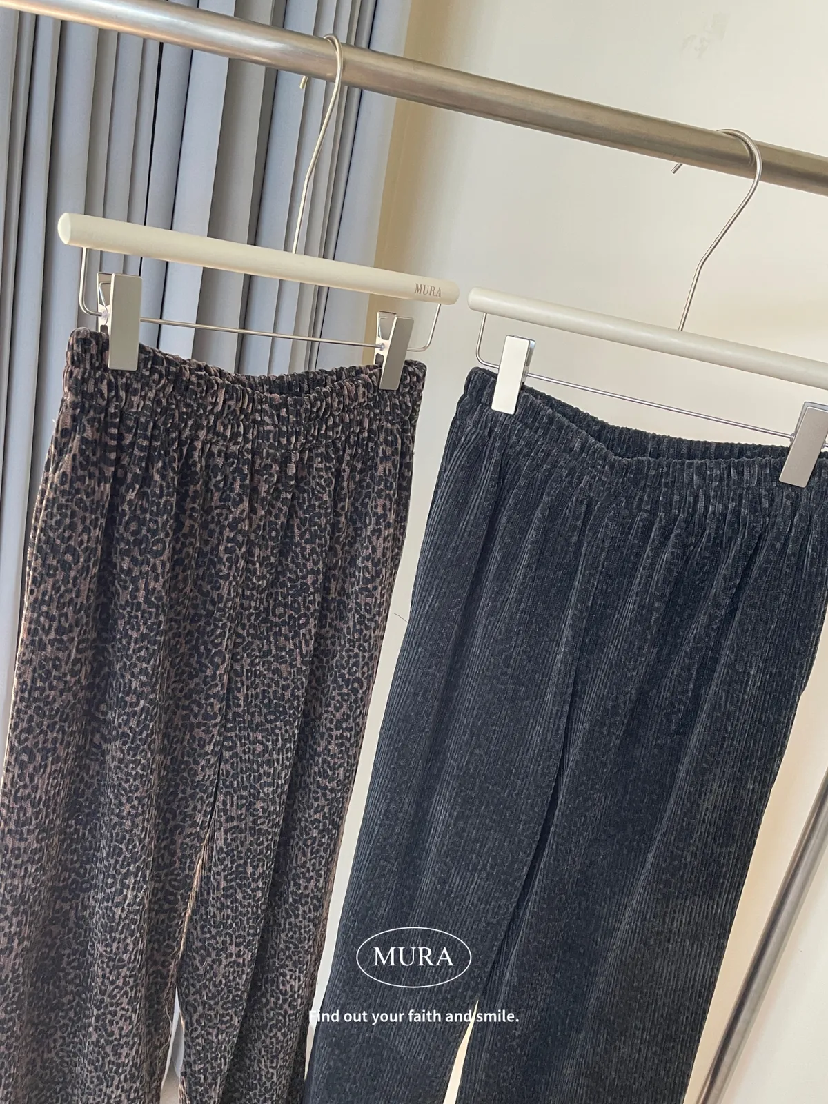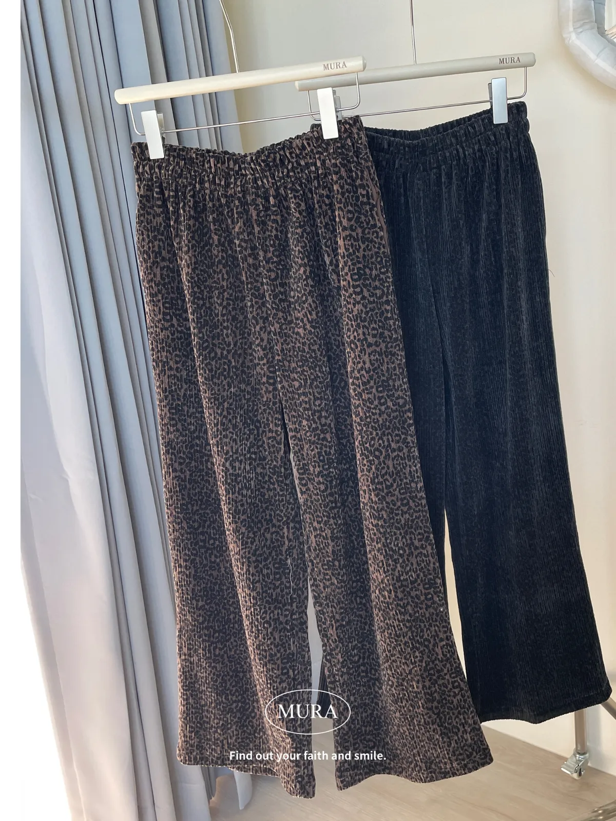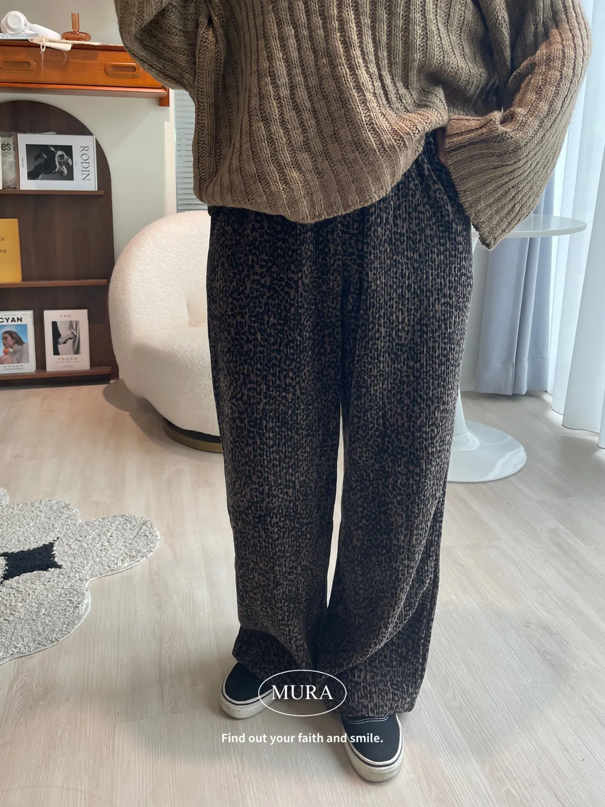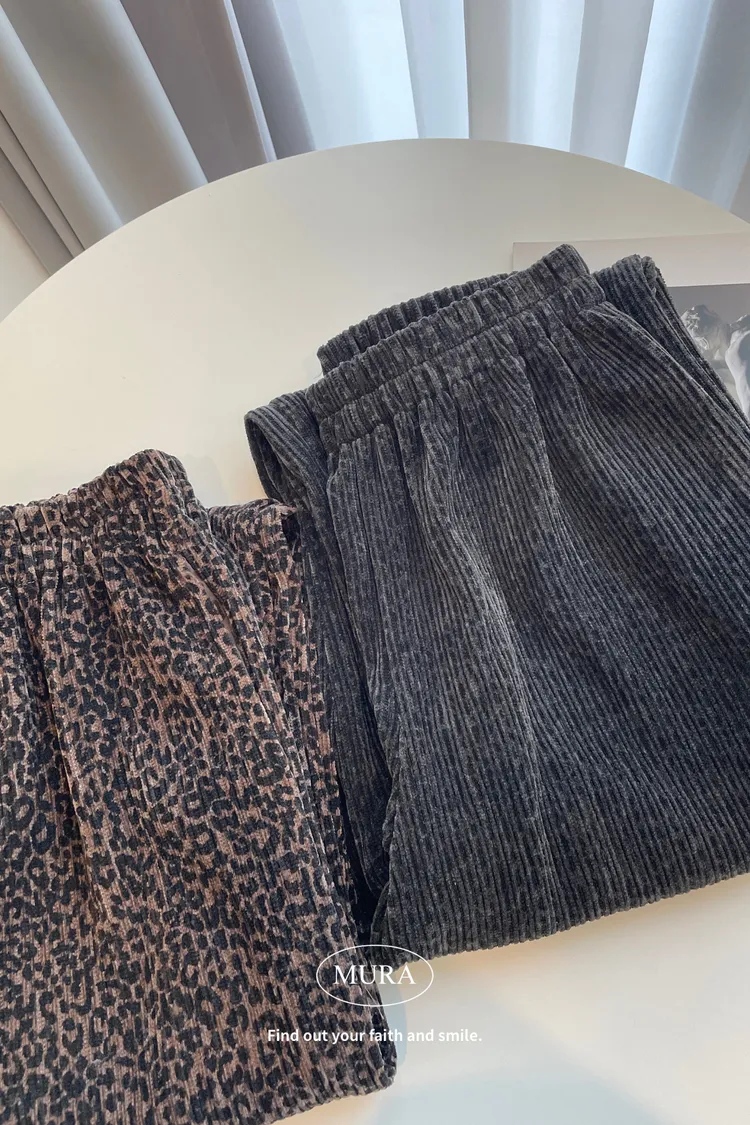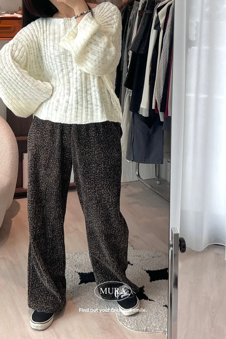 低調入手 特殊面料豹紋寬褲/2colors