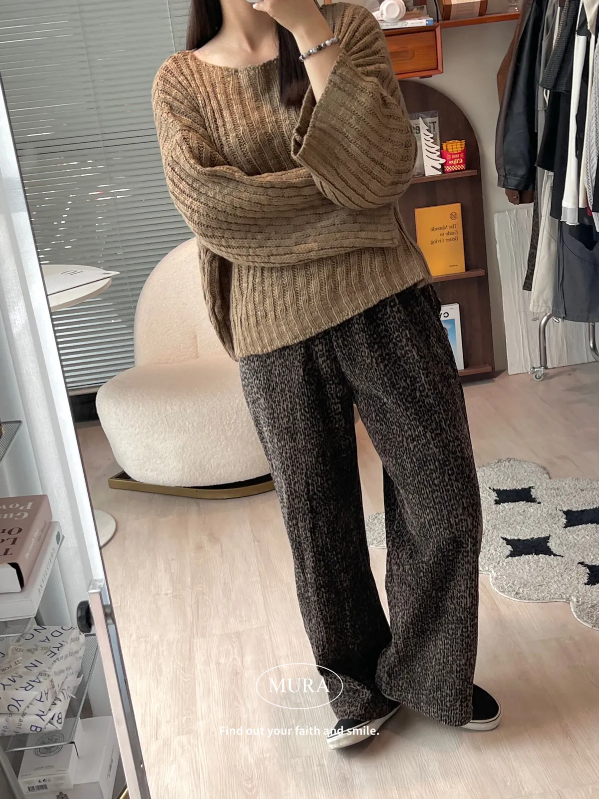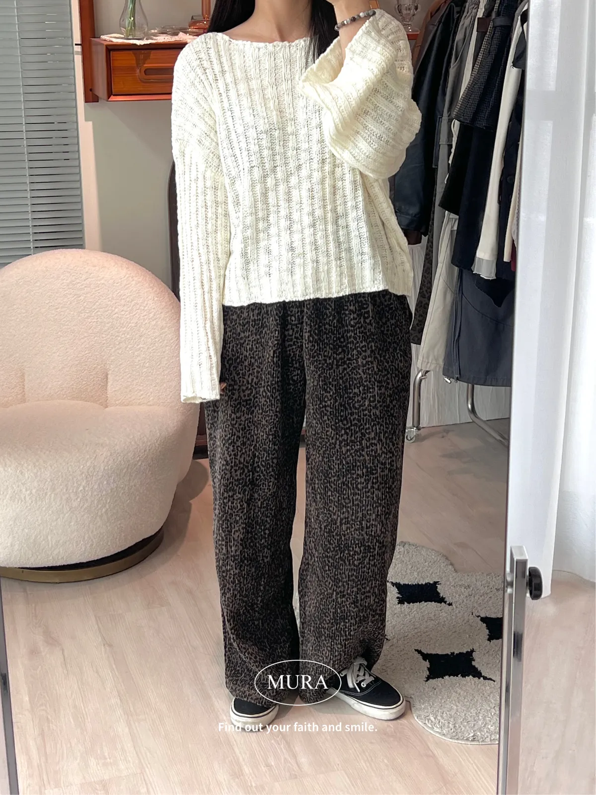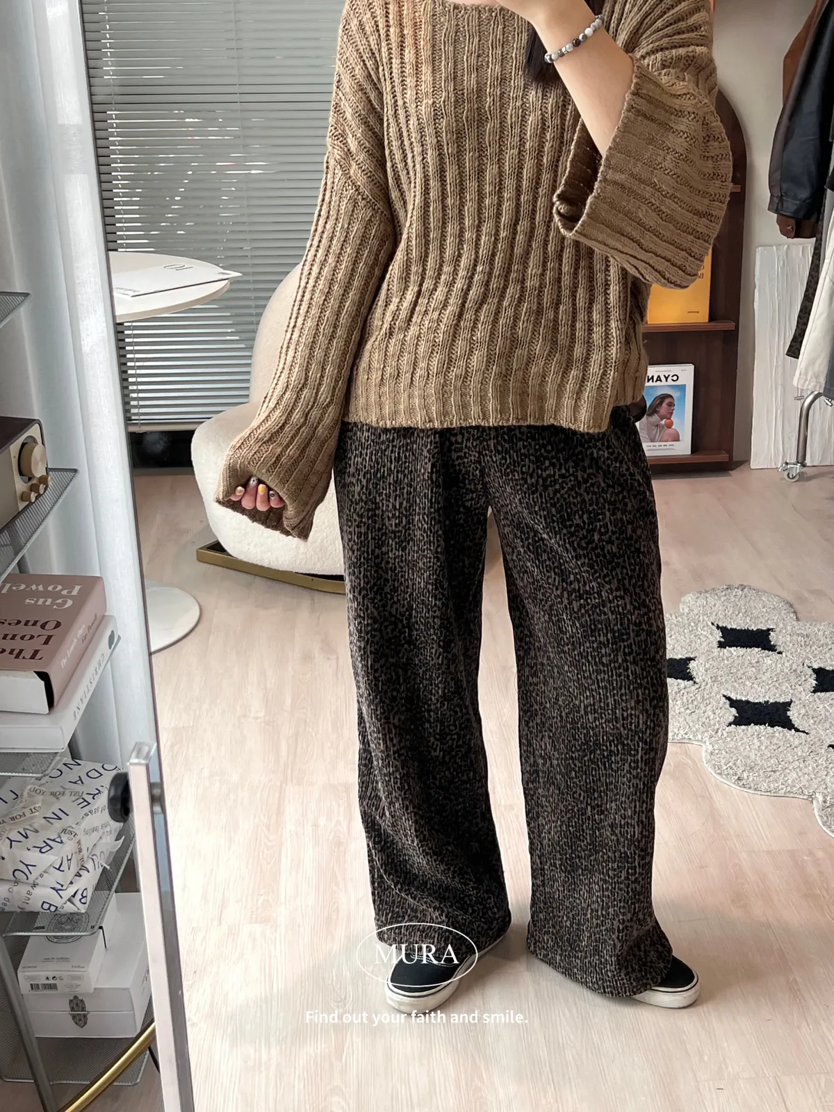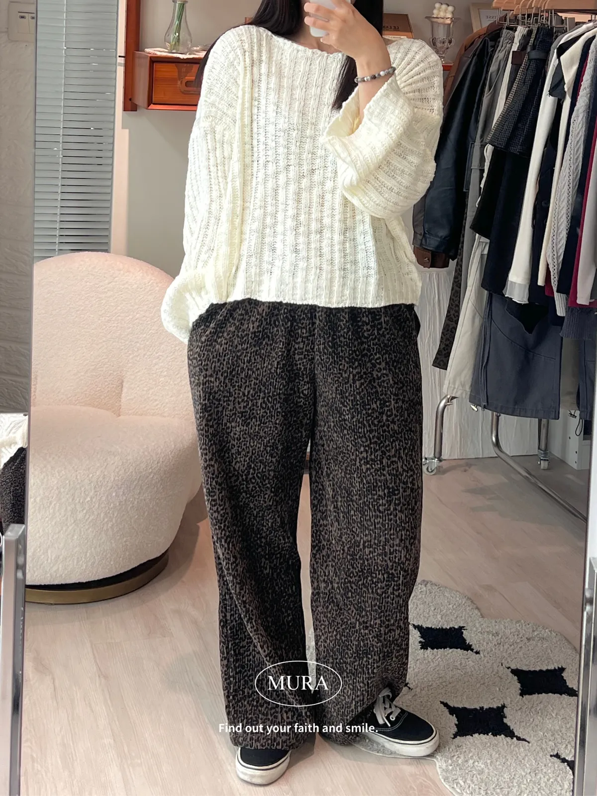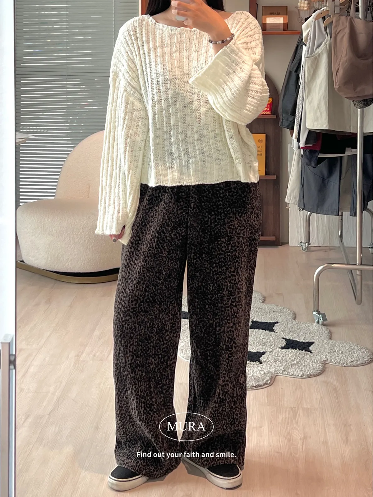 低調入手 特殊面料豹紋寬褲/2colors