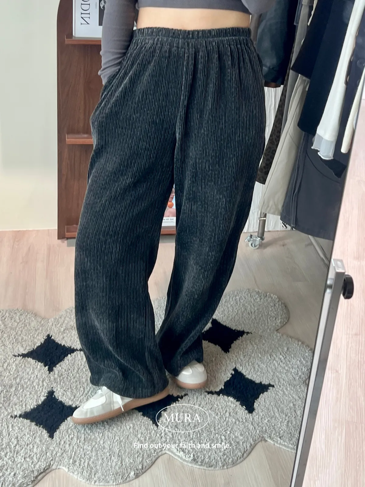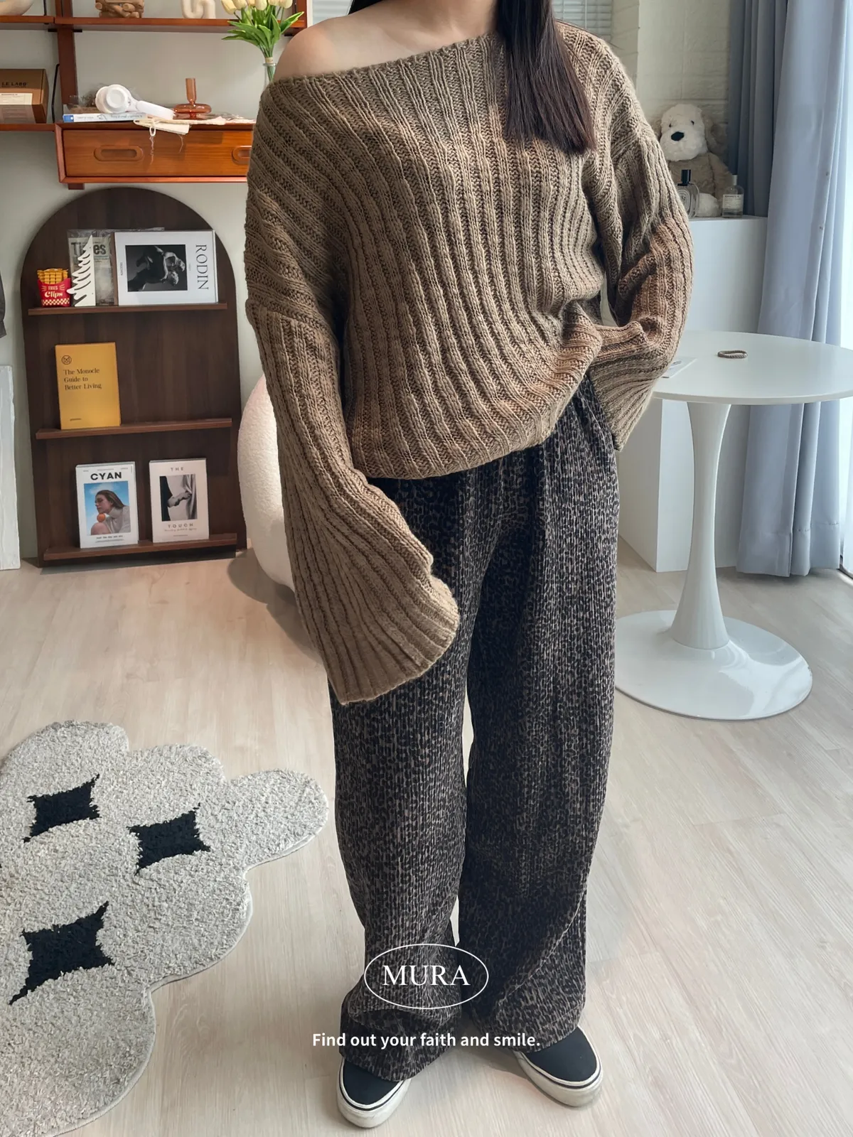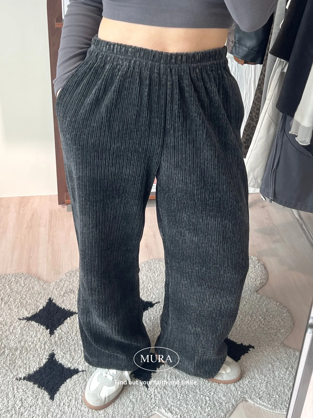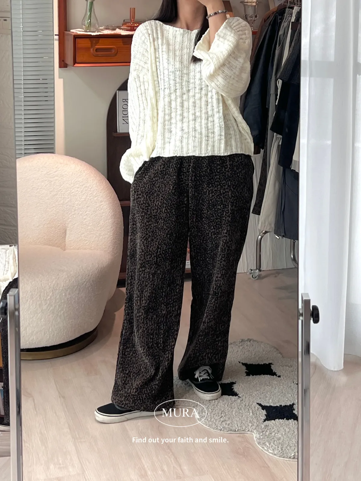 低調入手 特殊面料豹紋寬褲/2colors