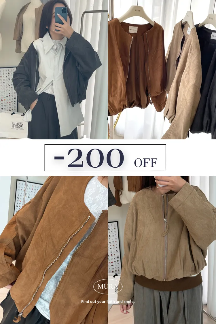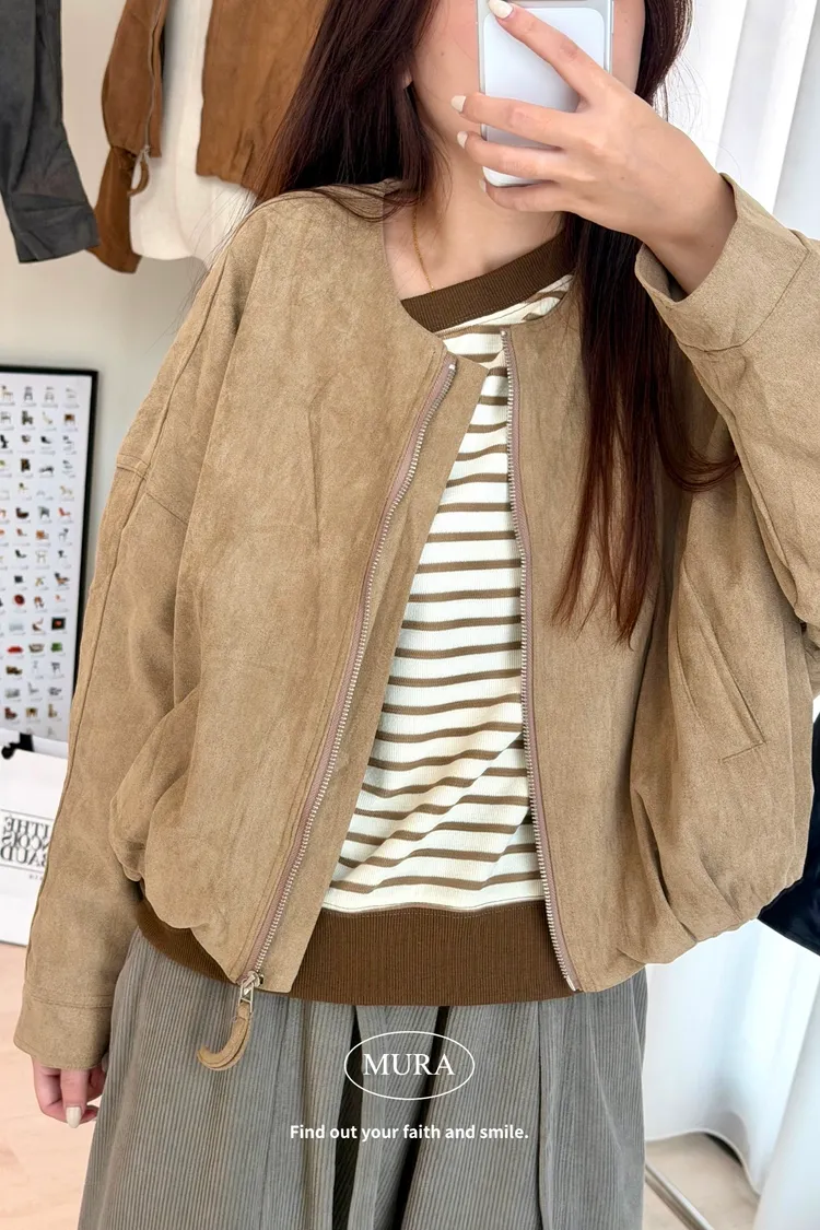 簡約俐落 無領麂皮絨夾克外套/3colors