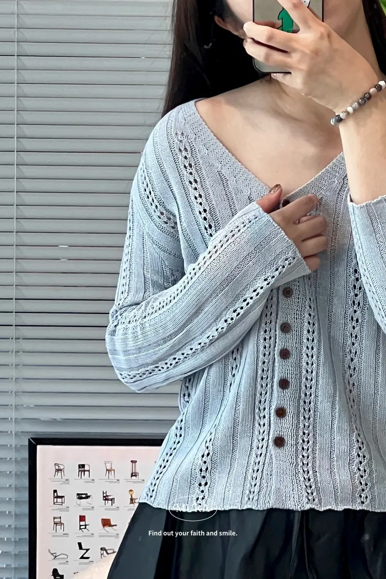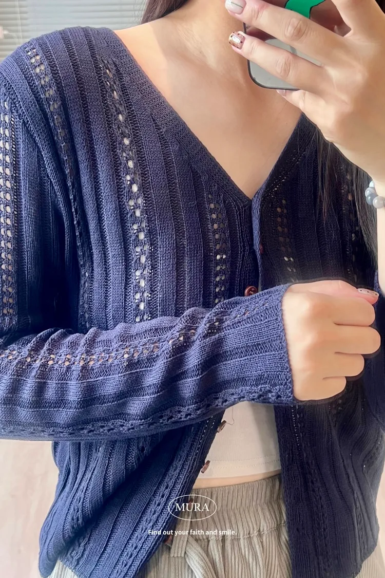 預習秋日 V領鏤空開釦外罩上衣/3colors