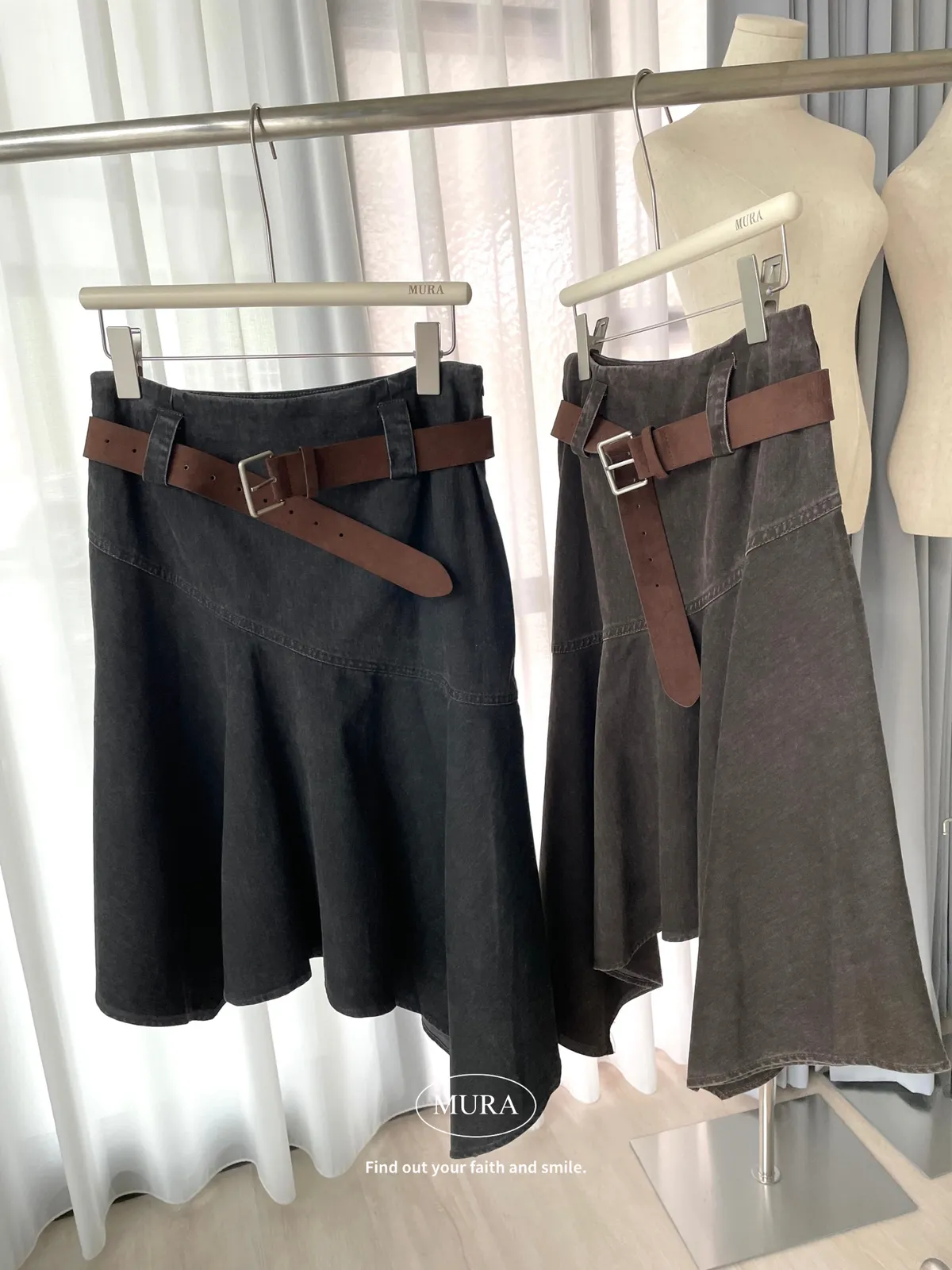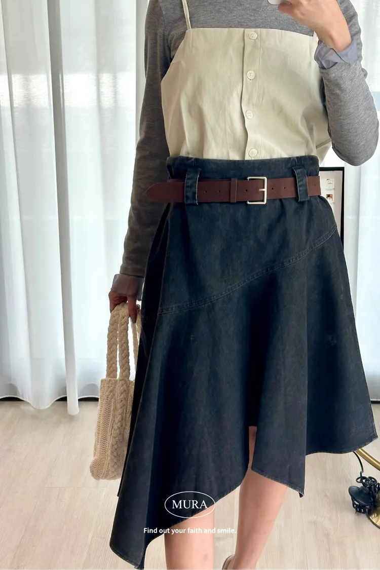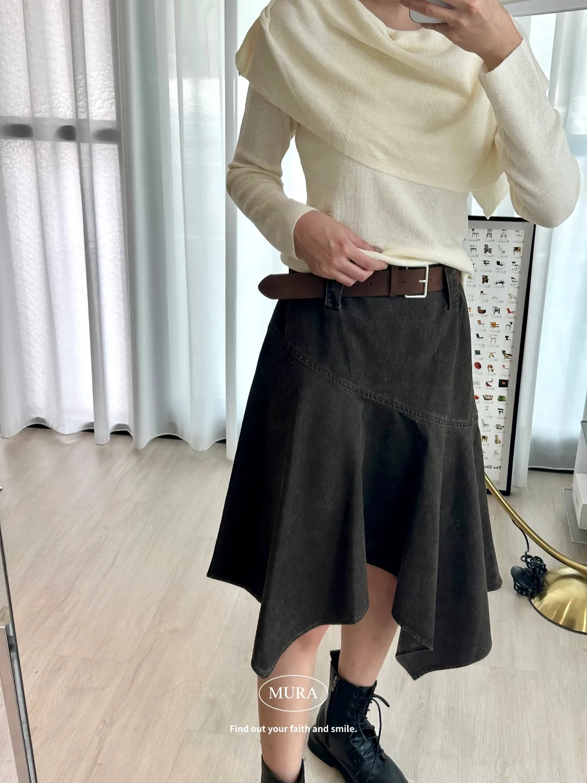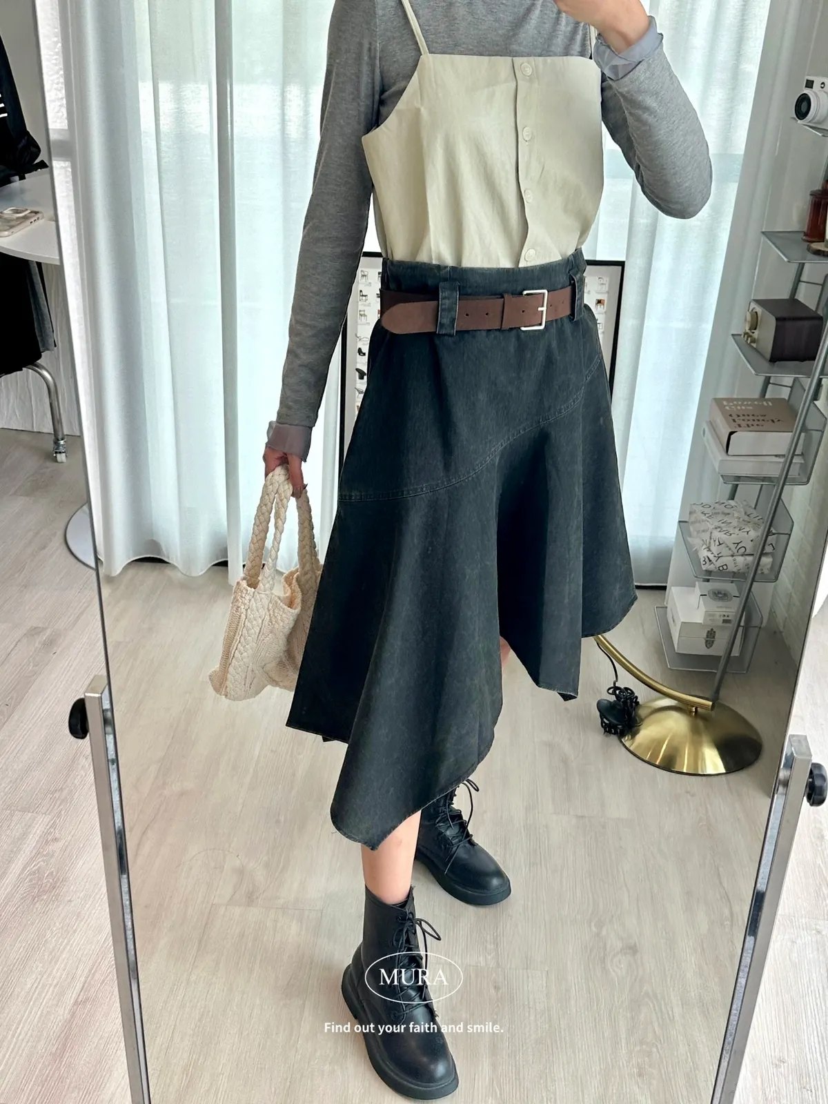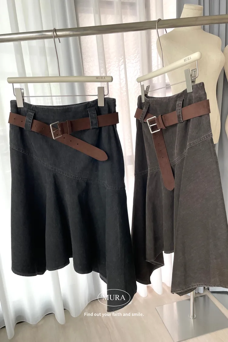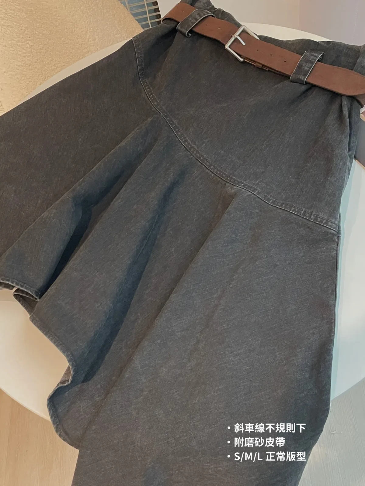 時髦到位 霧感斜擺不規則裙(附皮帶)/2colors|酷帥甜穿搭 S/M/L