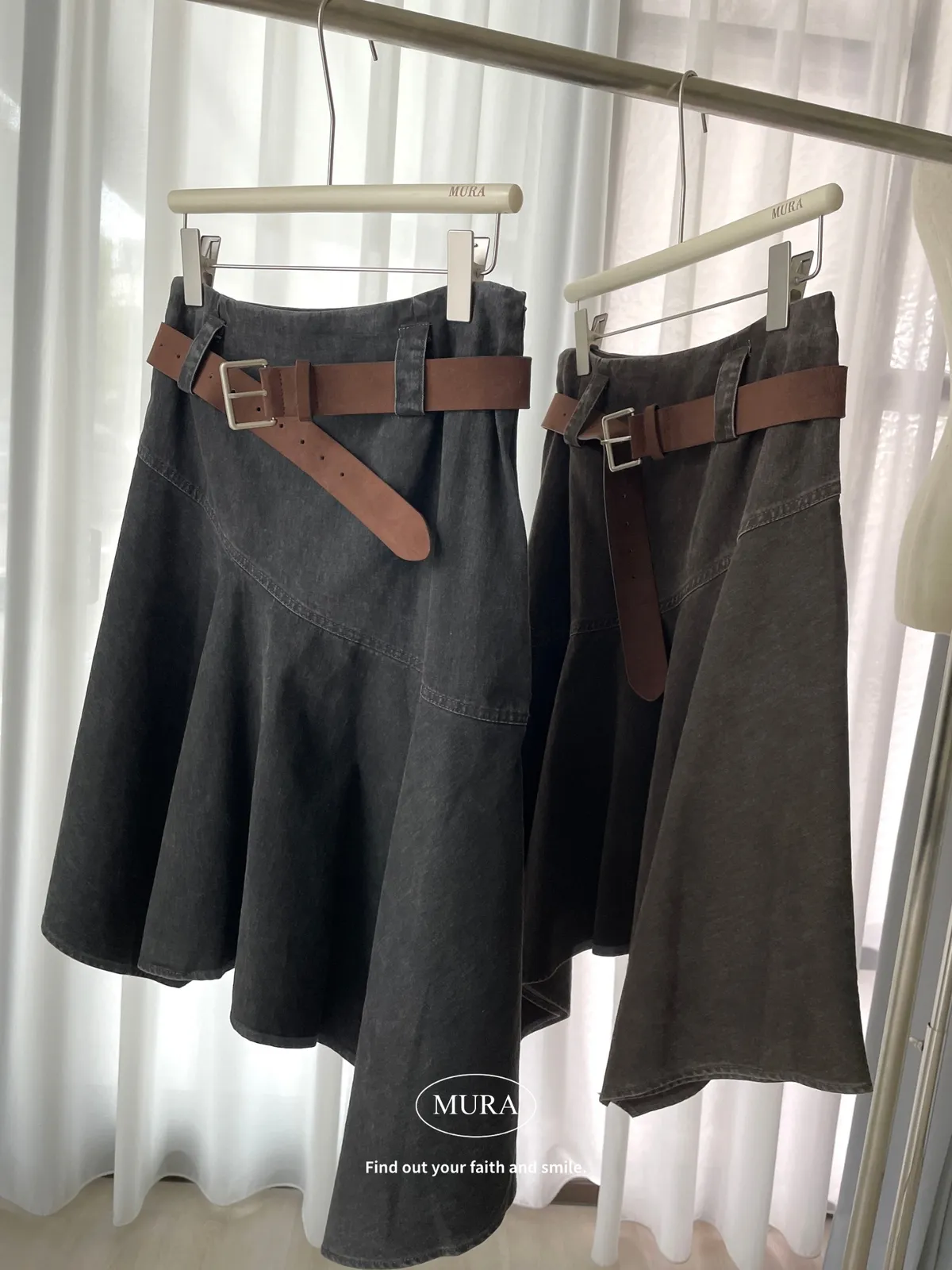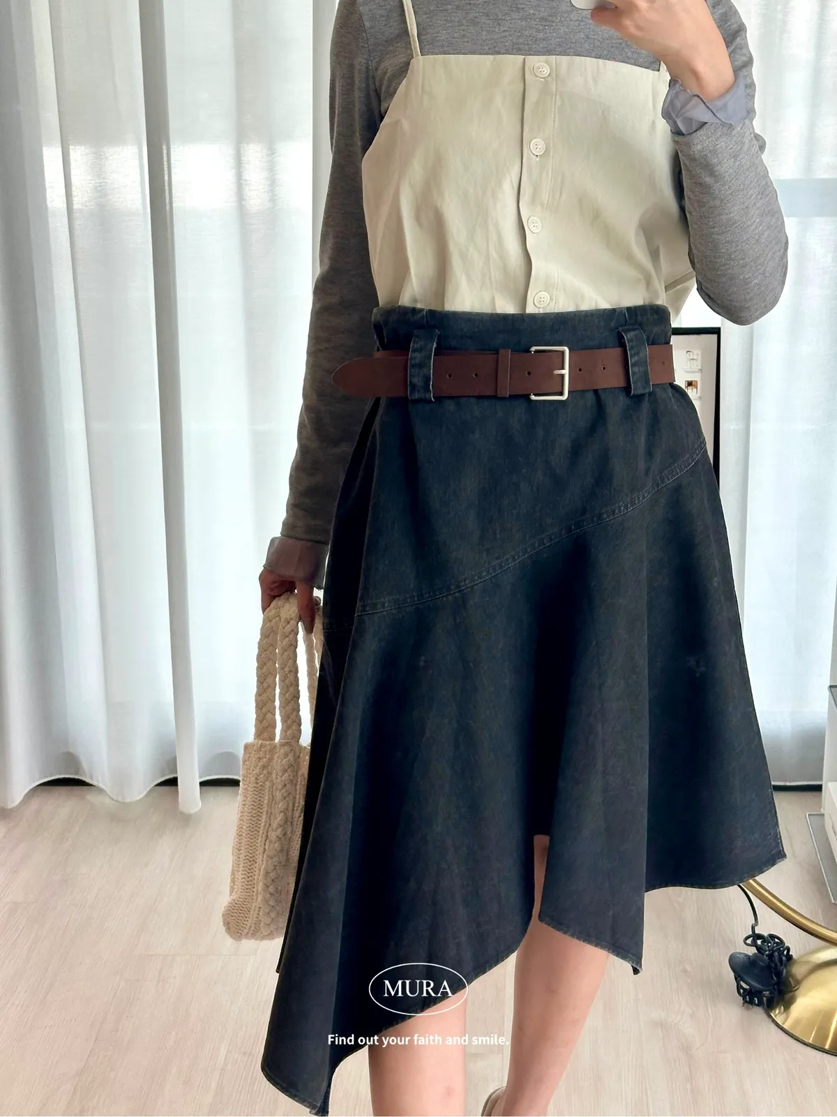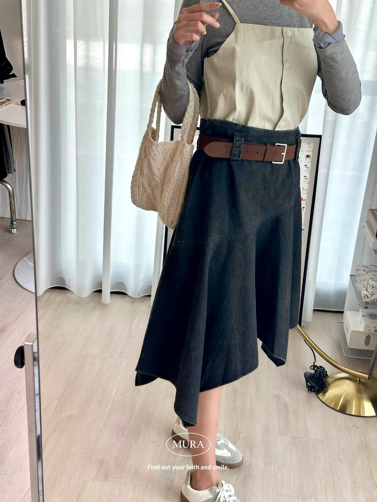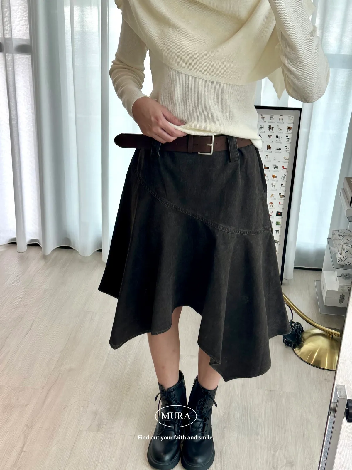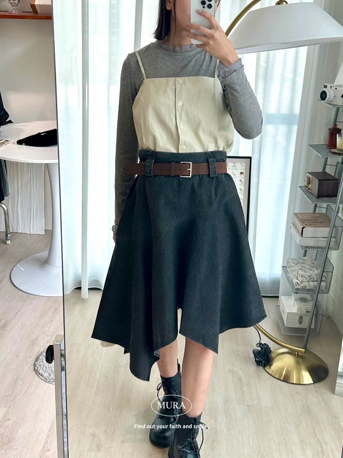 時髦到位 霧感斜擺不規則裙(附皮帶)/2colors|酷帥甜穿搭 S/M/L