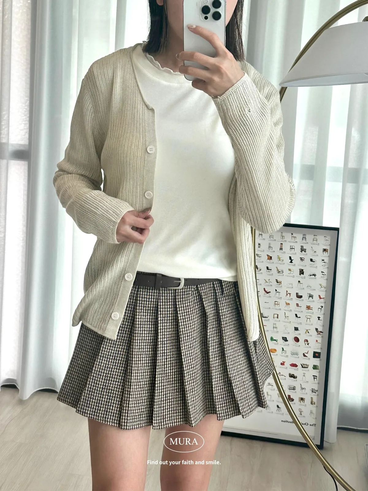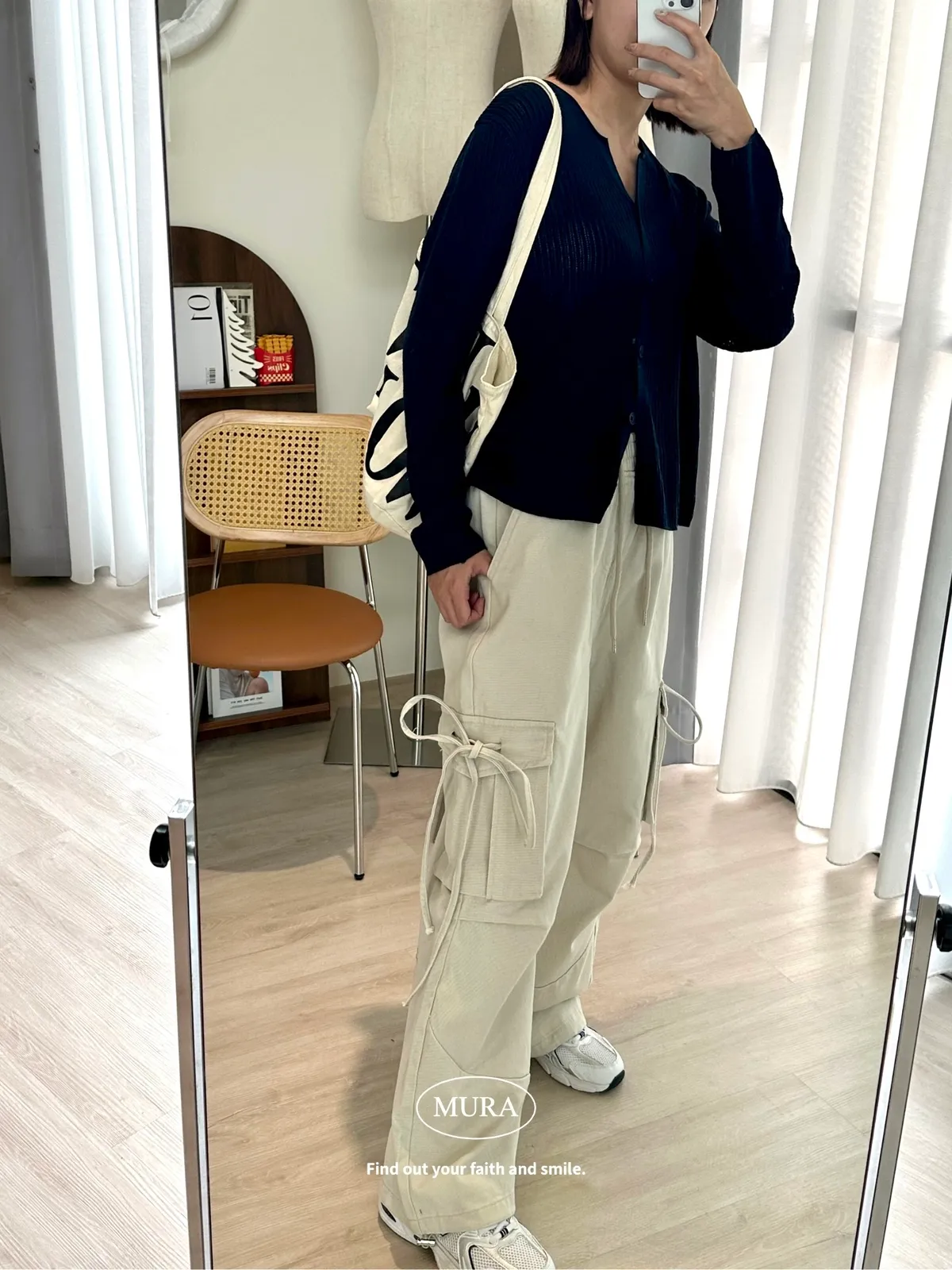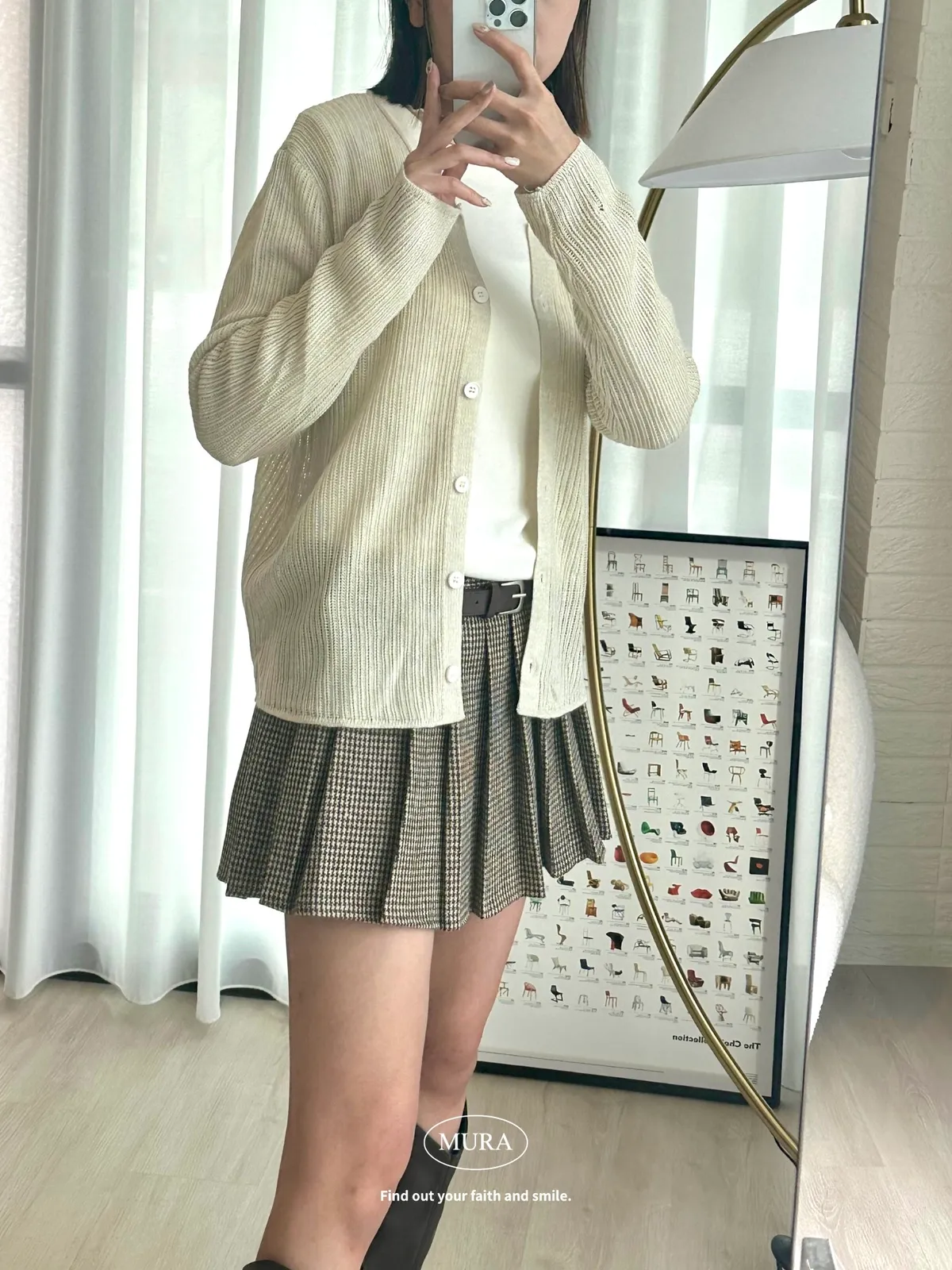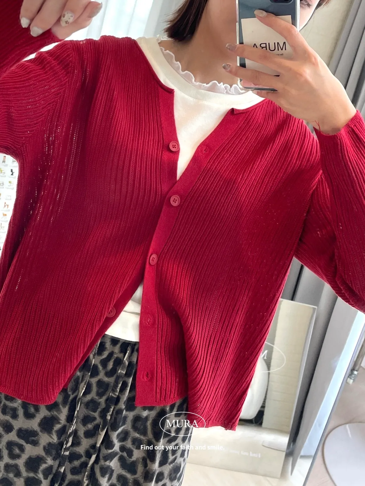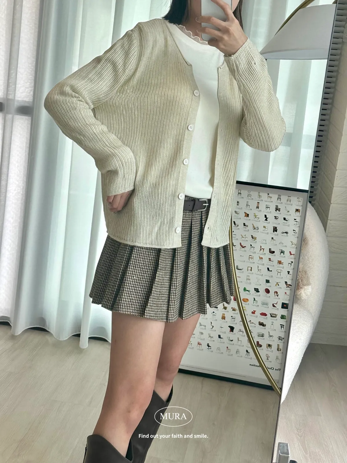 開釦針織外套的小V領剪裁修飾頸部線條,穿上自然散發慵懶氛圍。