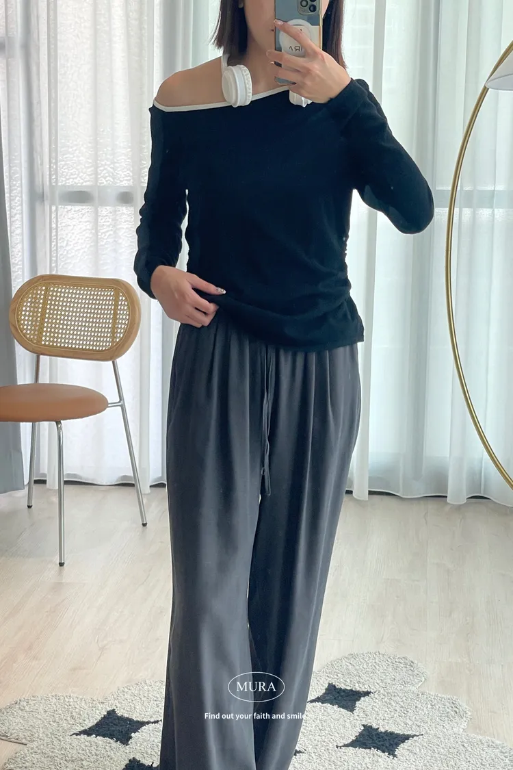 肆意慵懶 斜領多穿撞色針織上衣/3colors