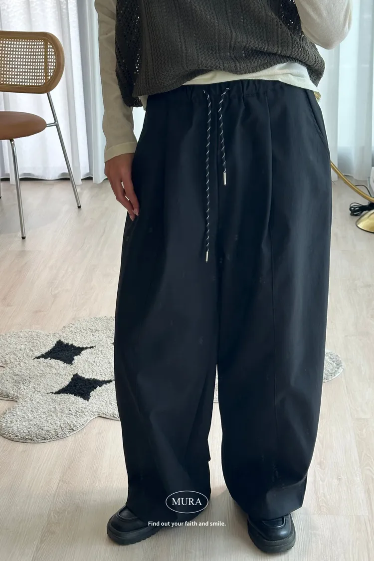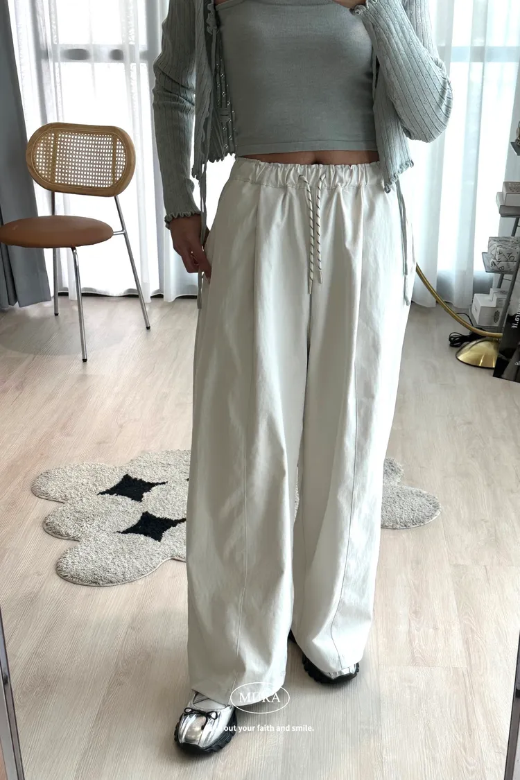 慵懶也要有帥度 微彎刀抽繩寬褲/3colors