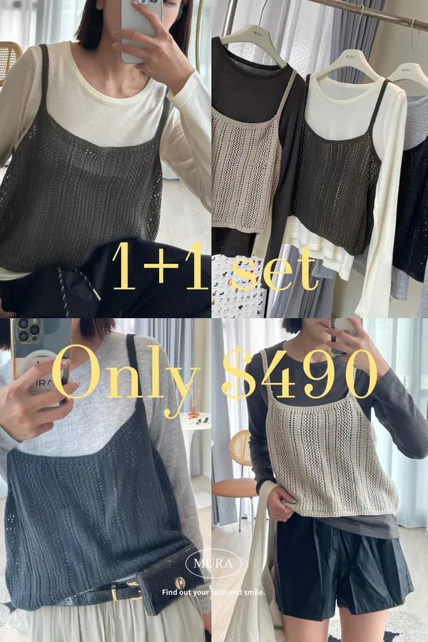 慵懶疊搭日常 針織上衣+網織吊帶背心set/3colors