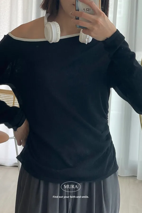 肆意慵懶 斜領多穿撞色針織上衣/3colors