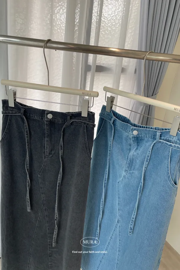 穿不膩的日常車線牛仔裙(附綁帶)/2colors