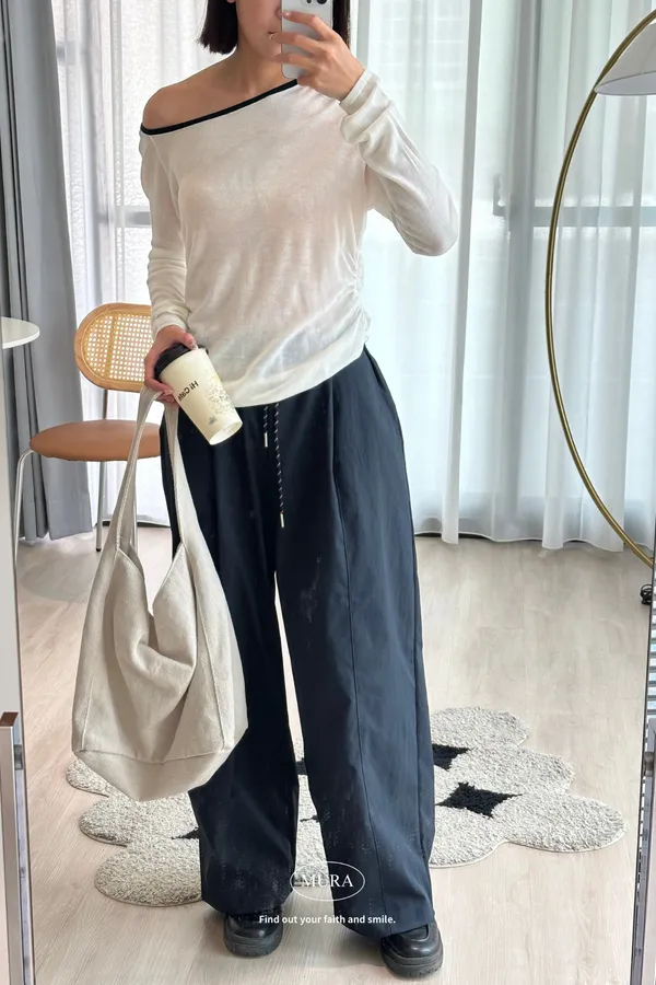 慵懶也要有帥度 微彎刀抽繩寬褲/3colors