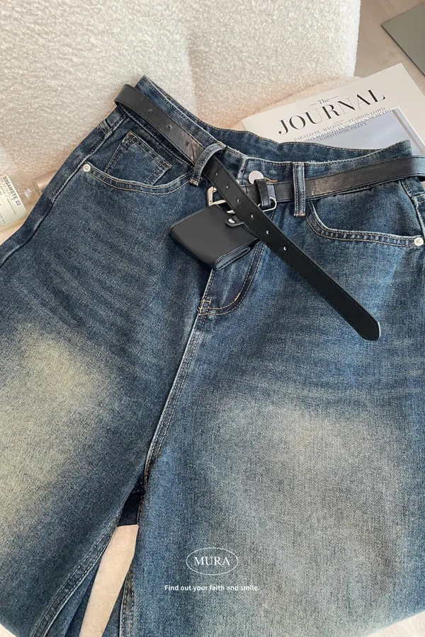 街頭鬆弛感 8分刷色寬褲(附皮帶)