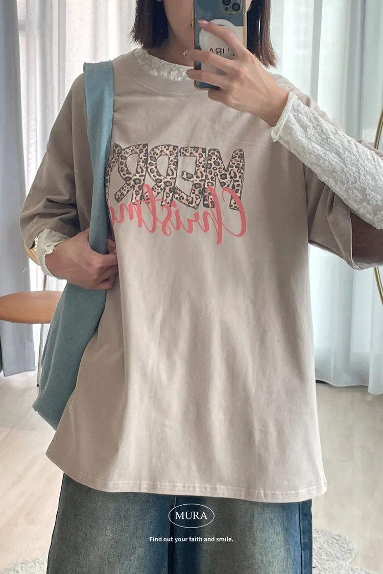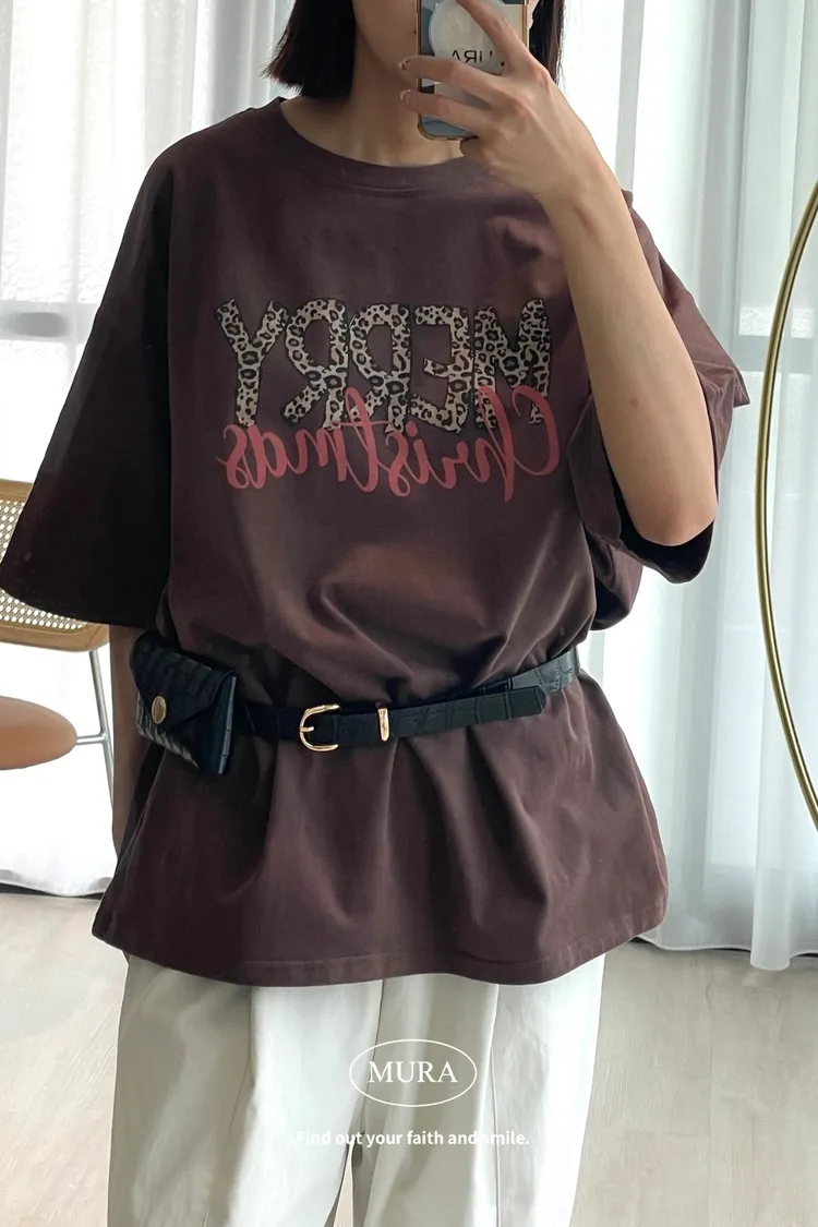 就愛寬鬆自在 豹紋字母磨毛大tee/3colors