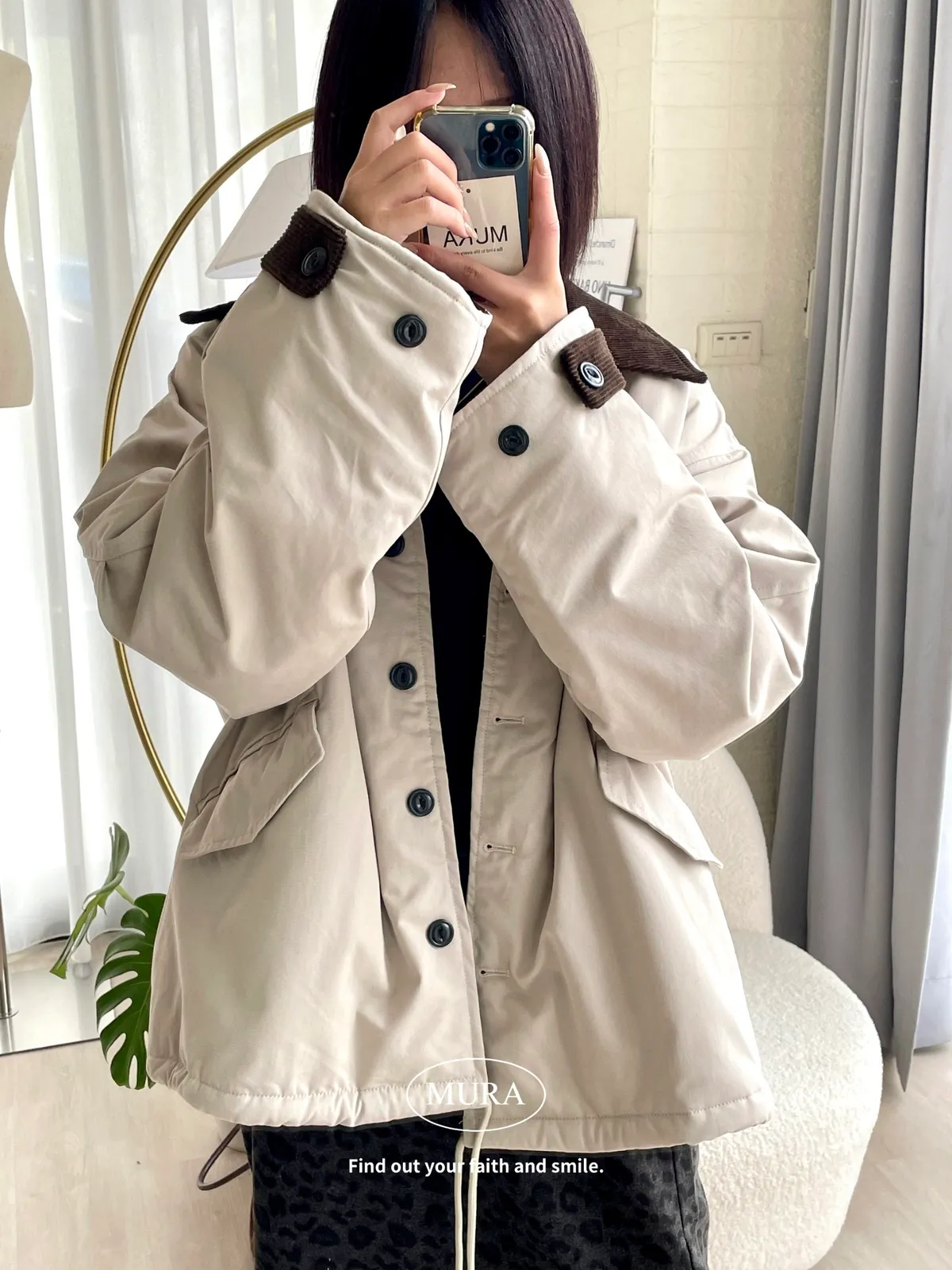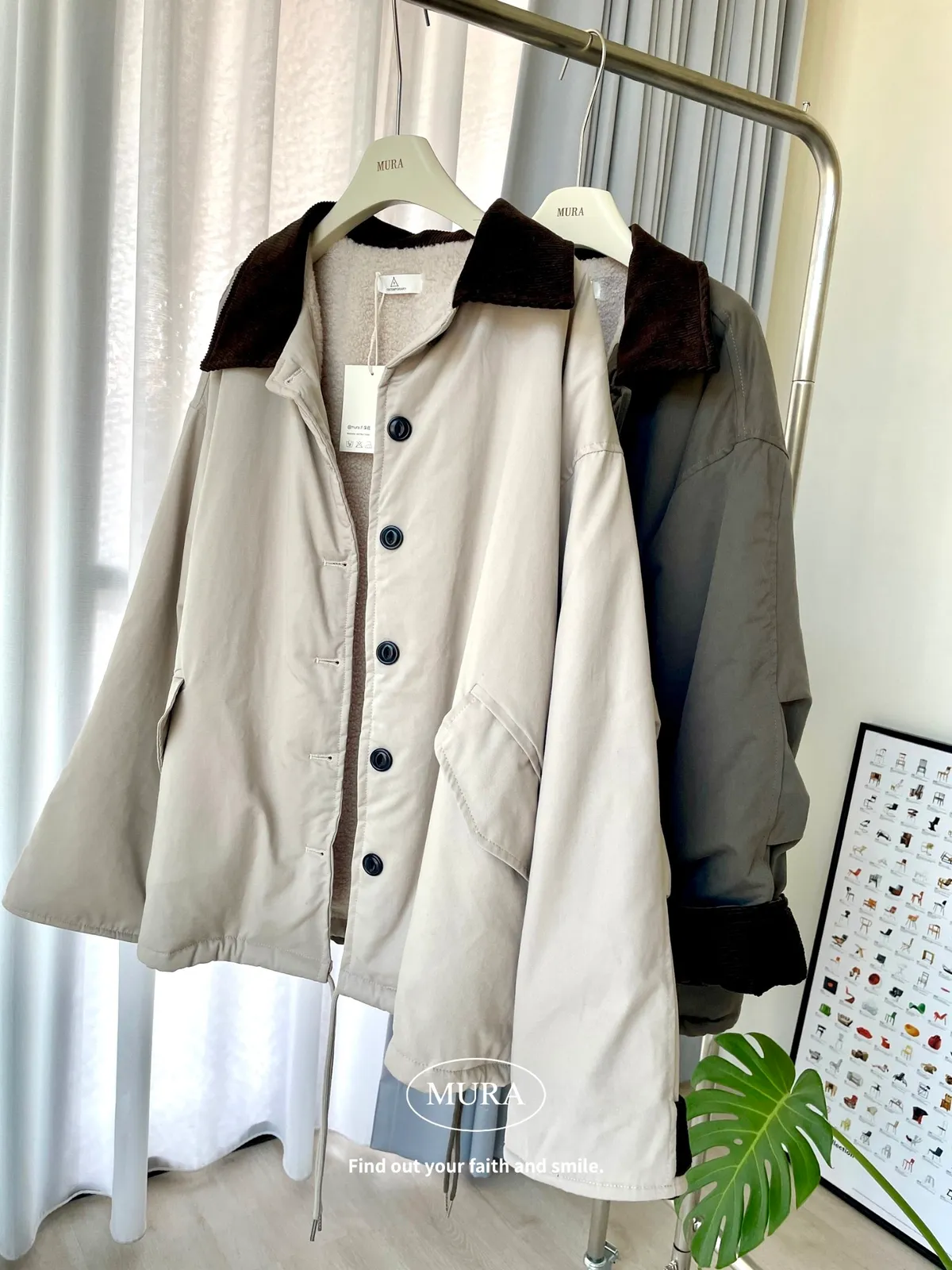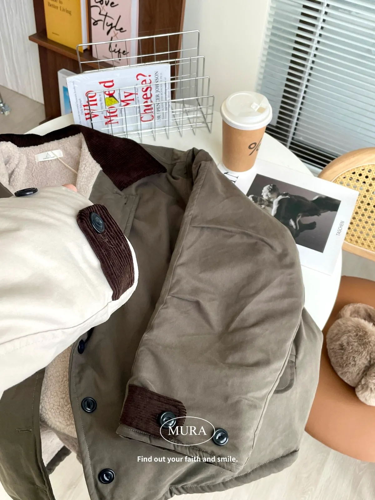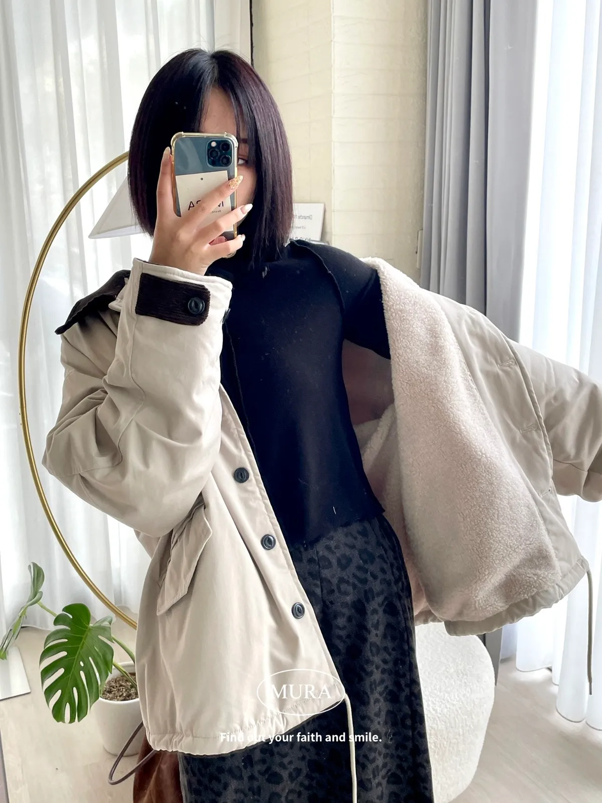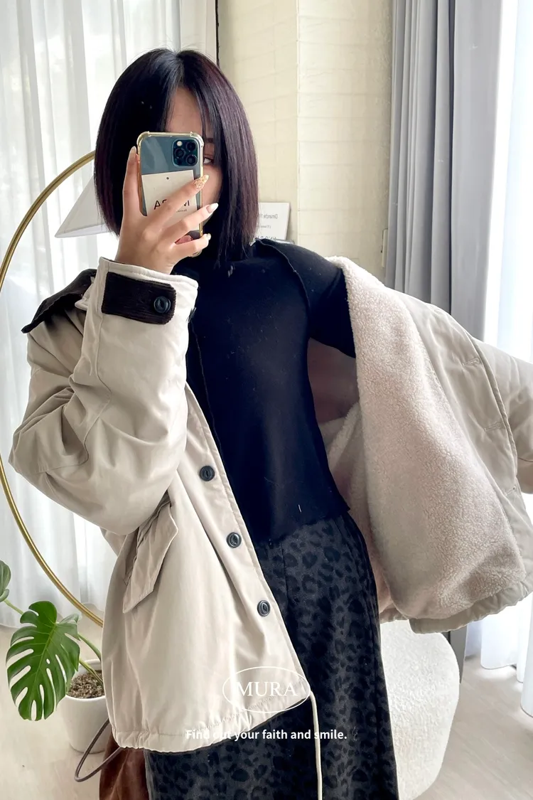 冷空氣也不怕 拼色領羊羔毛外套2colors