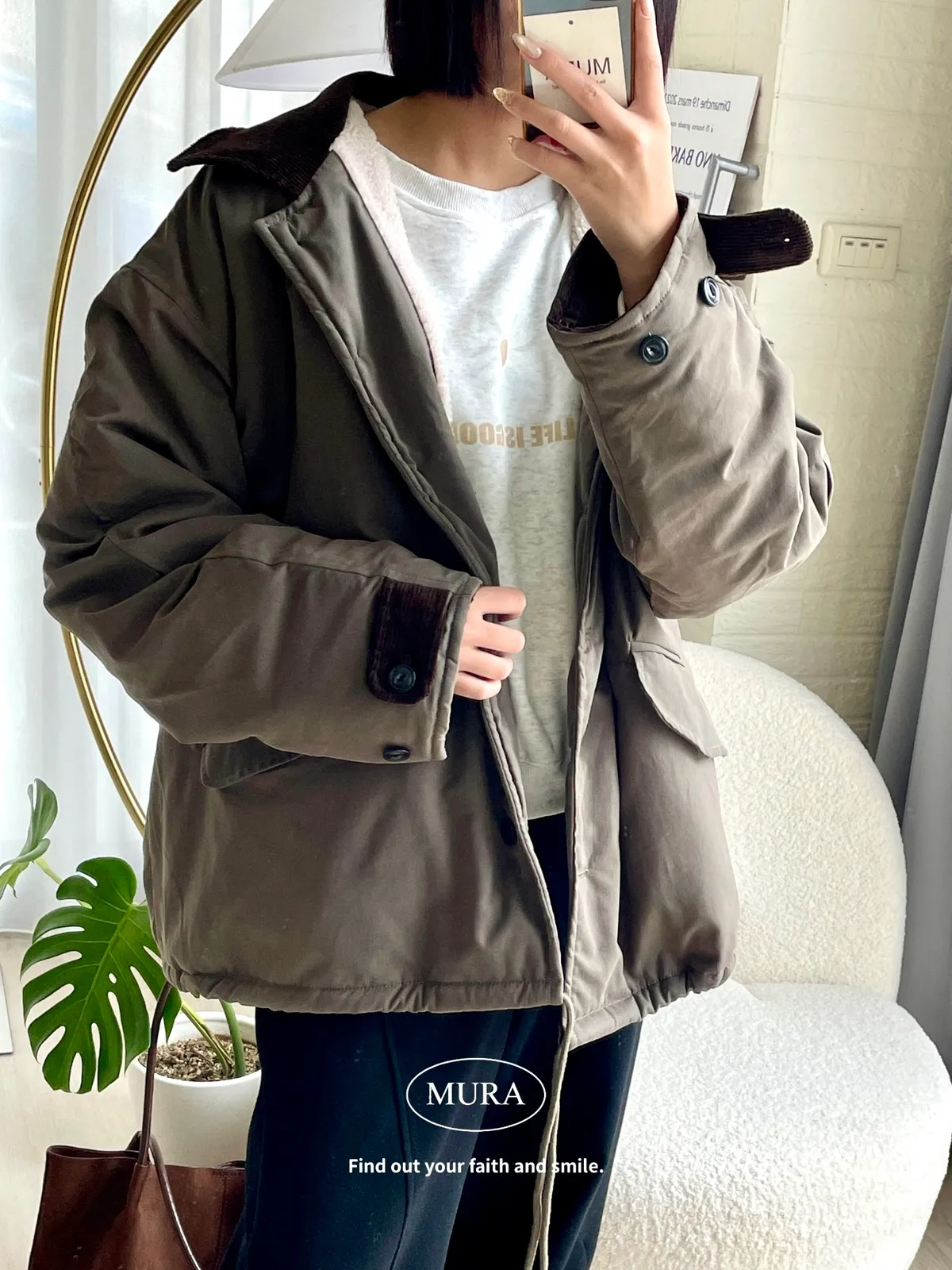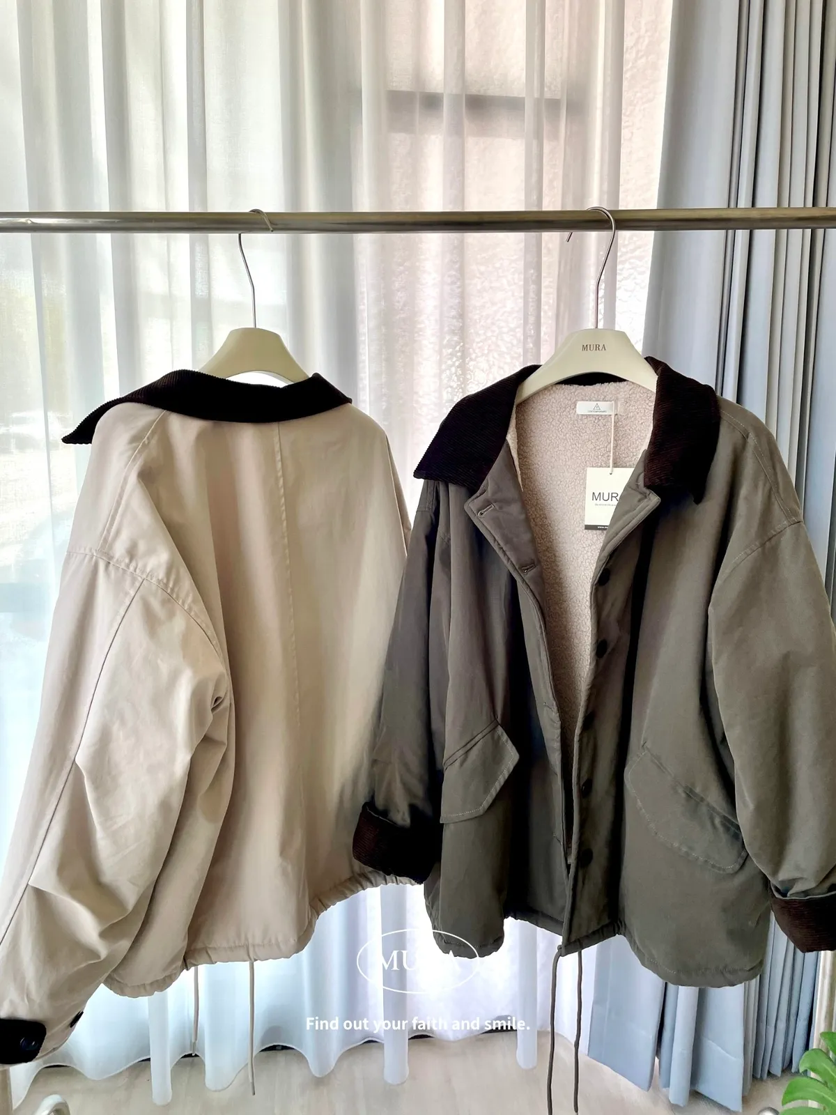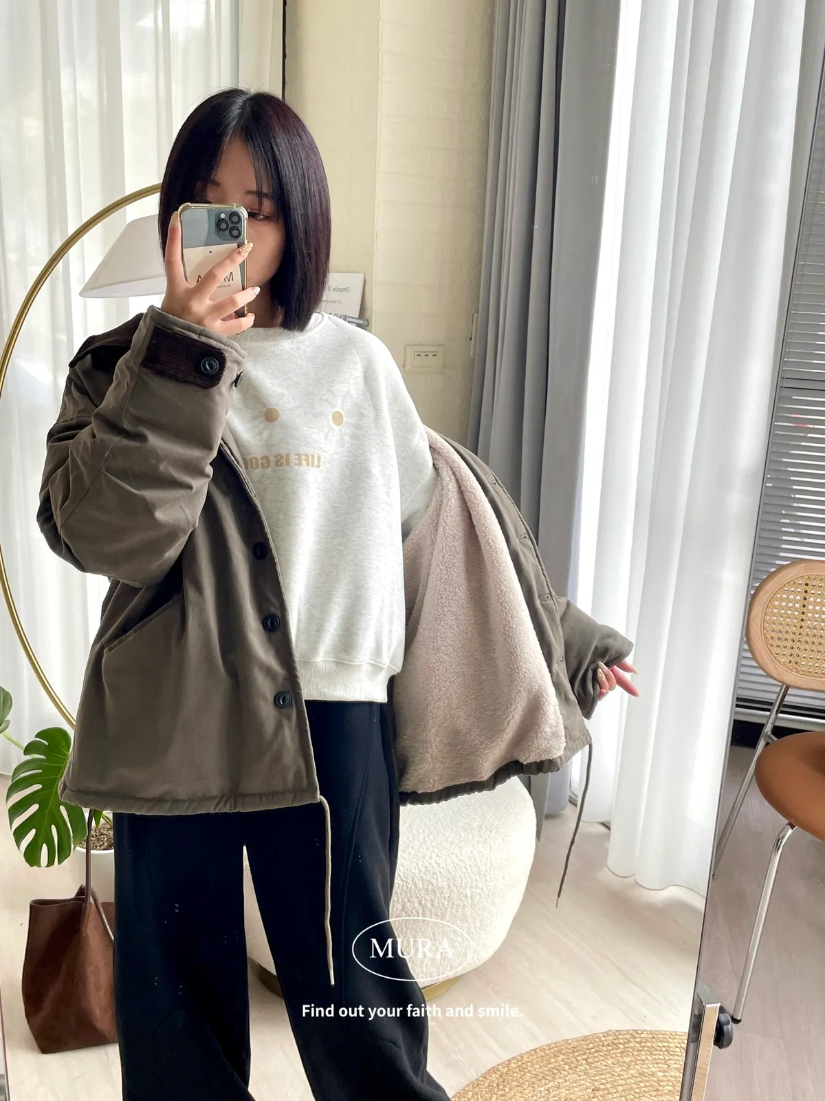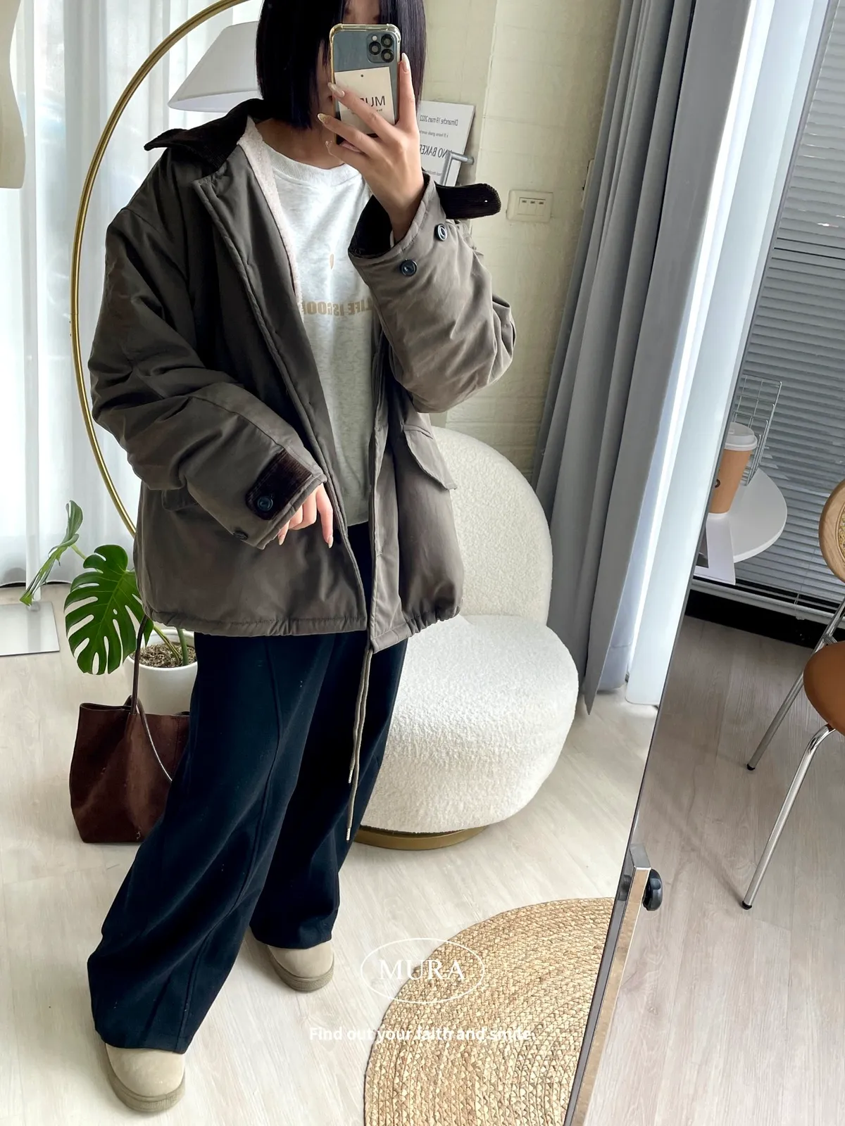 冷空氣也不怕 拼色領羊羔毛外套2colors
