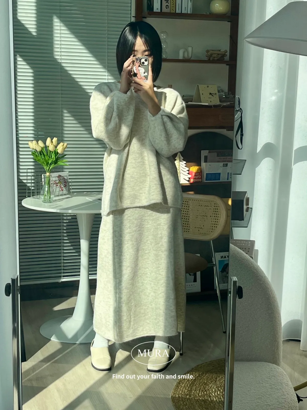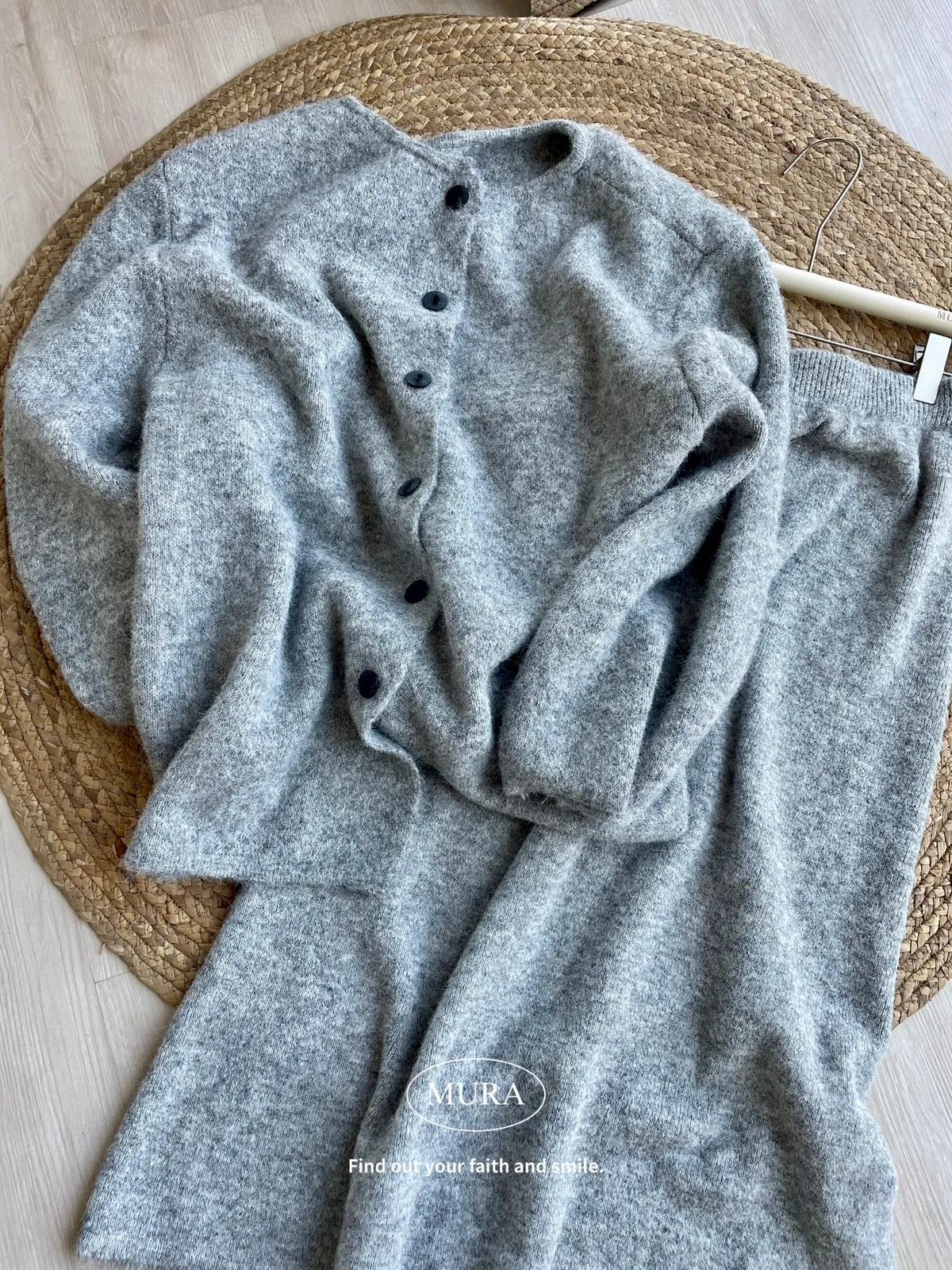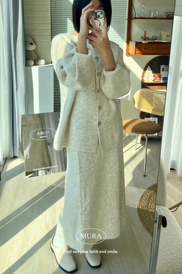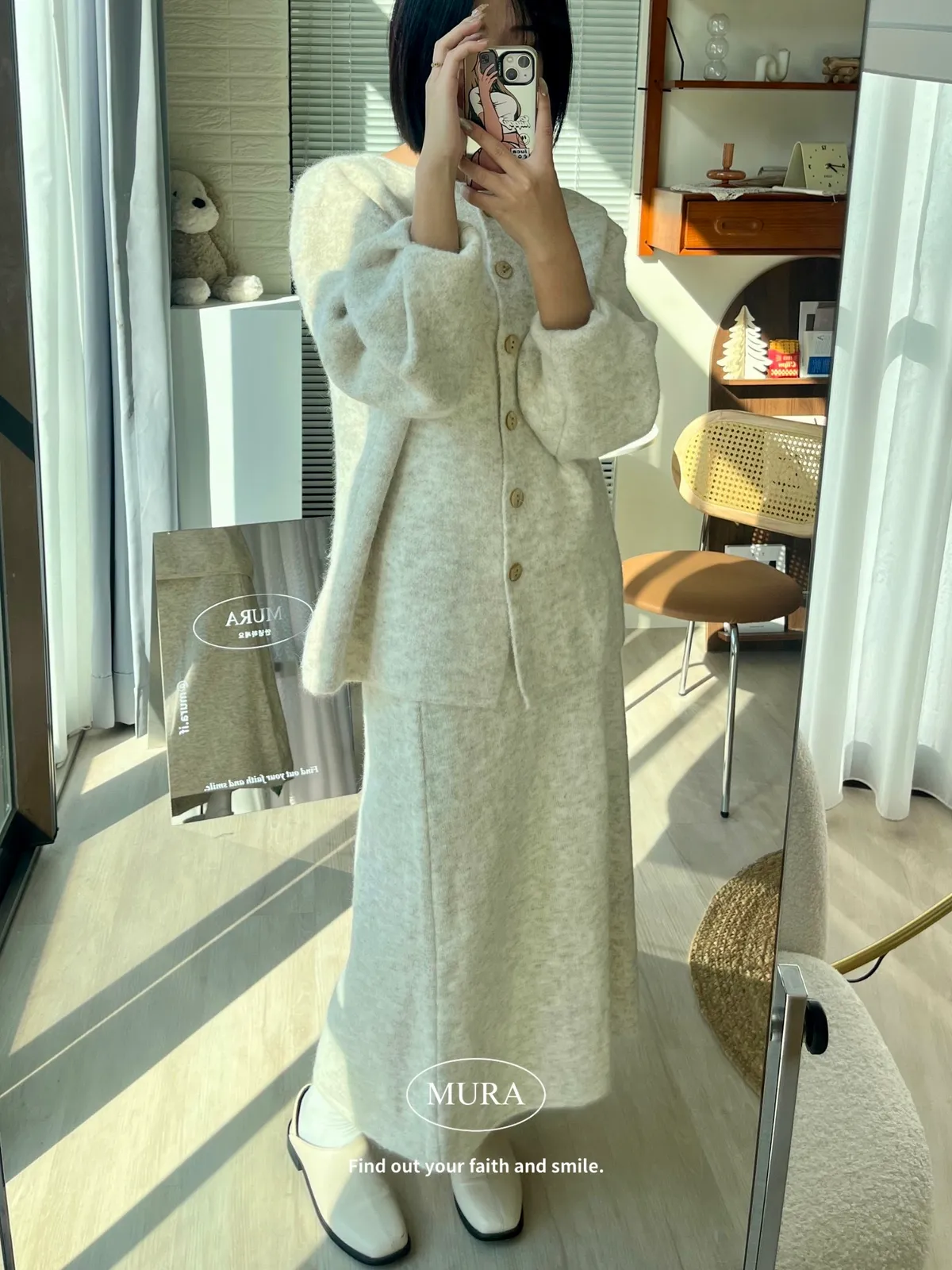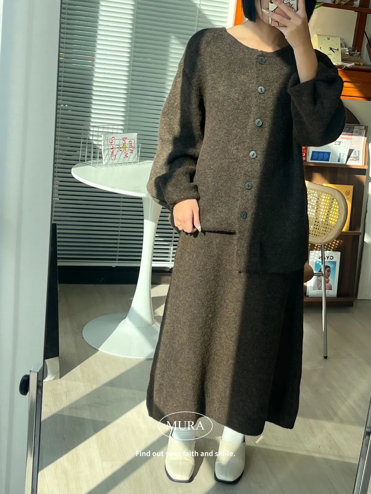 慵懶感爆棚 開釦上衣+半身裙set 3colors