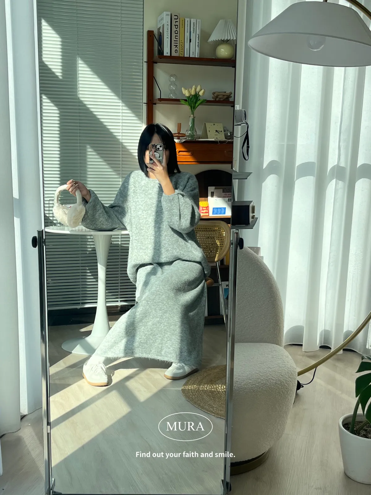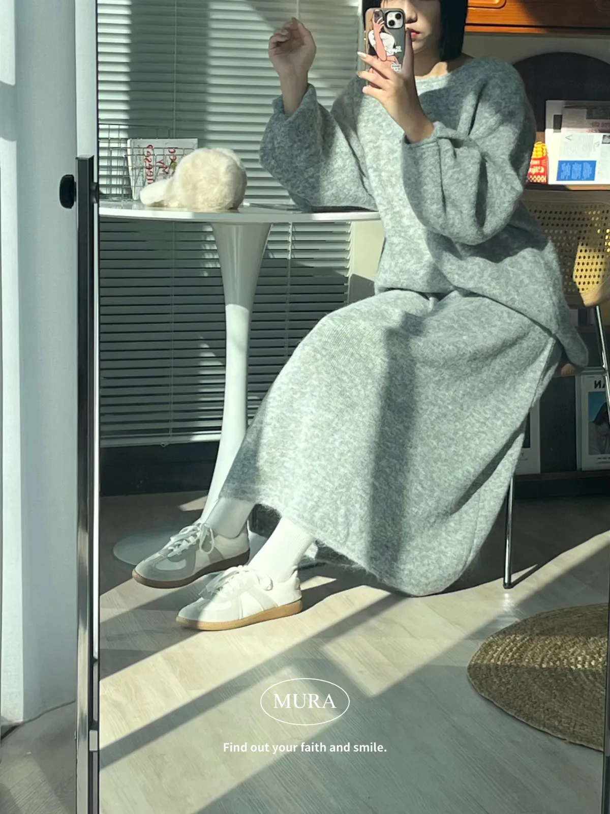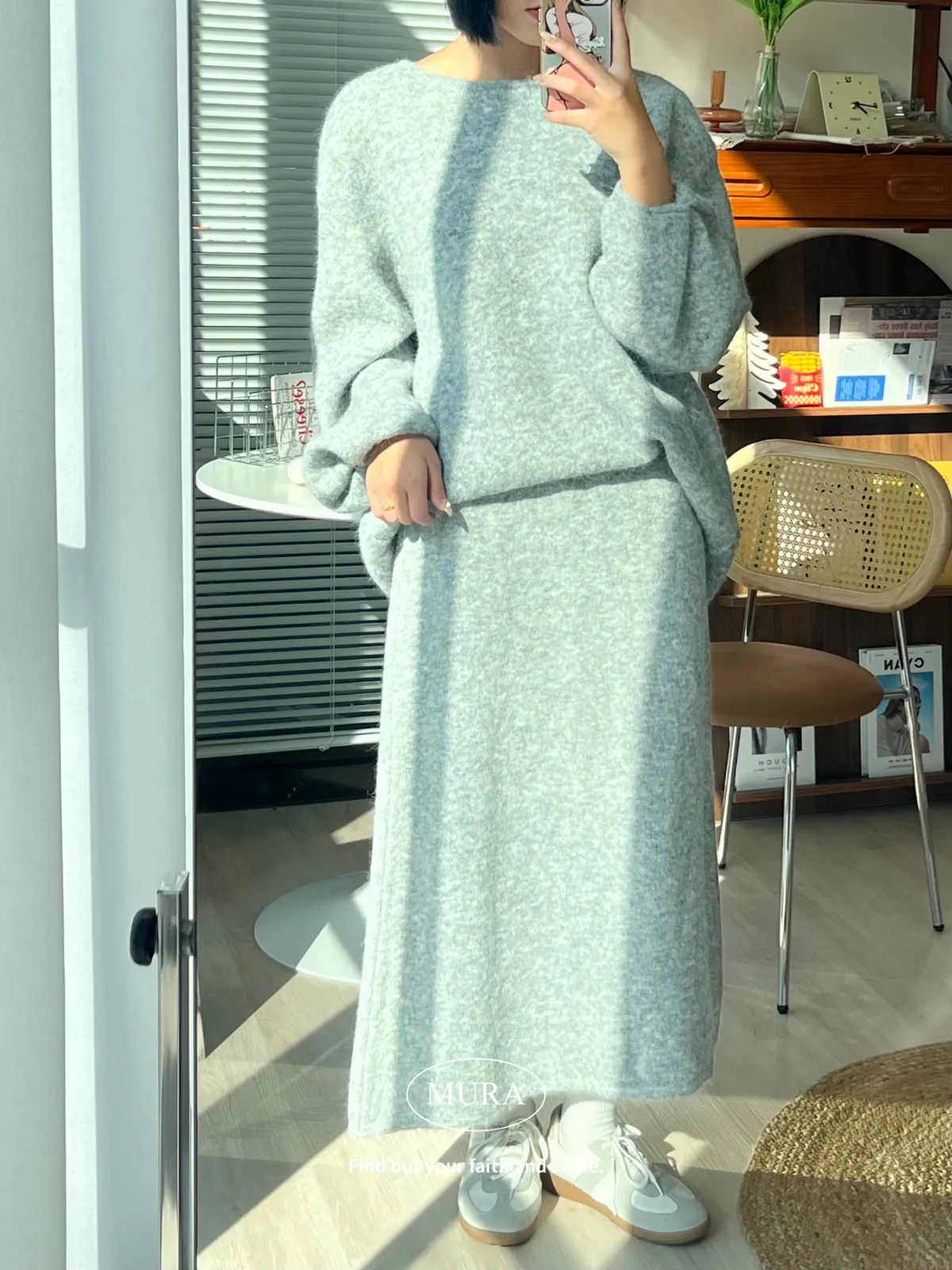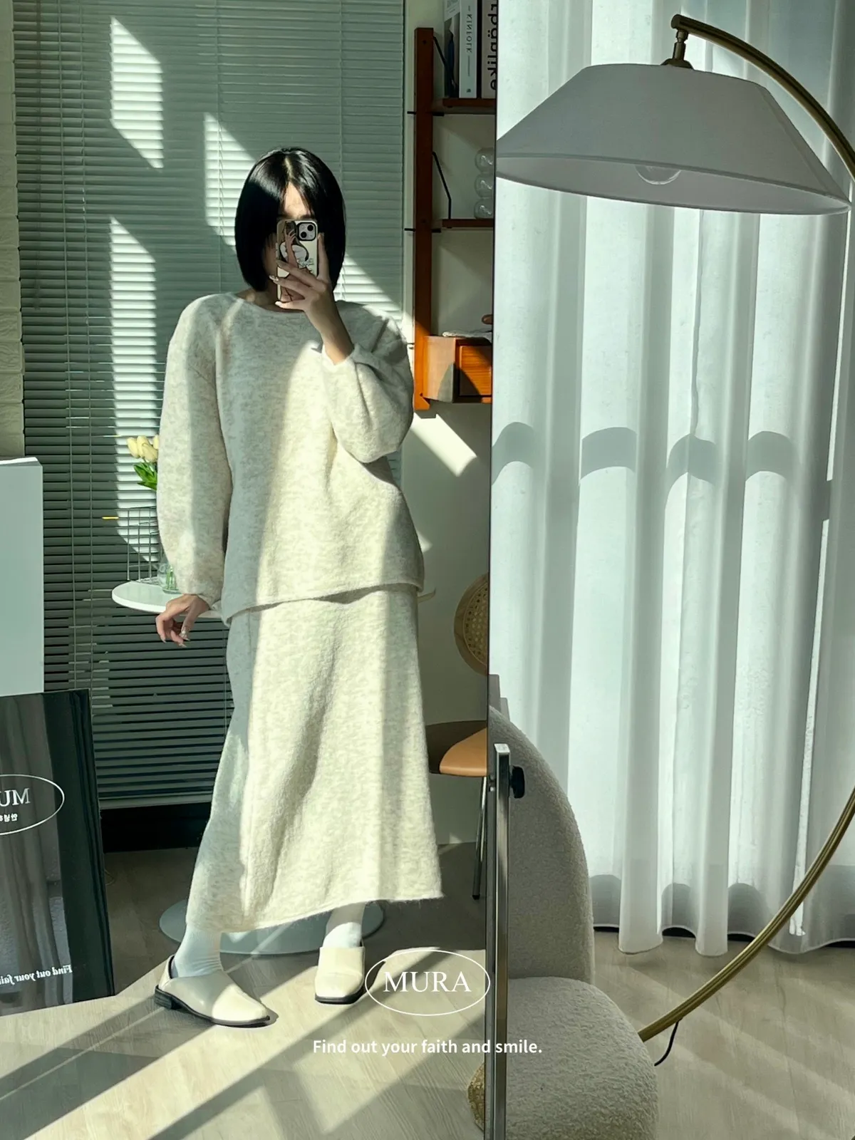 慵懶感爆棚 開釦上衣+半身裙set 3colors