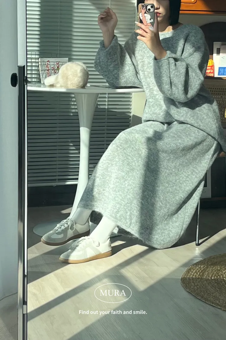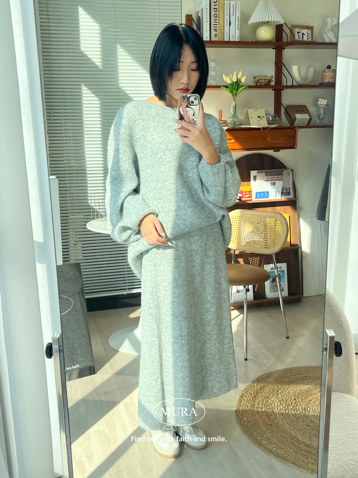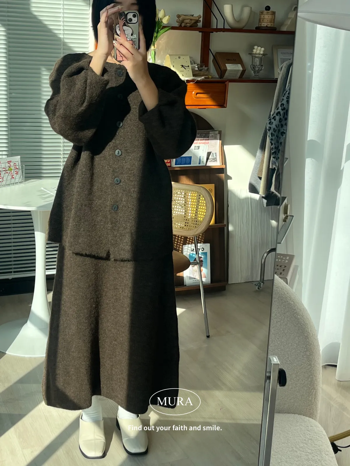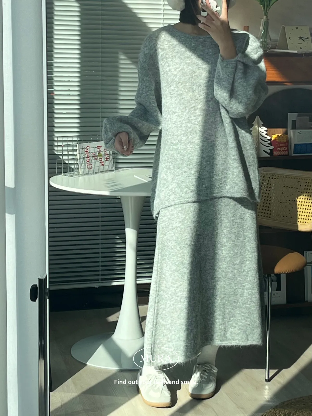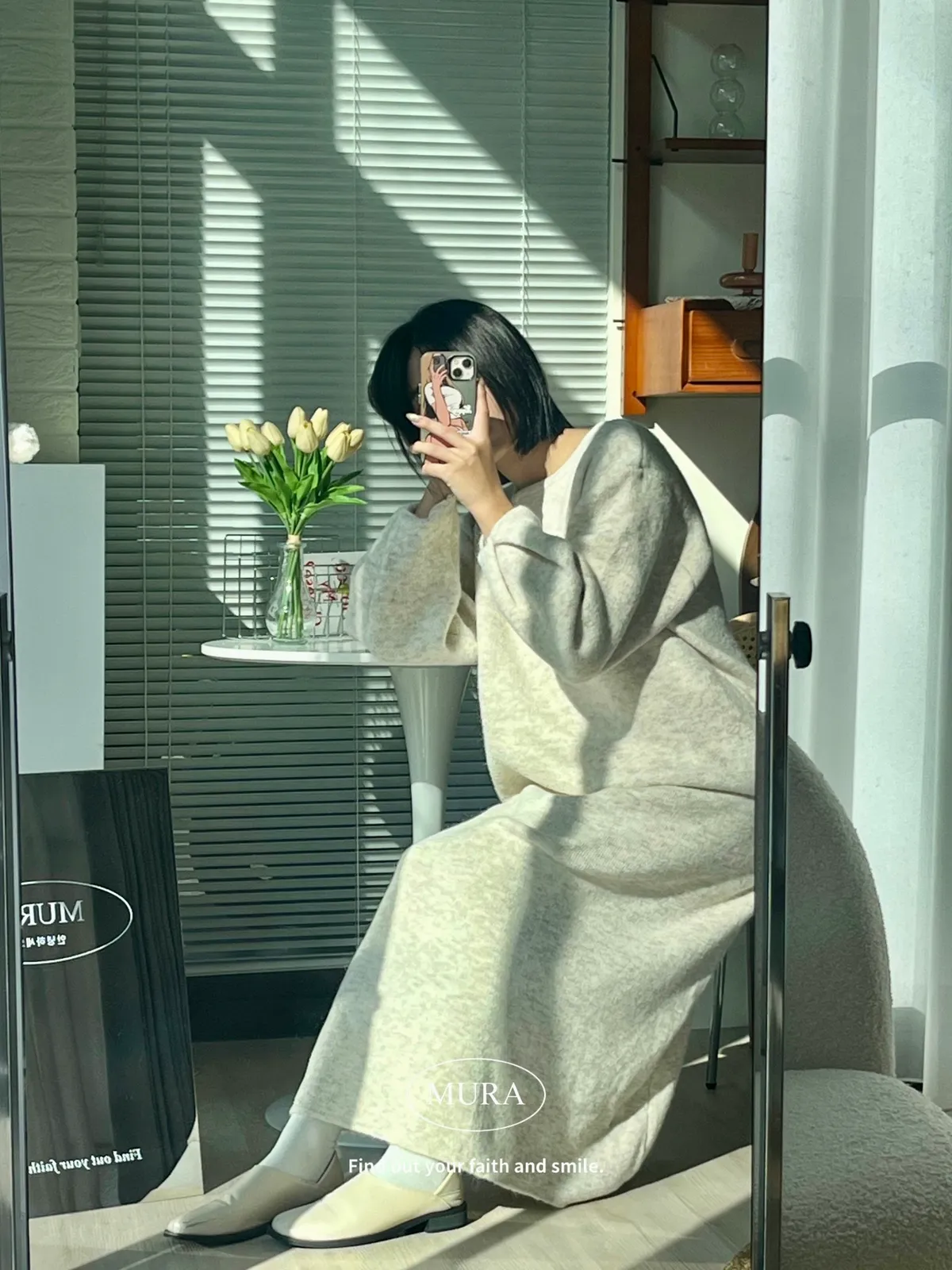 慵懶感爆棚 開釦上衣+半身裙set 3colors