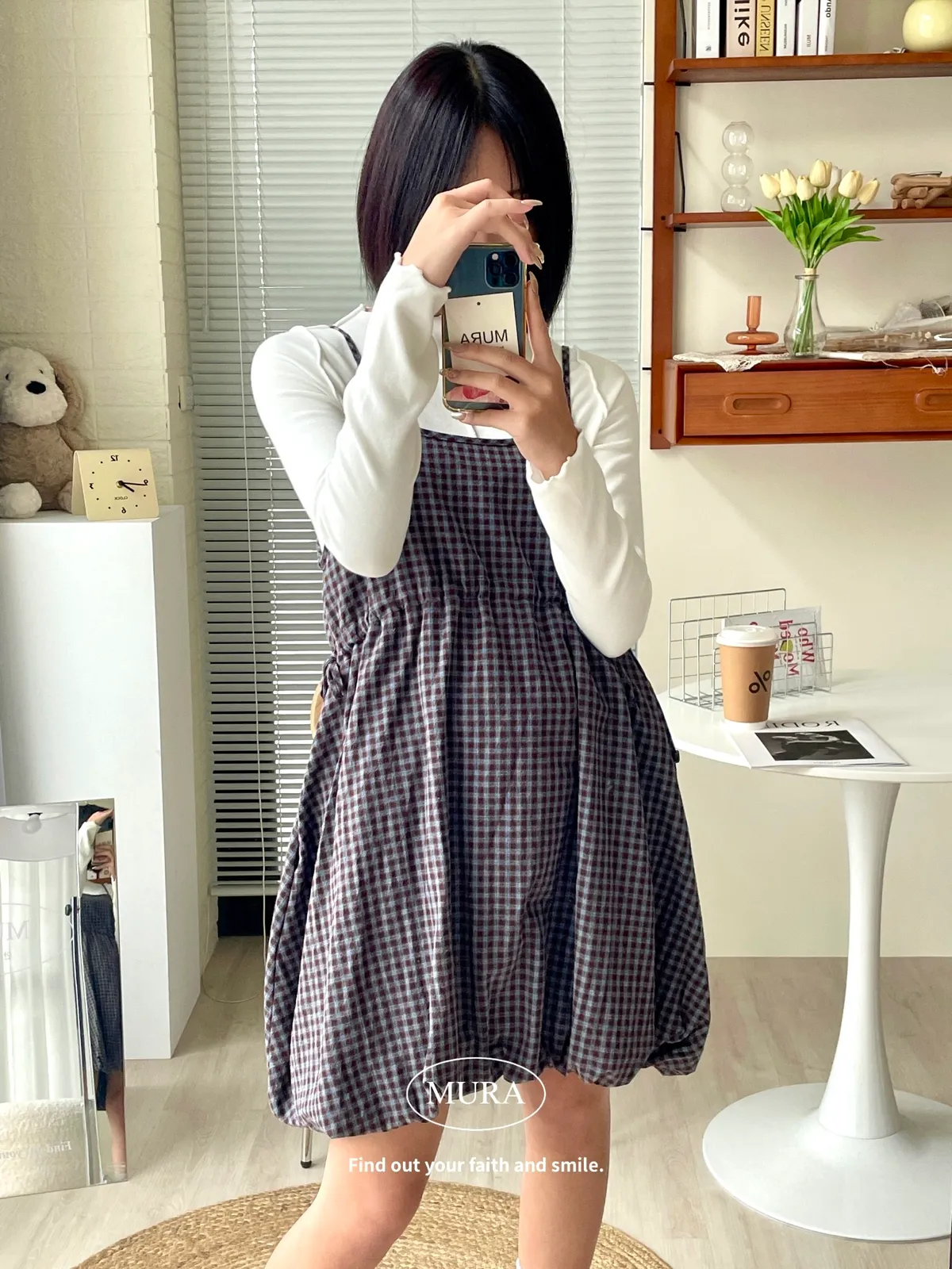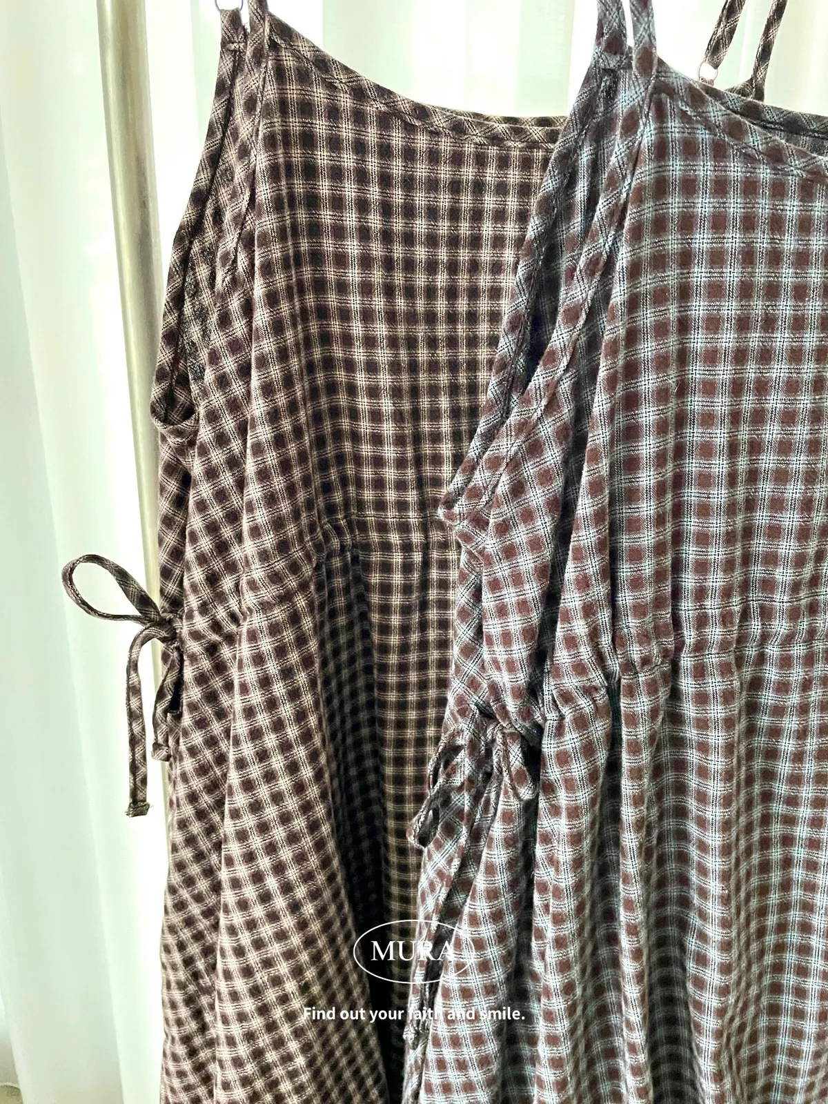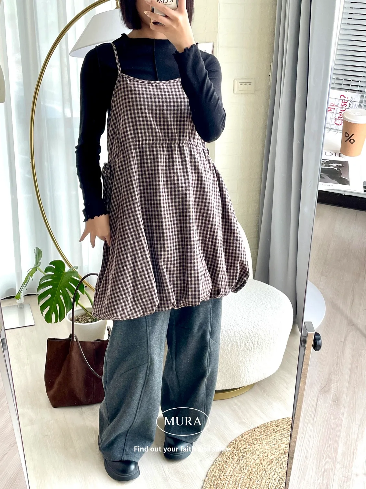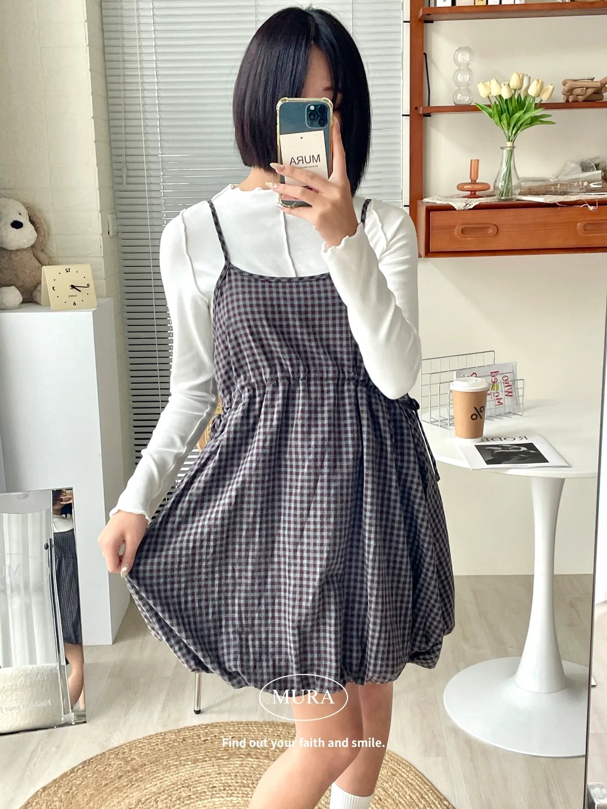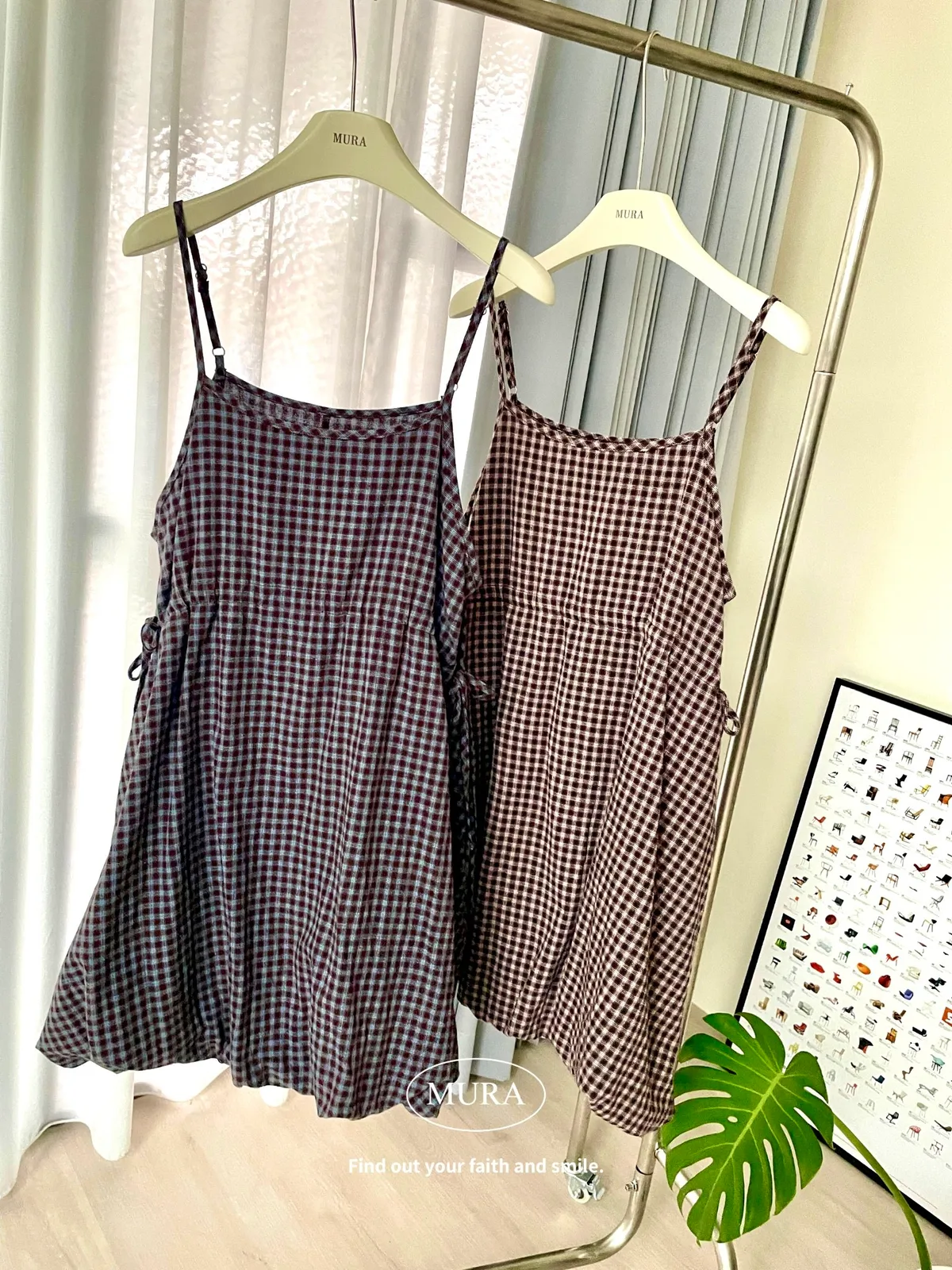 日系氛圍 細格紋花苞吊帶短洋2colors