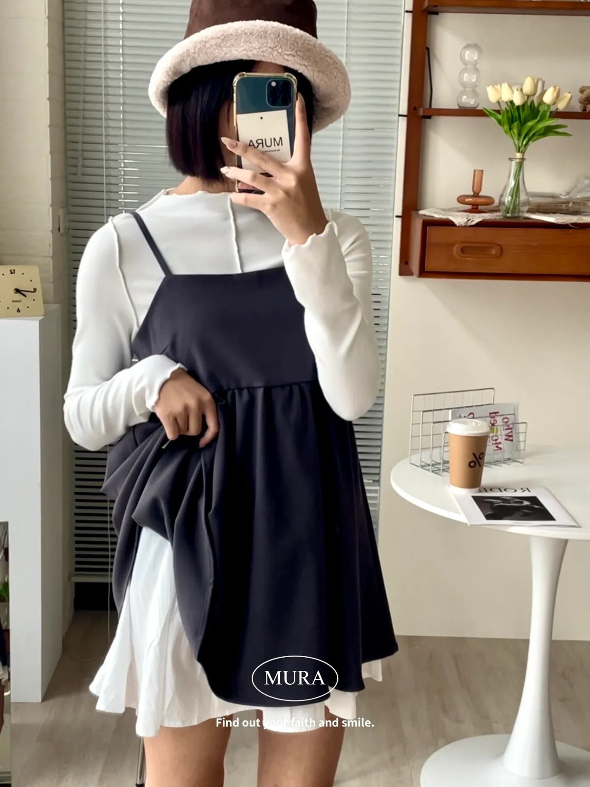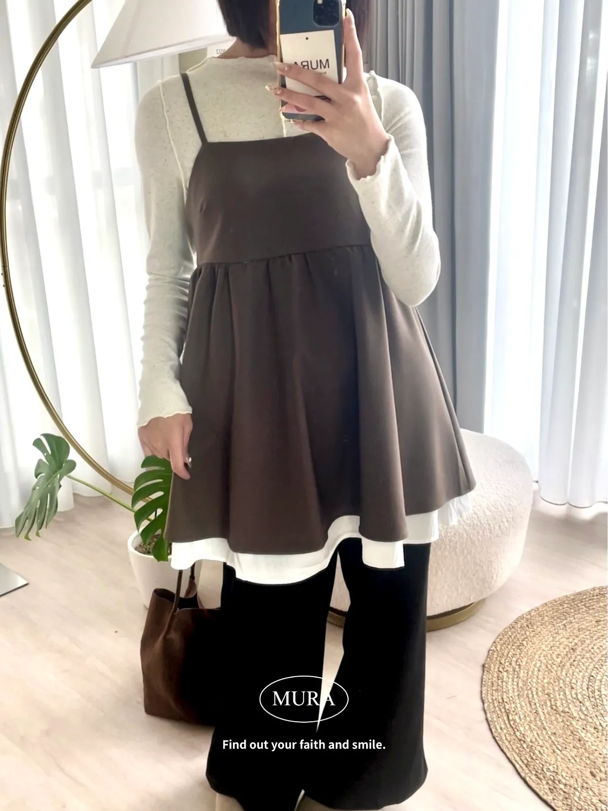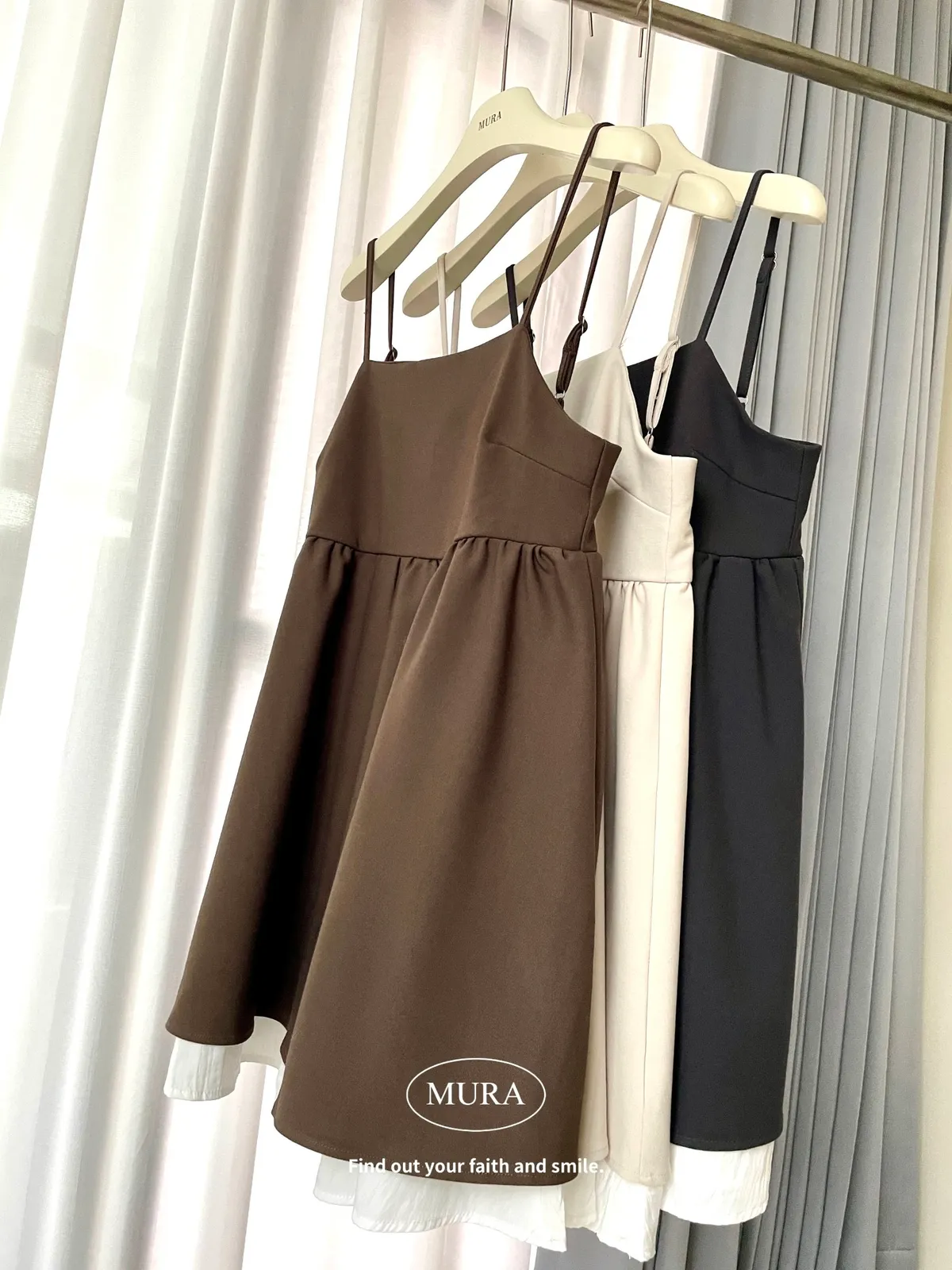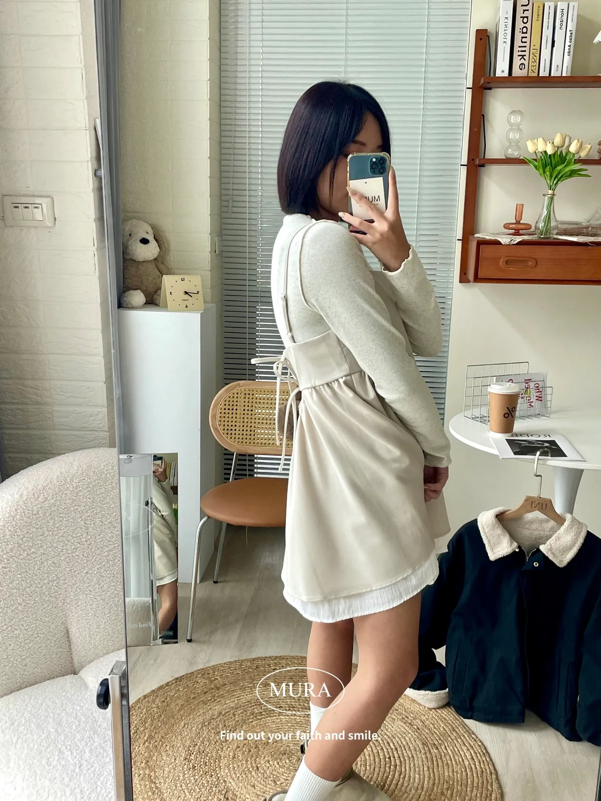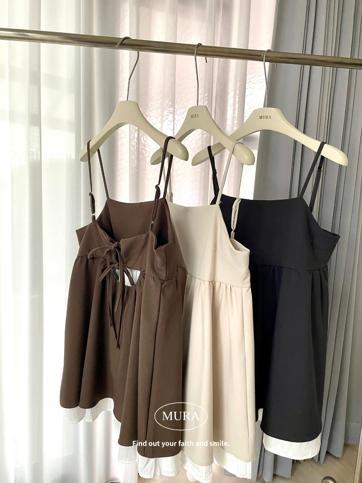 鹽系女孩 後綁帶吊帶層次短洋3colors