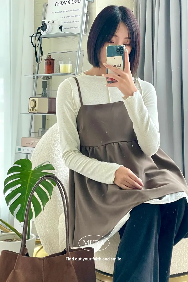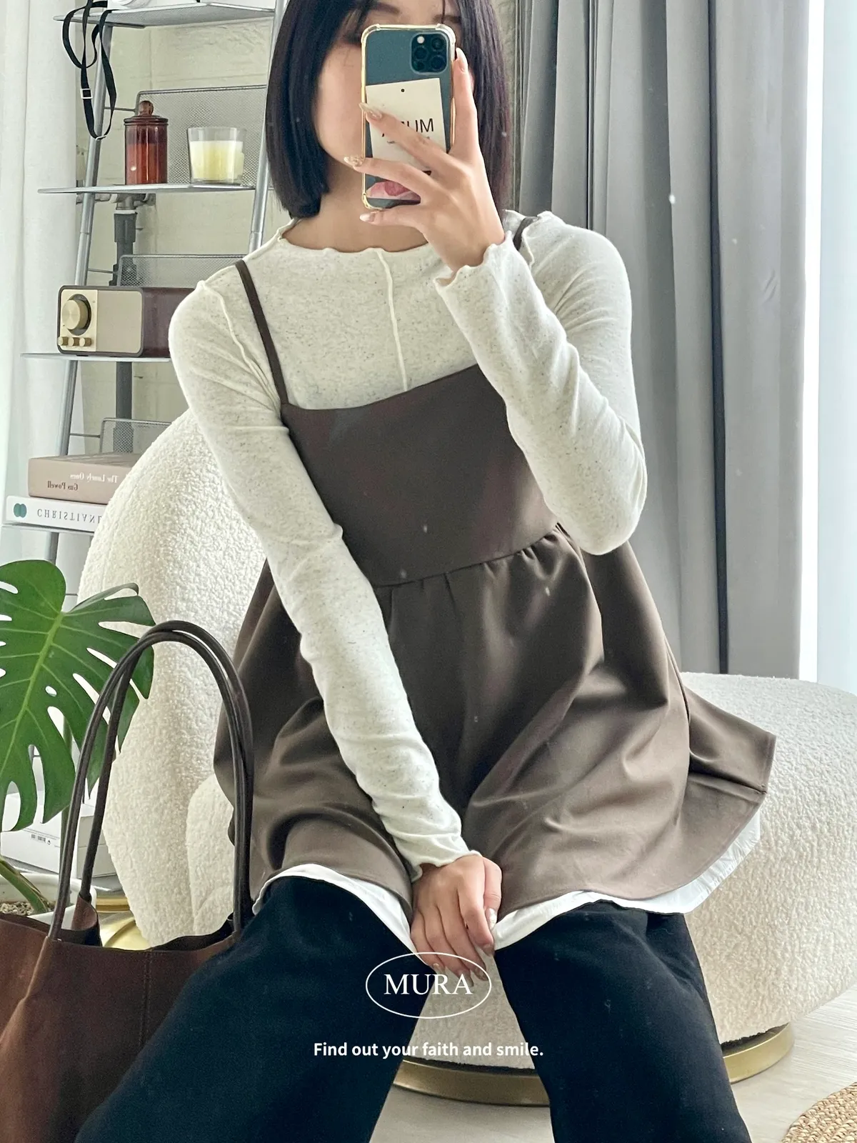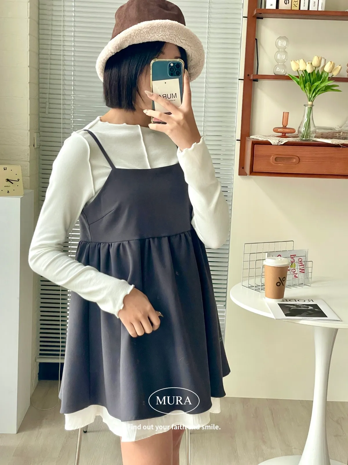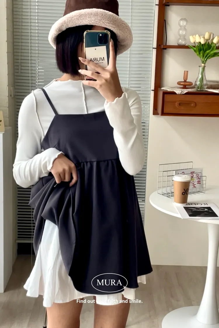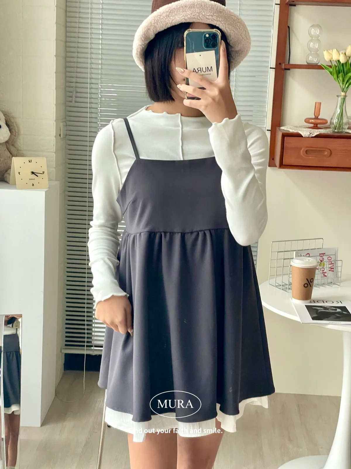 鹽系女孩 後綁帶吊帶層次短洋3colors