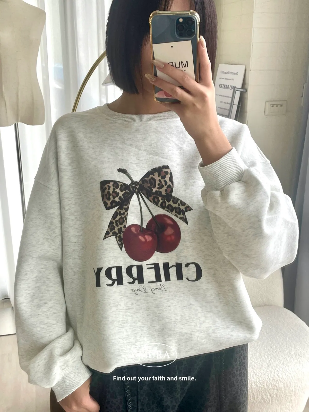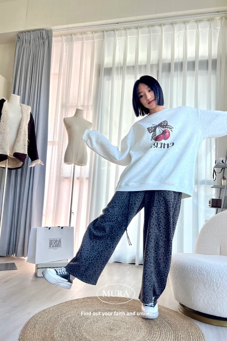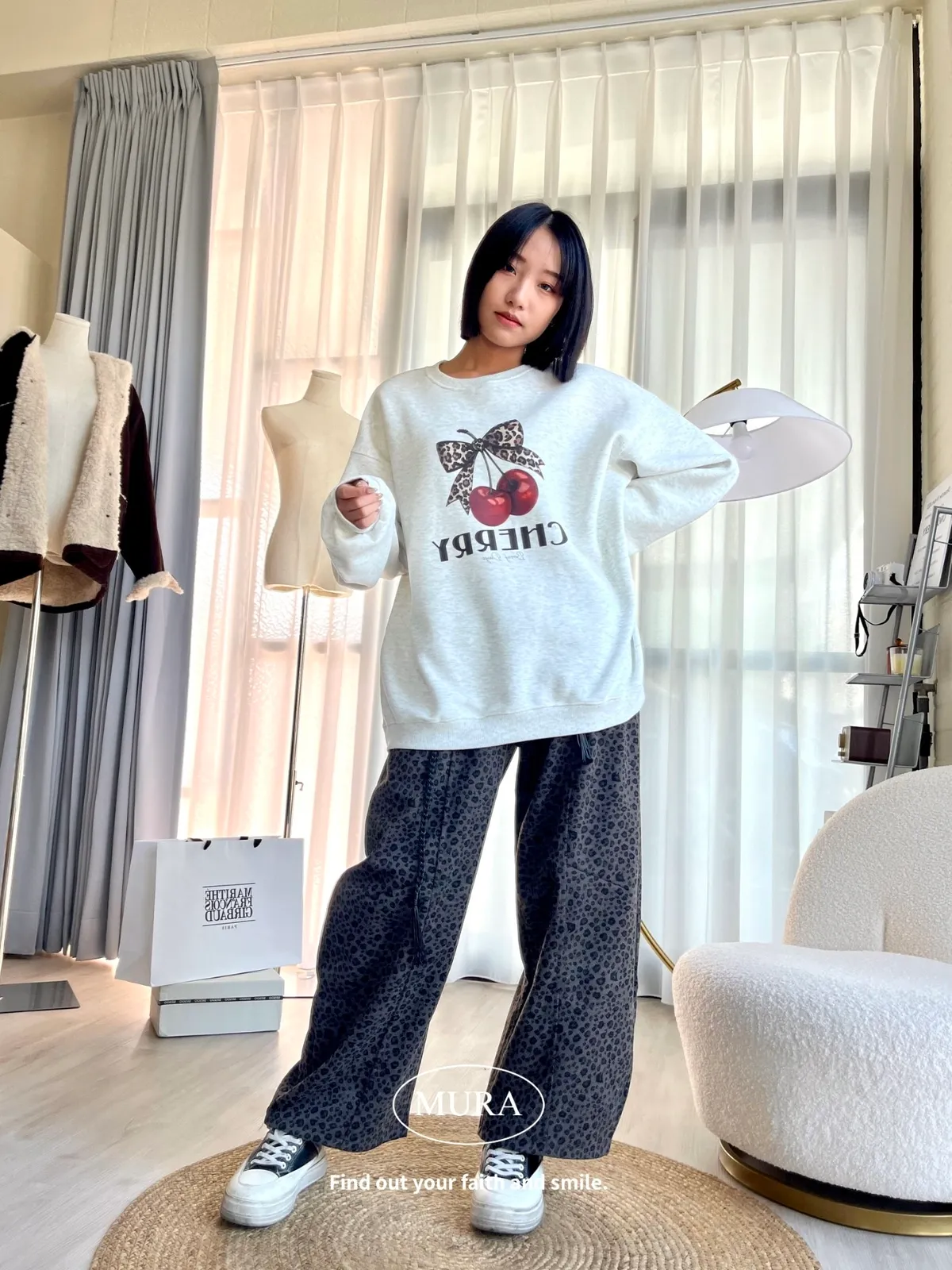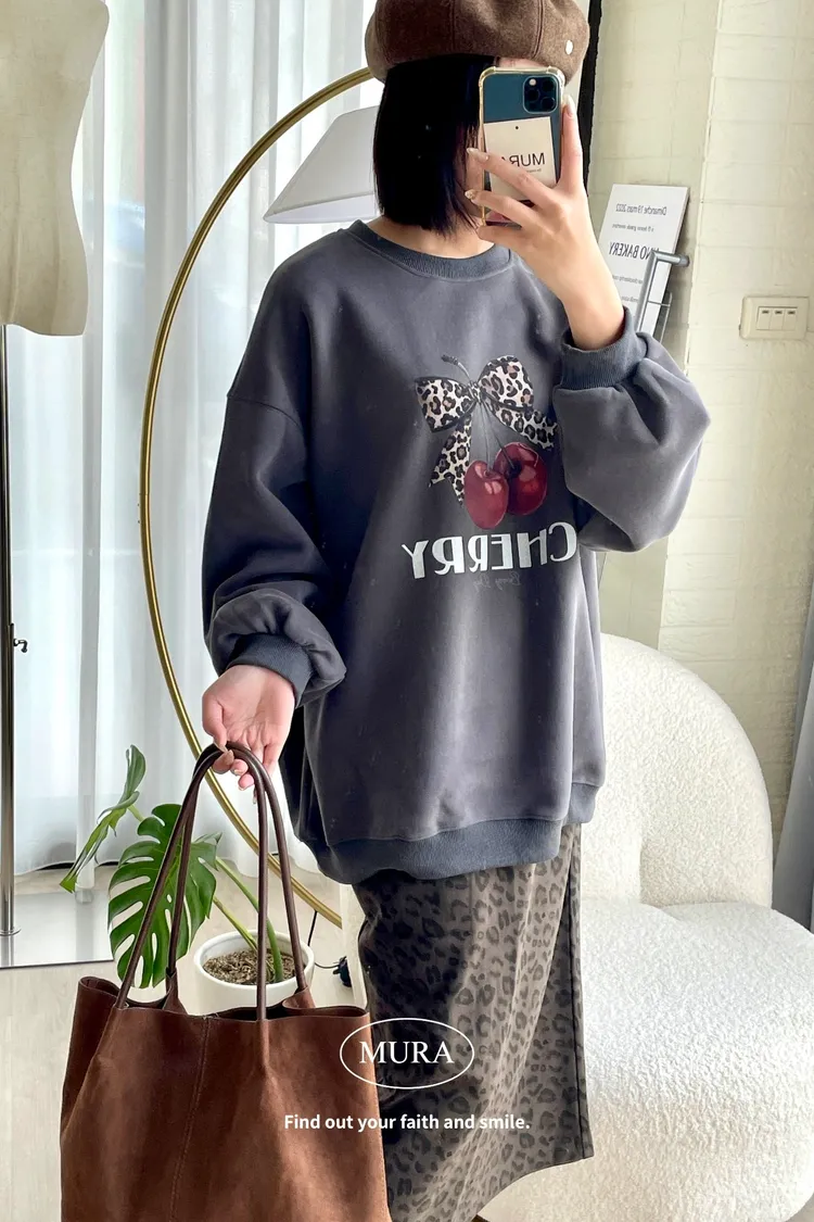 寬鬆自在 Cherry櫻桃豹紋衛衣2colors