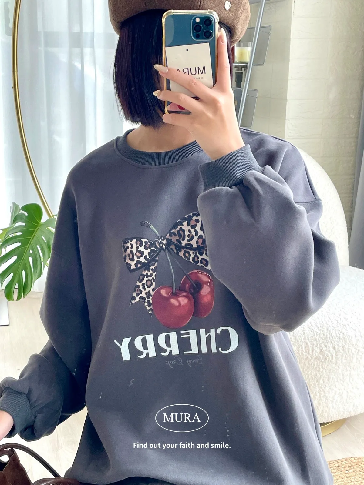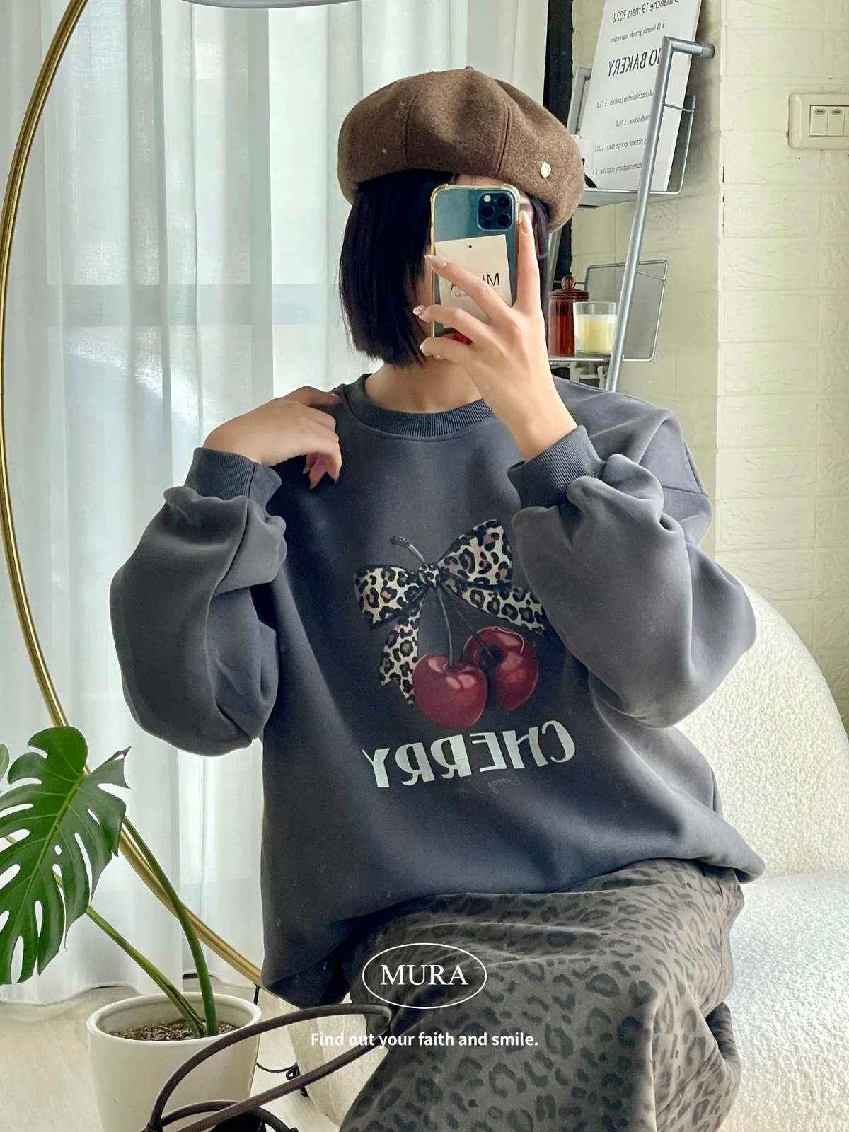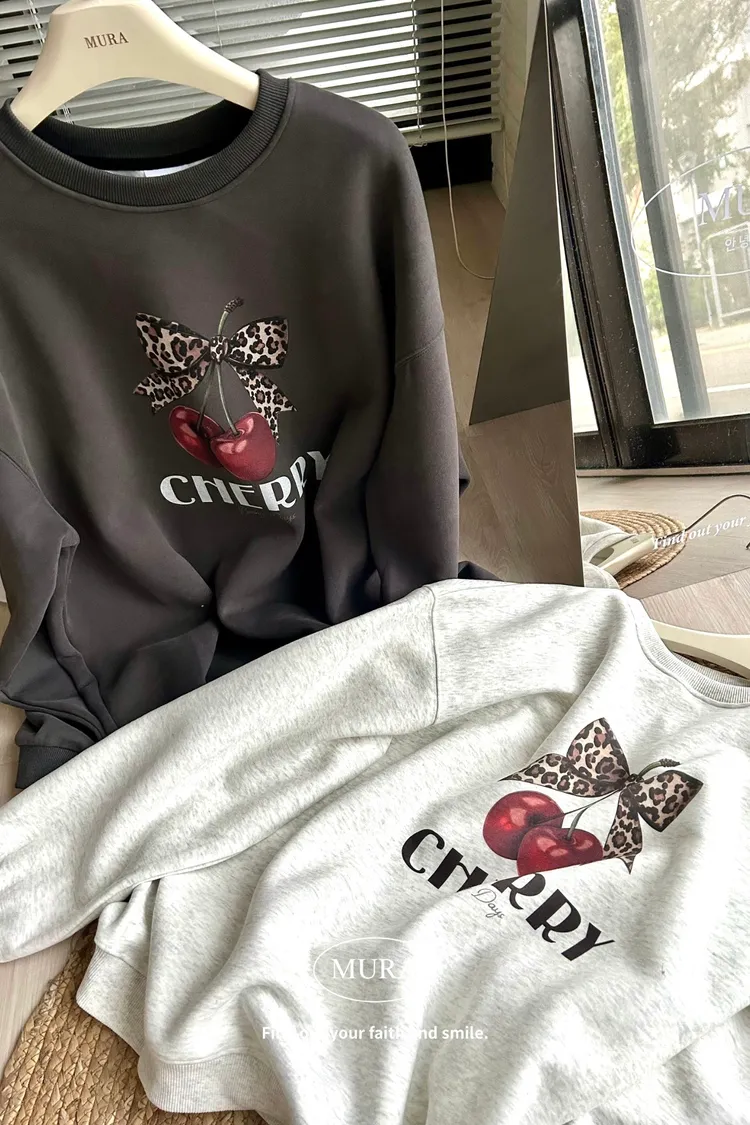 寬鬆自在 Cherry櫻桃豹紋衛衣2colors