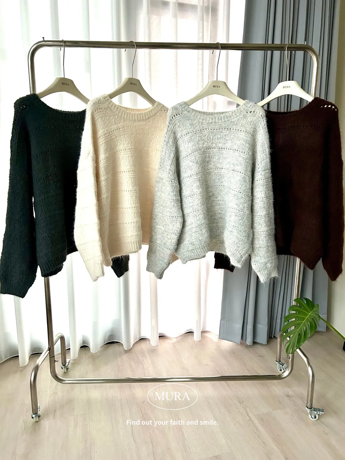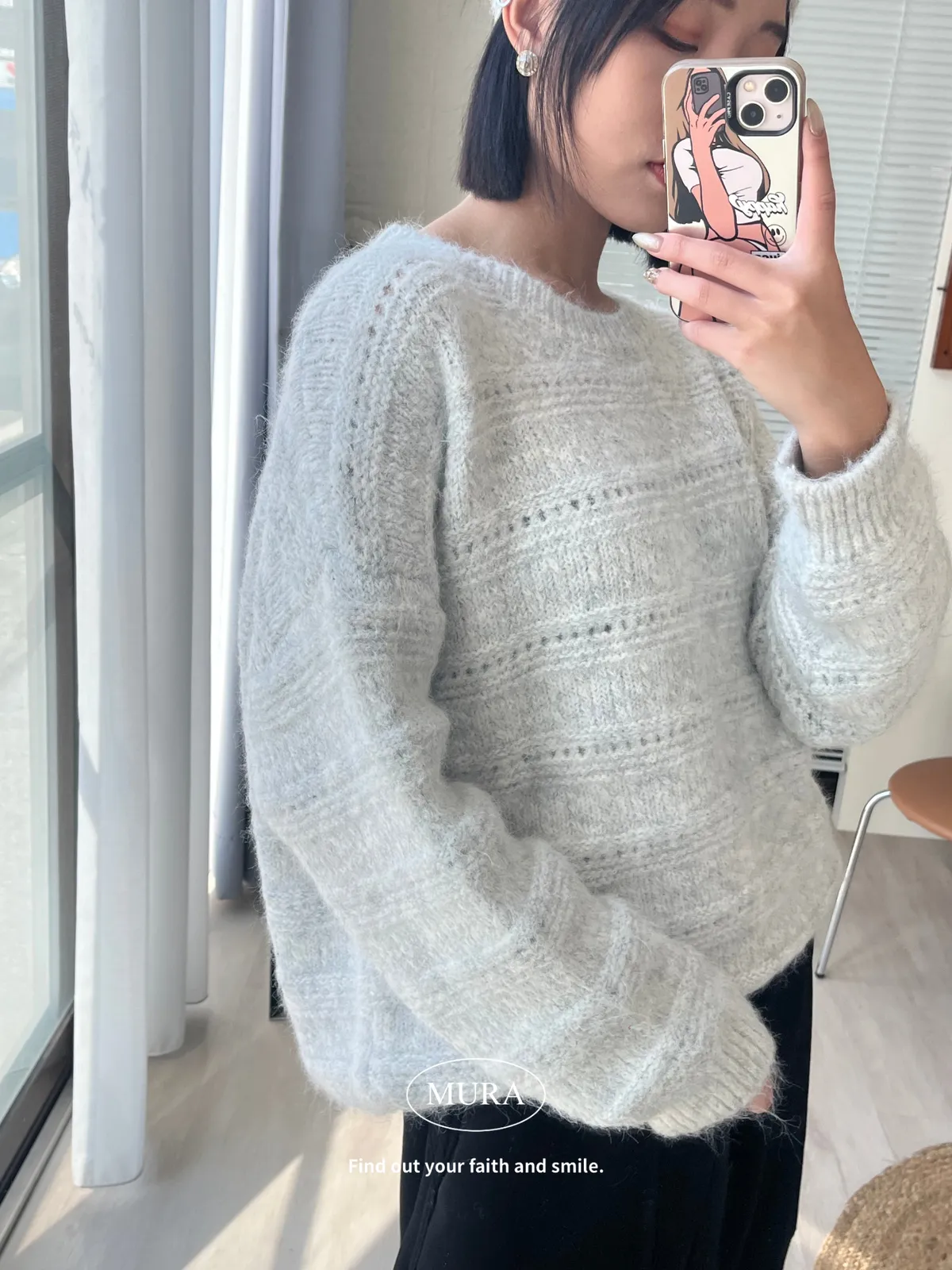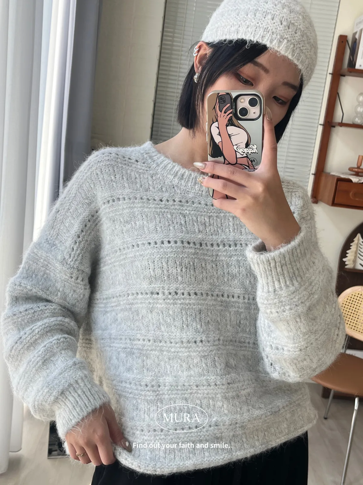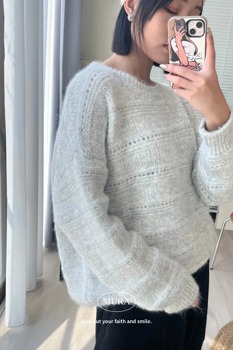 不費力就時髦 虛線條紋毛衣set(附毛帽)4colors