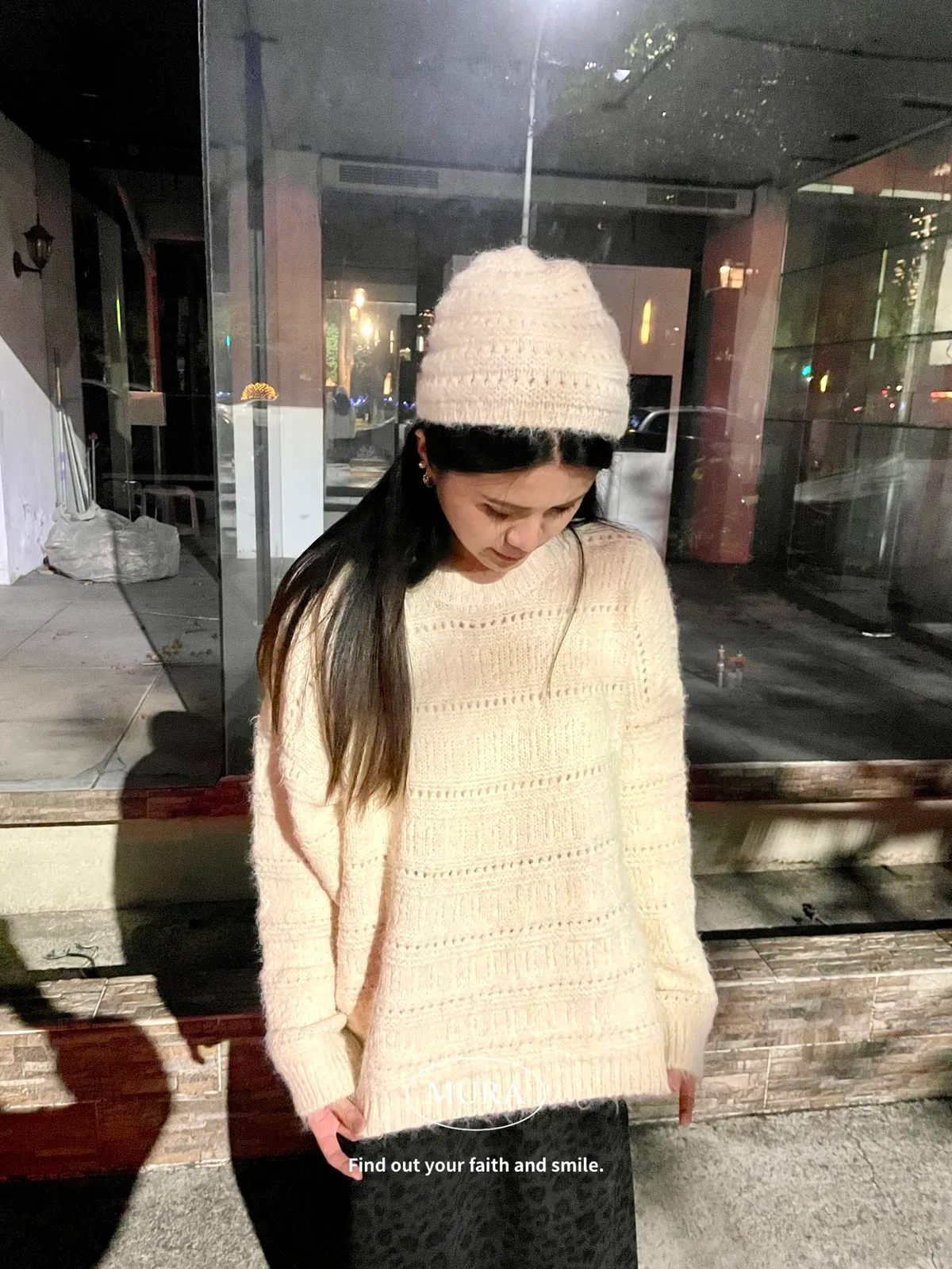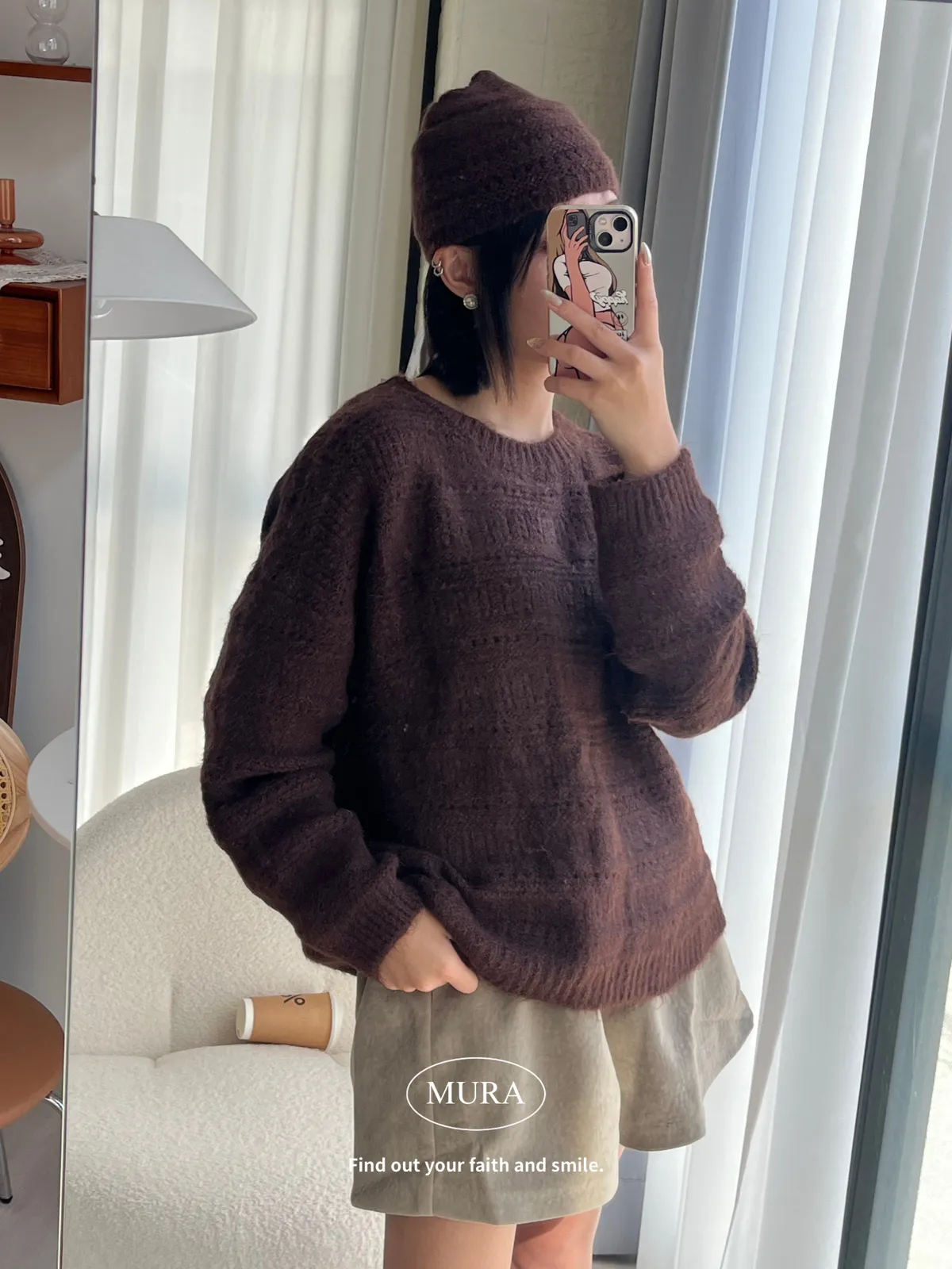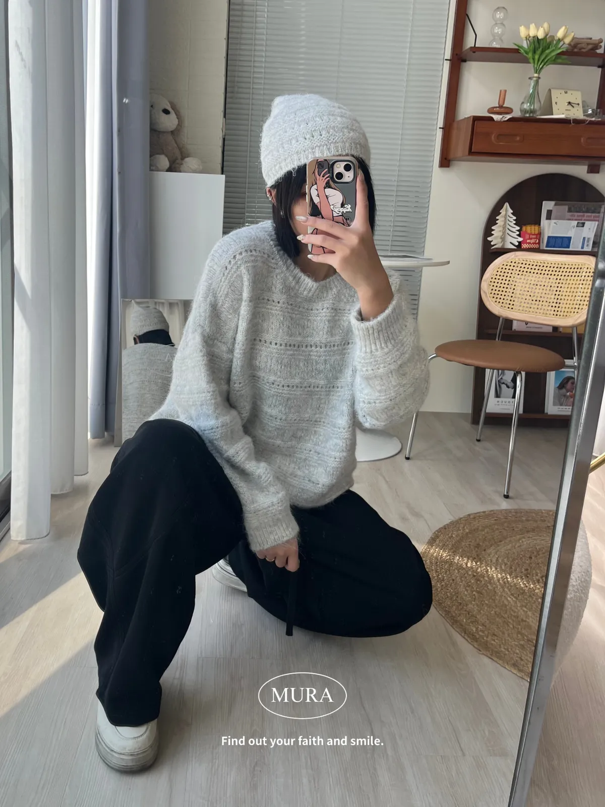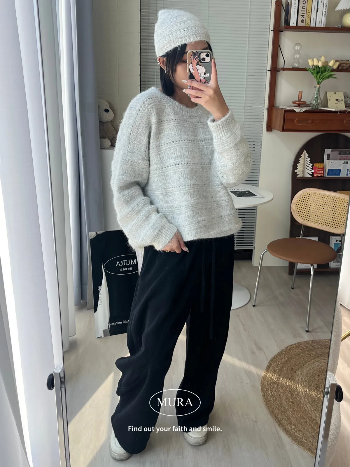 不費力就時髦 虛線條紋毛衣set(附毛帽)4colors