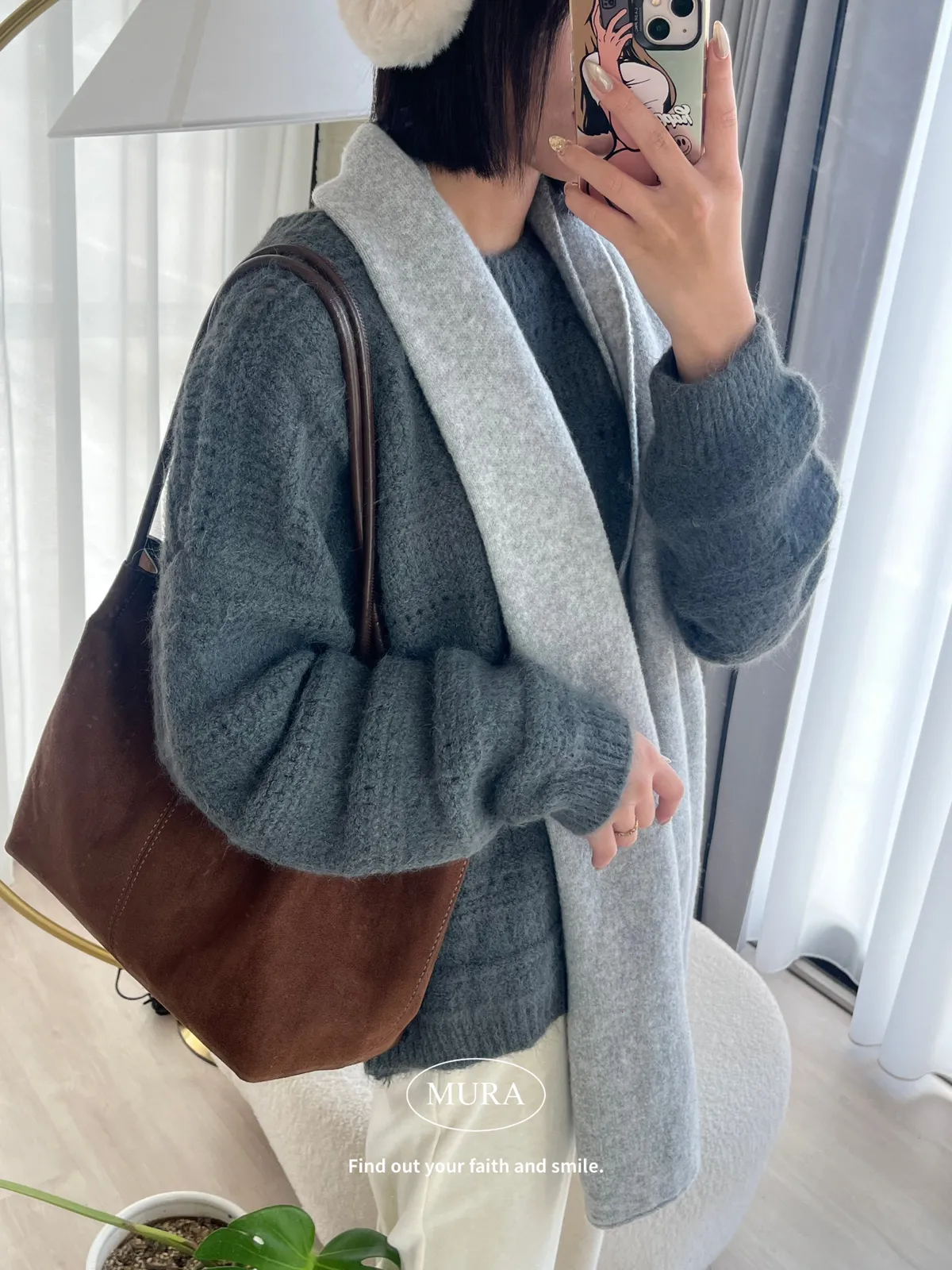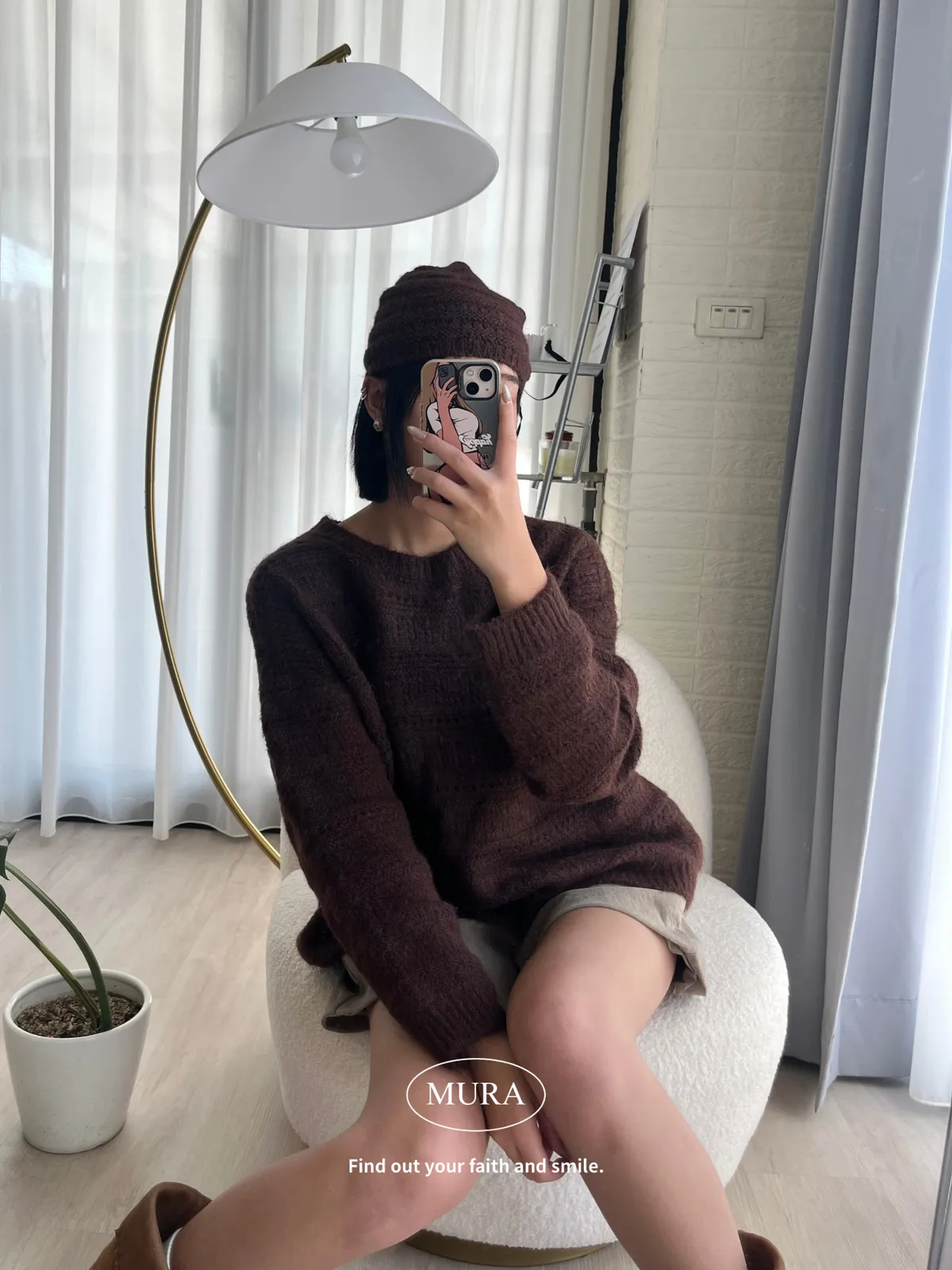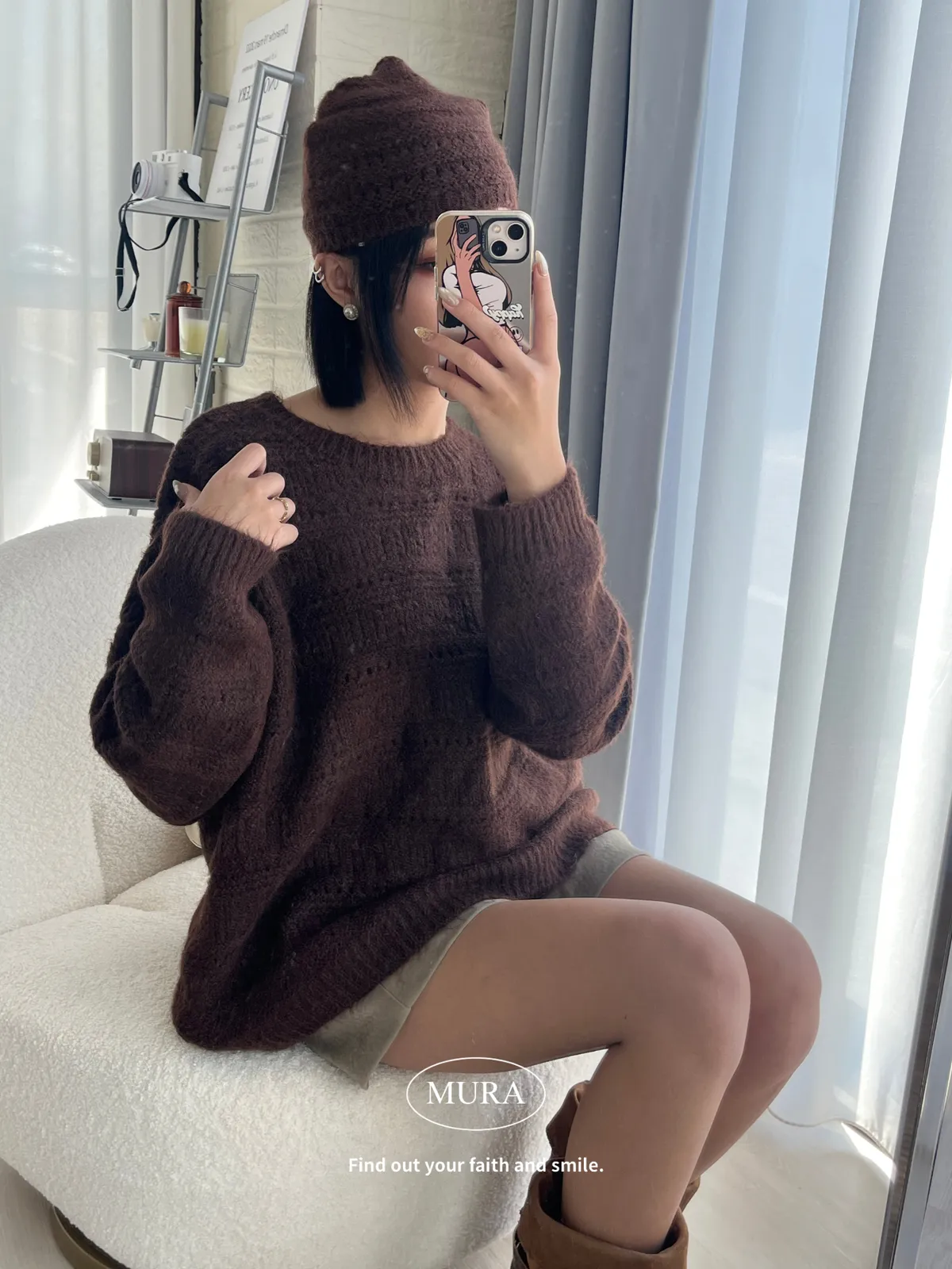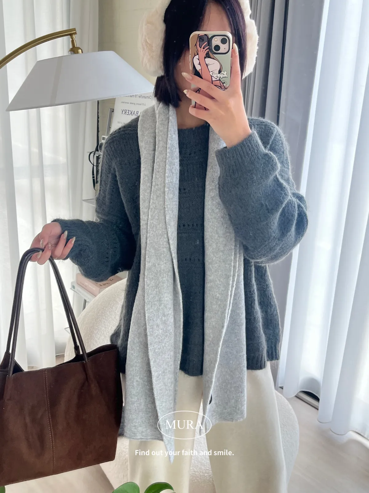 不費力就時髦 虛線條紋毛衣set(附毛帽)4colors