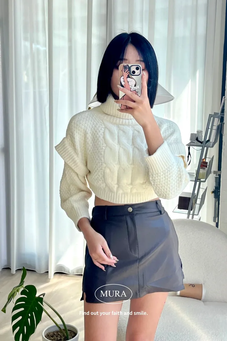 完美比例 軟綿綿高領短版麻花上衣2colors