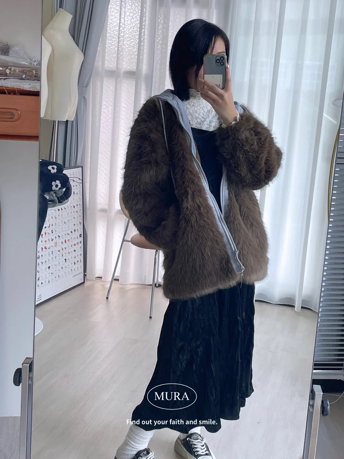 • 毛毛面料/雙拉鍊