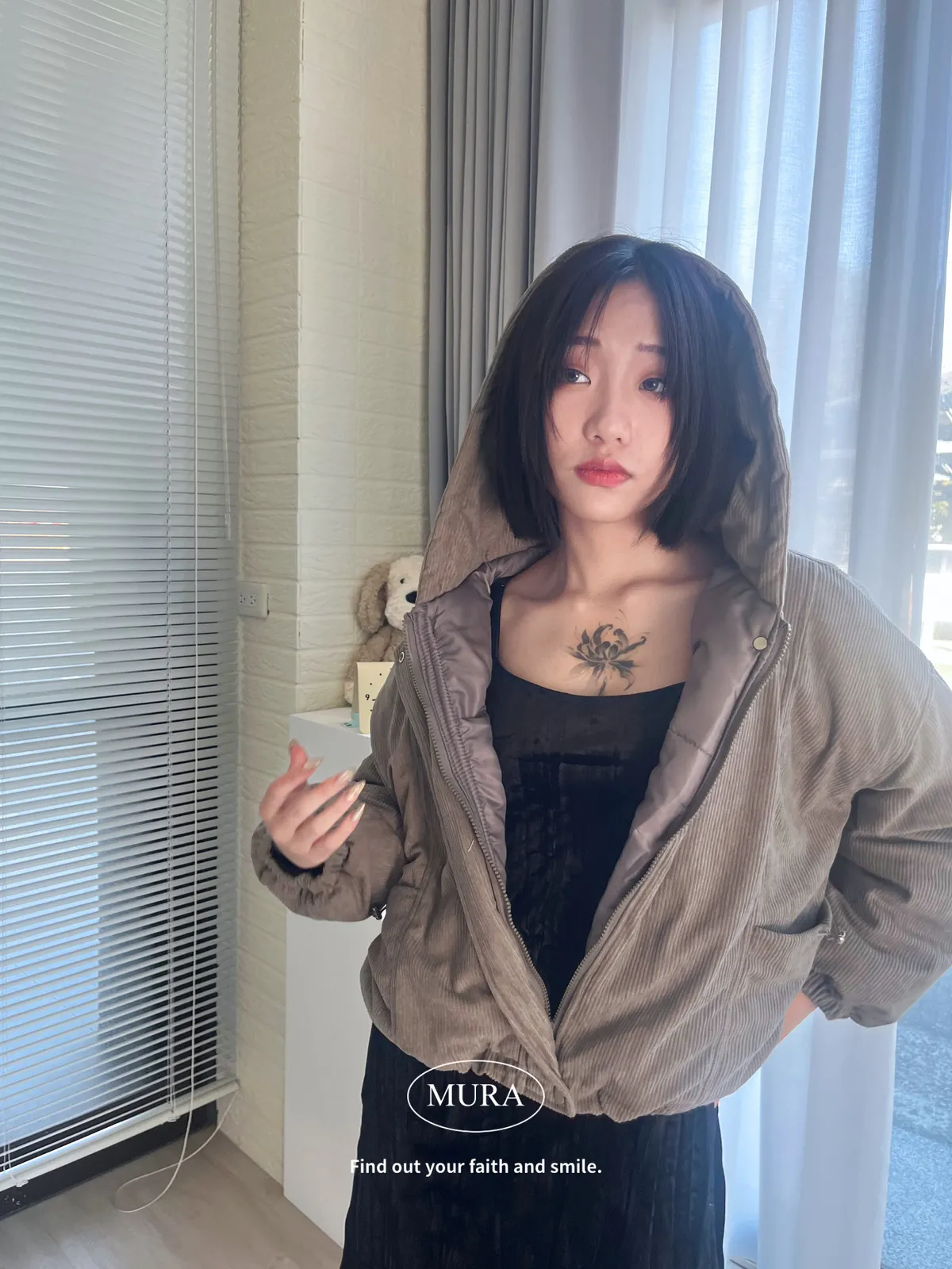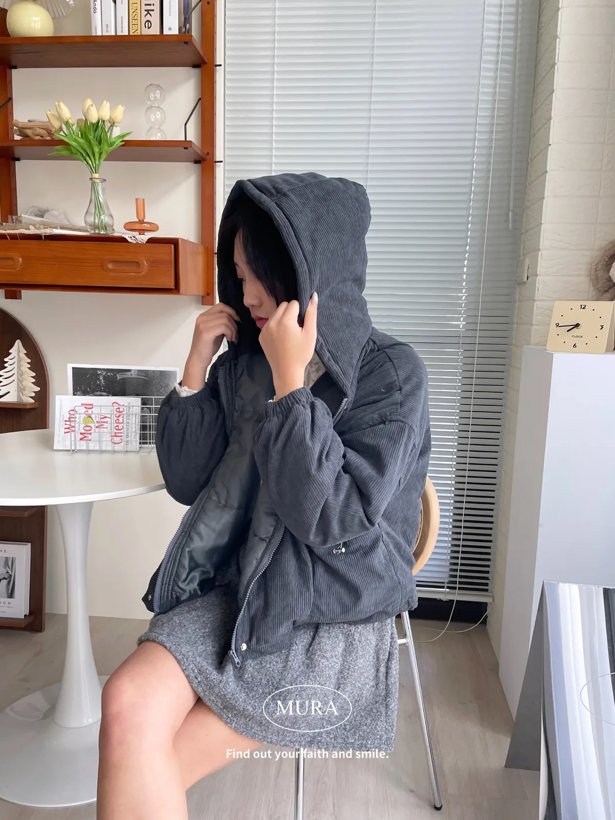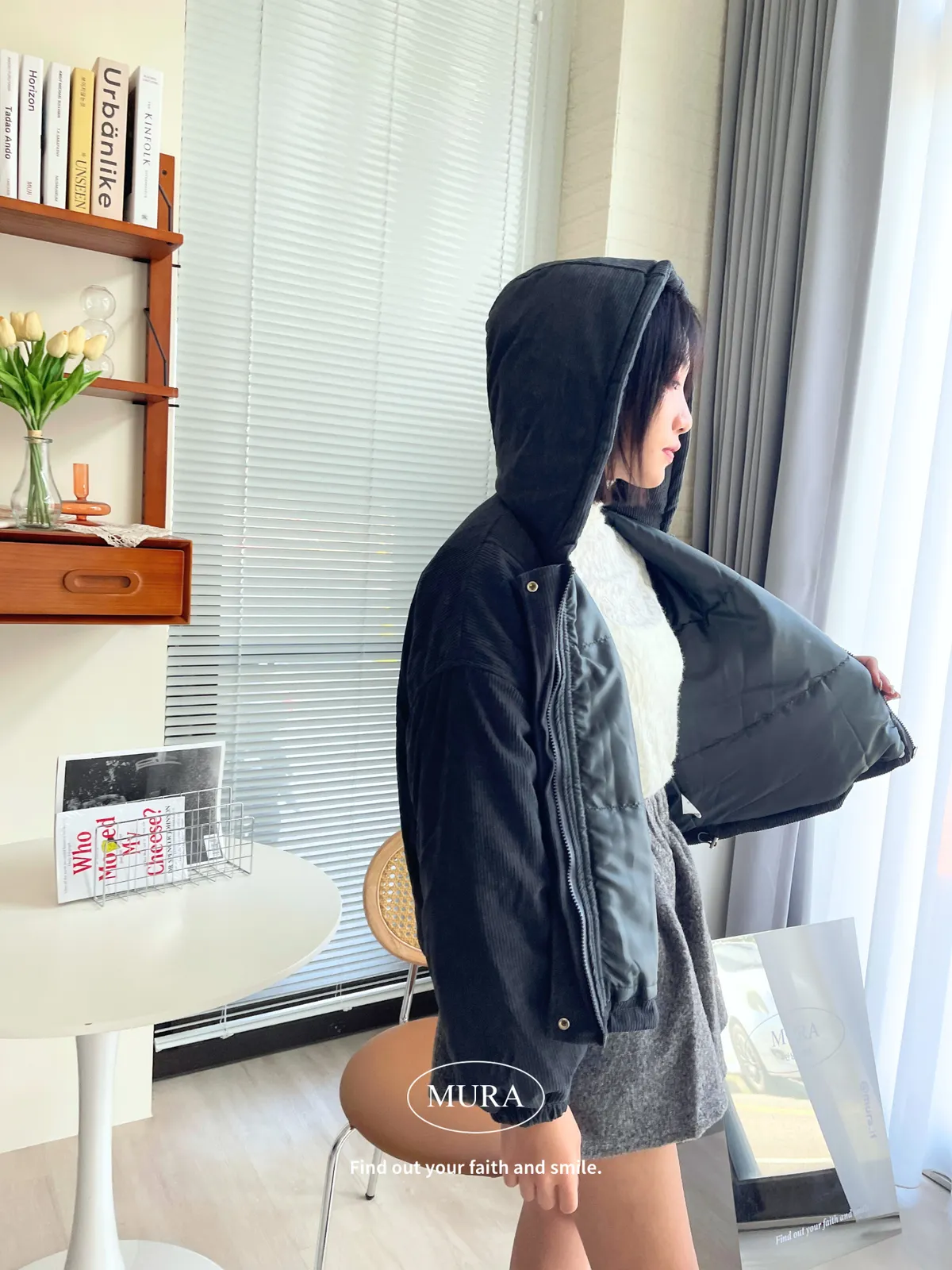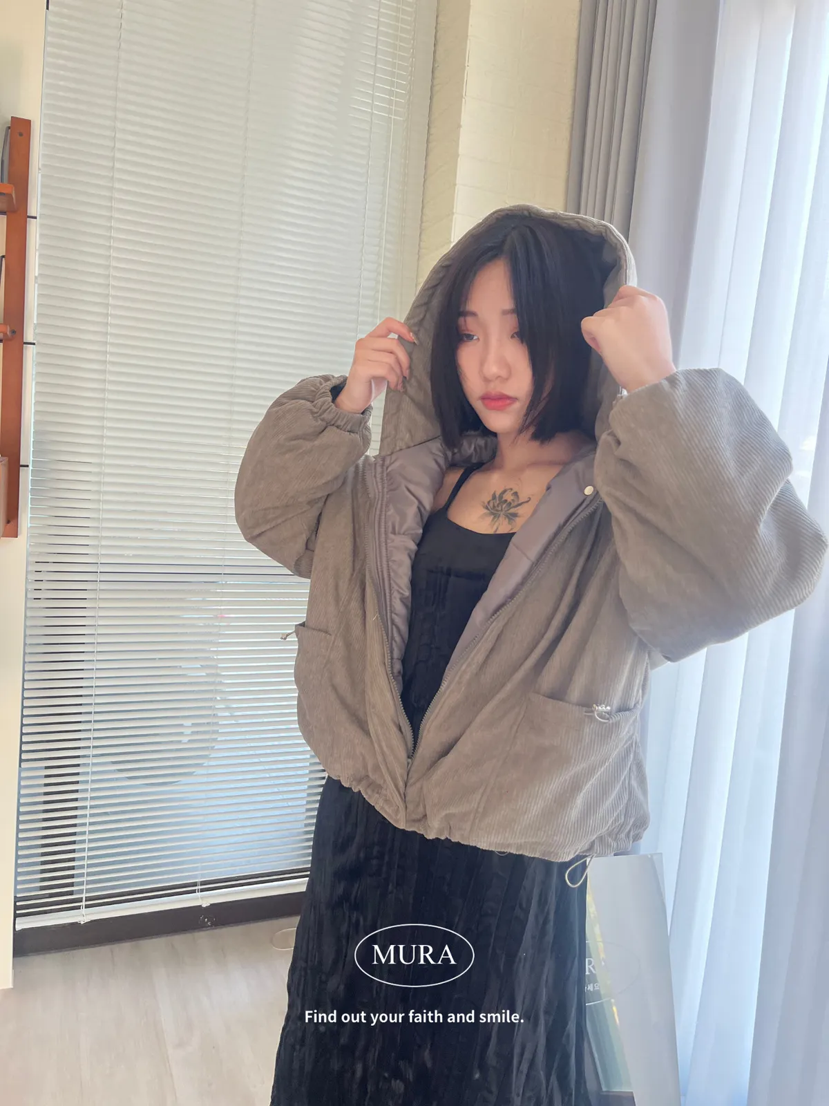 摩卡拿鐵 拉繩口袋連帽外套3colors