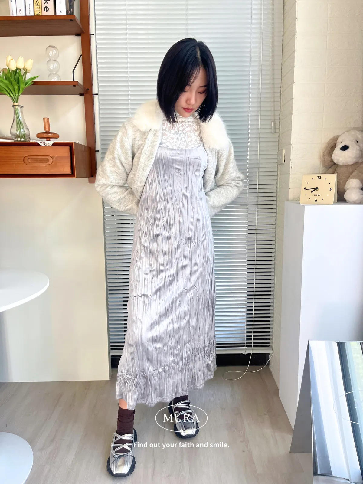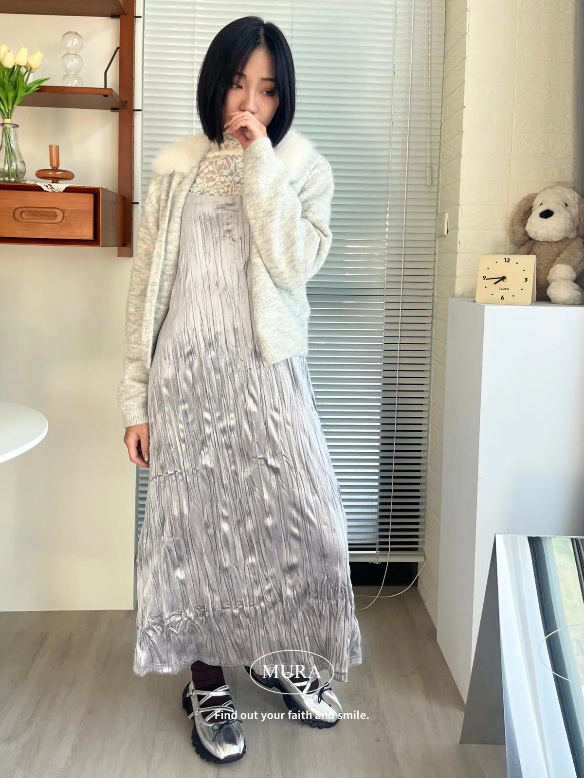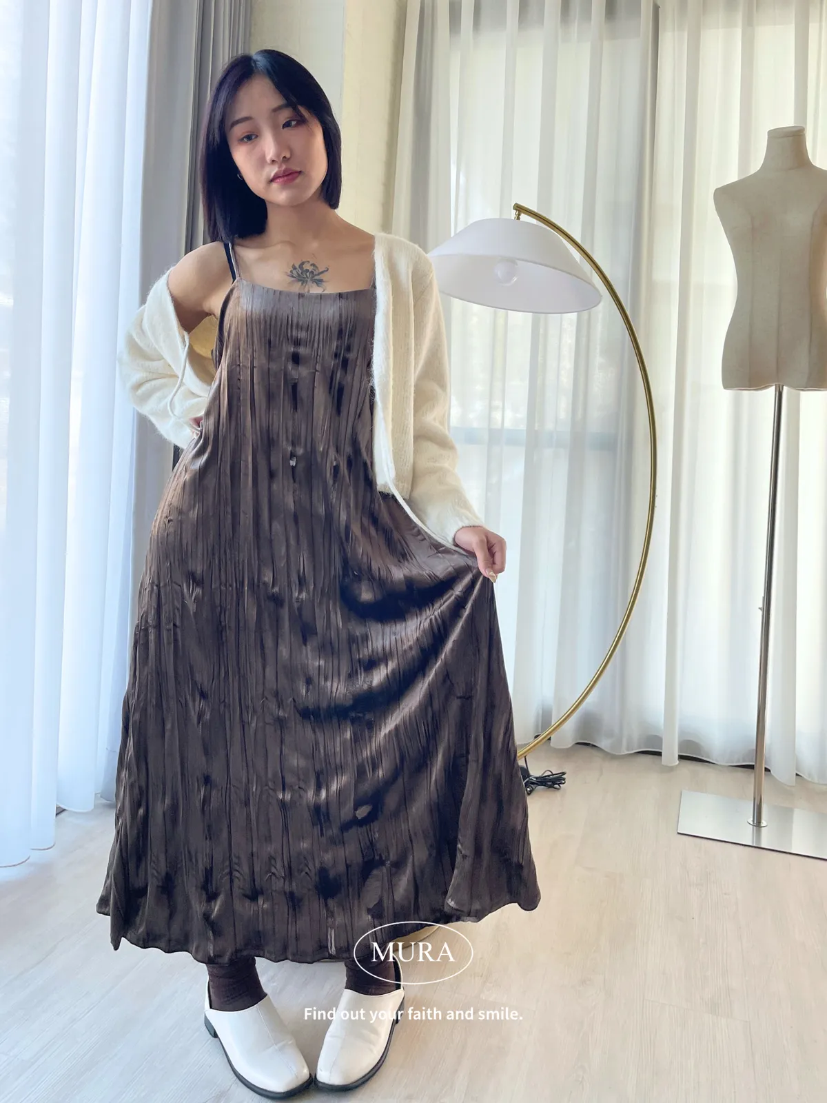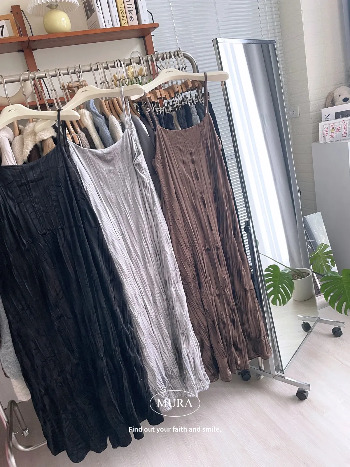 浪漫飄逸 皺皺光澤絨感吊帶長洋3colors